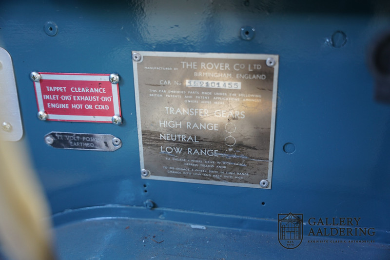 This car is exceptionally documented. All documentation from the time the car spent in Africa has been preserved with the car. From insurance certificate to temporary driver’s license to maintenance invoices. This is a car for the real Land Rover enthusiast. The car also comes with a number of folders containing the corresponding workshop manuals. In short, a beautiful and very attractive Land Rover 109 in a beautiful color combination and impeccable history.