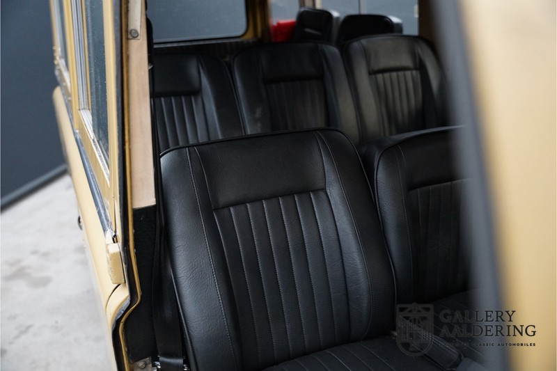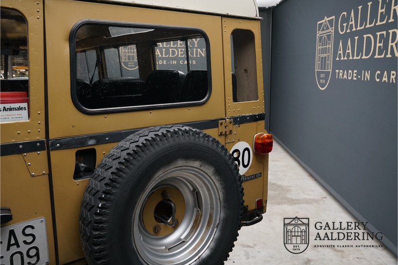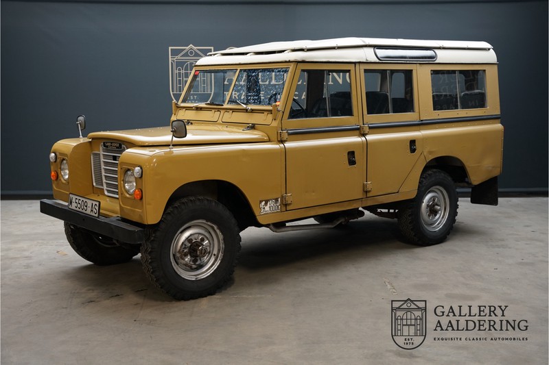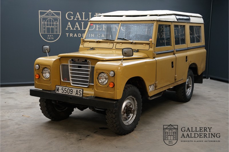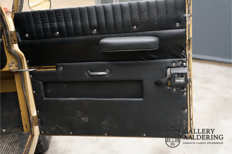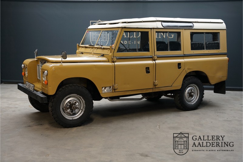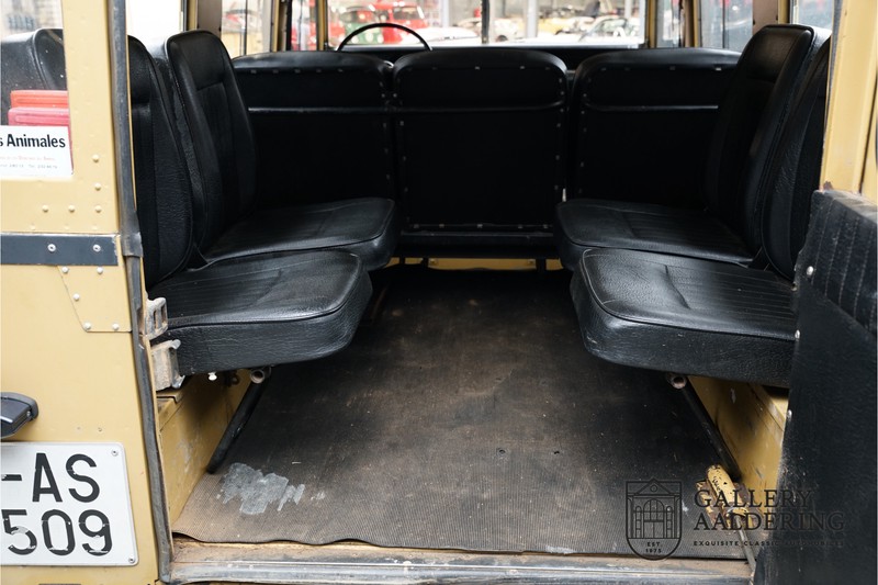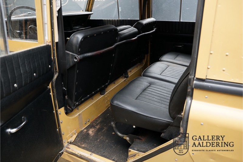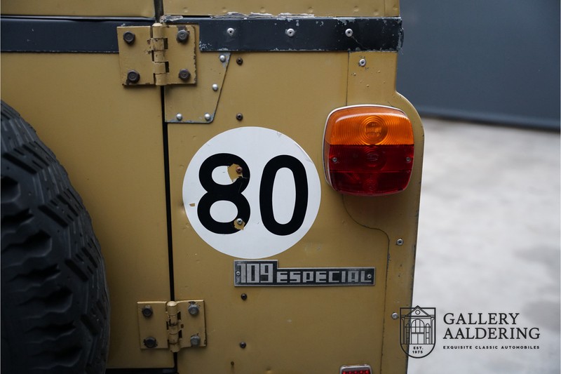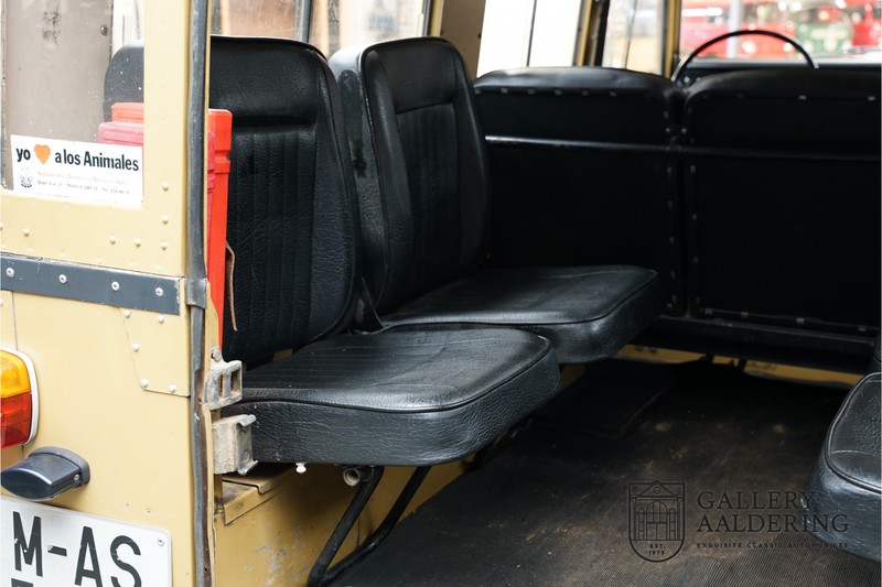 This example has come to us straight from its first, Spanish family. It was a present from a husband to his wife. Besides transporting whilst their children were all still at home, it also offered space to transport the paintings she made. Once the children had fled the coup, she gave the car to her nephew. He occasionally used the car on his estate, keeping the mileage very low. The documentation shows the car belong to a family that cared for its cars. The car we see is the Land Rover Santana 109 Series 3 Especiale, the absolute top of the range offering room for 10 persons. It has a mileage of just 79,398 km.