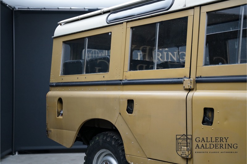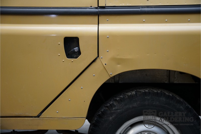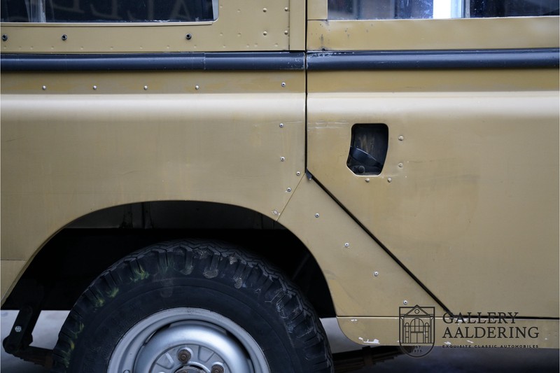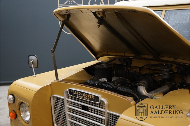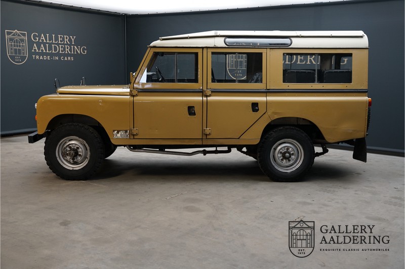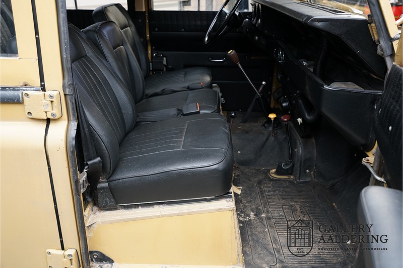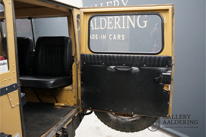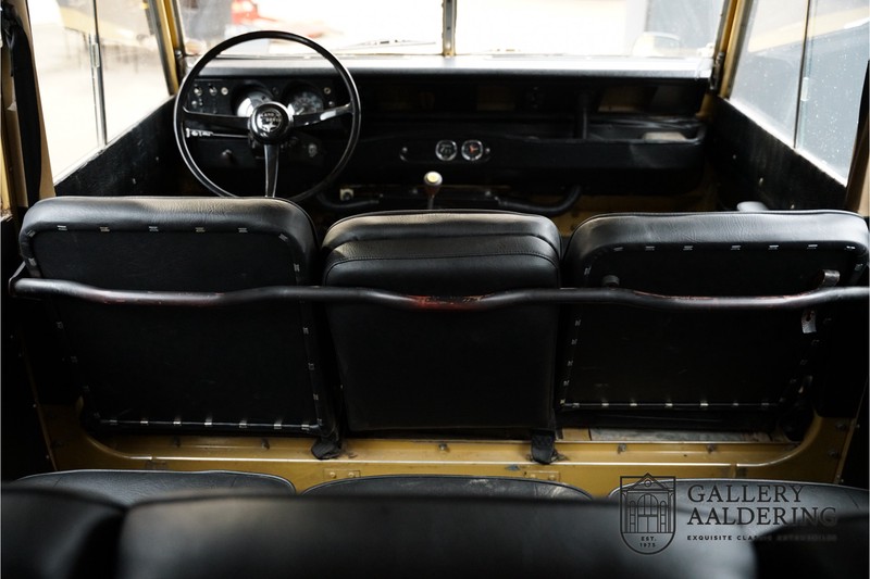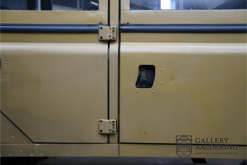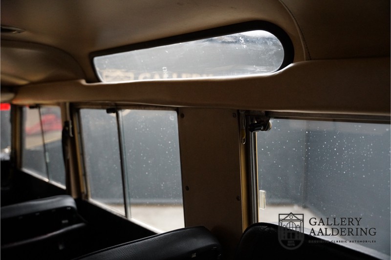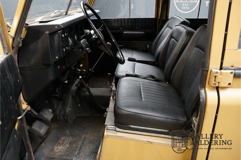 This example has come to us straight from its first, Spanish family. It was a present from a husband to his wife. Besides transporting whilst their children were all still at home, it also offered space to transport the paintings she made. Once the children had fled the coup, she gave the car to her nephew. He occasionally used the car on his estate, keeping the mileage very low. The documentation shows the car belong to a family that cared for its cars. The car we see is the Land Rover Santana 109 Series 3 Especiale, the absolute top of the range offering room for 10 persons. It has a mileage of just 79,398 km.