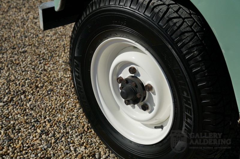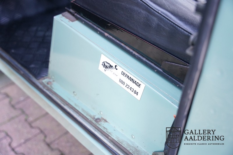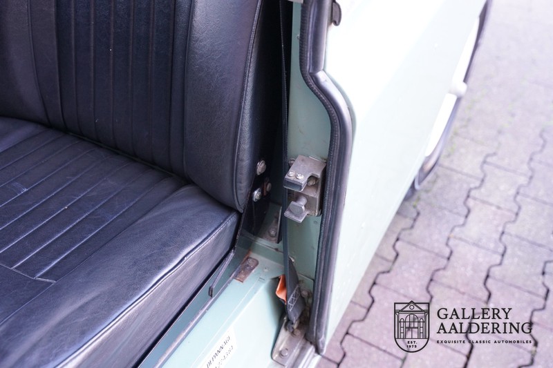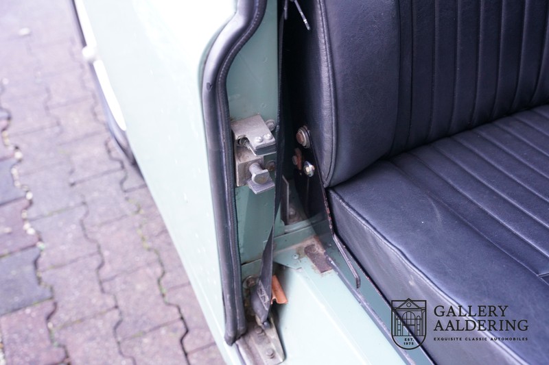 der Rest des Wagens in einem sehr guten und originalen Zustand. Das Auto hat seine originale Stahlfelgen, umgeben von guten Reifen in den richtigen Größen. Die grüne Lackierung in Kombination mit der weißen Oberseite verschafft dem Fahrzeug ein äußerst charmantes Erscheinungsbild. Was für ein schönes Auto!