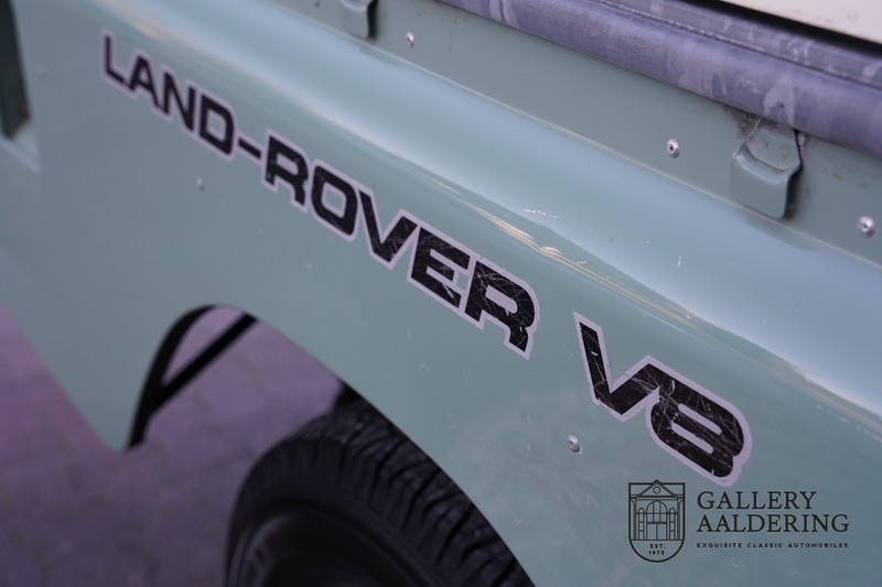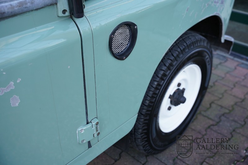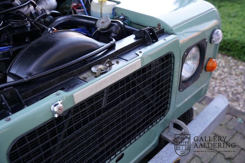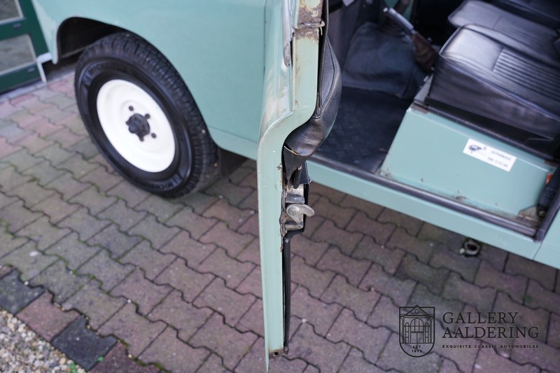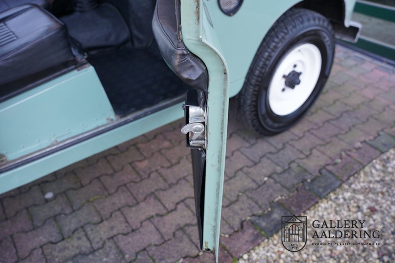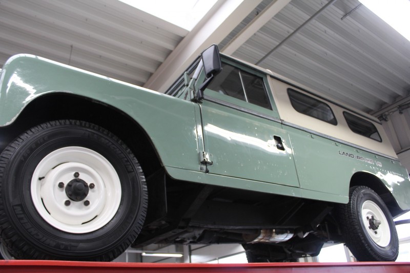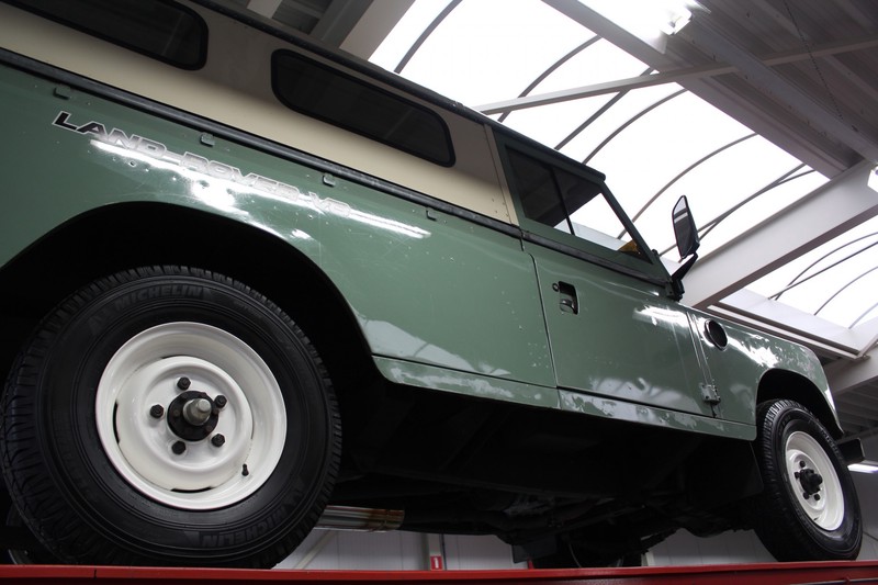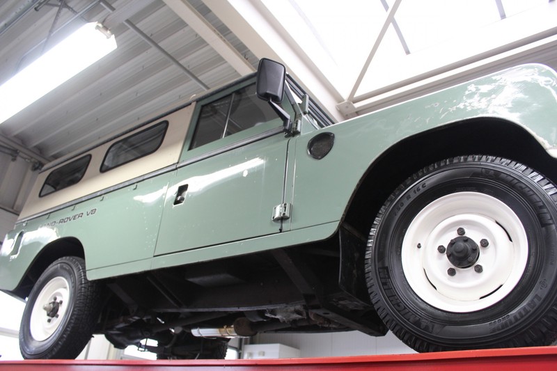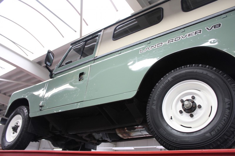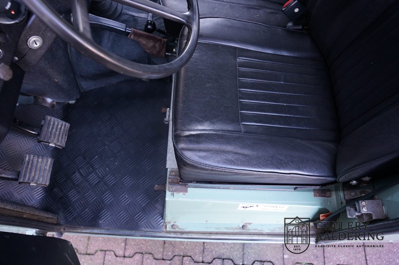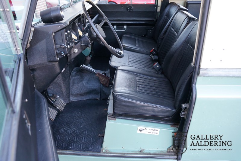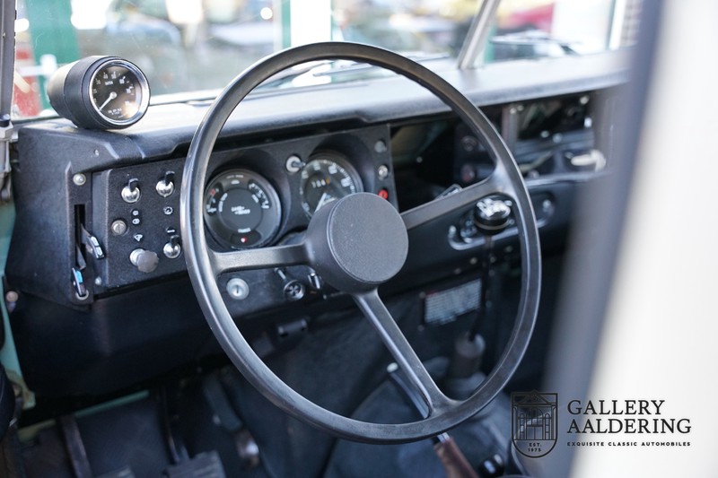 The car has been properly maintained. The engine runs smoothly and provides amazing torque in the lower range. The 3.5 litre V8 puts out a maximum of 91 Ps. There is the aforementioned 4-speed manual gearbox with FWD higher and lower gearing. Brakes and suspension are intended for use in rough terrain and ensure the Land Rover 109 is a very capable off-roader. The whole driving experience is like no other, you have a marvellous vista and more than enough space to take everything you can think of with you.