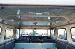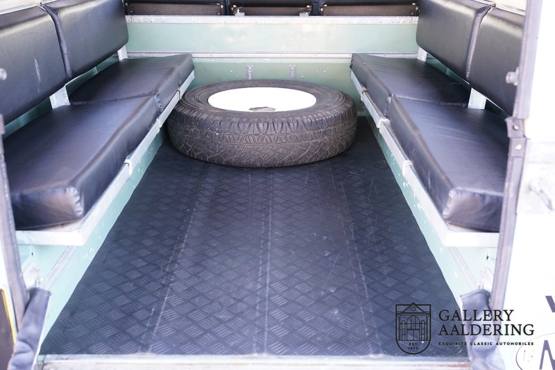The Land Rover’s inside is of course totally functional. The car was made to work and that is how the interior has been set up. That having said it does not imply this one has ever seen hard work. The interior is very neat and well maintained. That goes for the dashboard and controls in particular. Another redeeming feature are the rear benches, allowing lots of passenger space with 3 upfront and 8 in the back! Name one current car that offers space for 11 people?