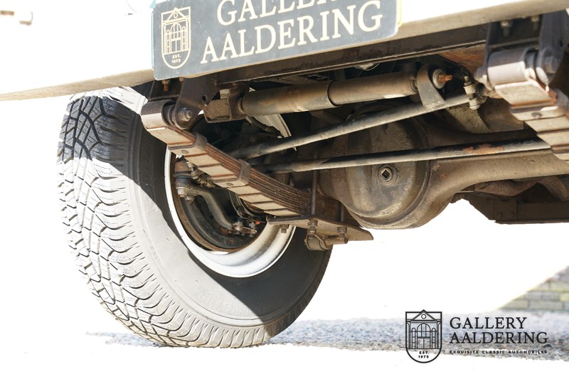 Auch die Technik wurde immer gut gewartet, der Motor läuft dementsprechend wunderbar und zeichnet sich dadurch aus, dass er bei niedrigen Drehzahlen viel Drehmoment liefert. Die Spitzenleistung des 3.5 Liter V8-Motors beträgt 91 PS. Der Motor ist mit einem Viergang-Schaltgetriebe gekoppelt und natürlich verfügt der Land Rover auch über zuschaltbaren Allradantrieb. Die Bremsen und das Fahrwerk sind alle für unwegsames Gelände ausgelegt und machen den Land Rover 109 zu einem sehr leistungsfähigen Geländewagen. Das gesamte Fahrerlebnis ist unvergleichbar, Sie haben eine fantastische Sicht um sich herum und Sie haben mehr als genug Platz um Ihre gesamte Ausrüstung mitzunehmen.