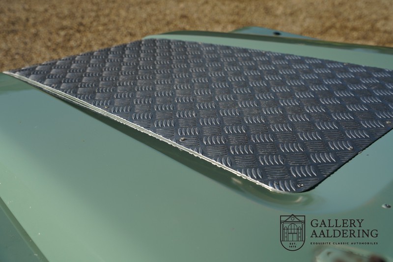De carrosserie heeft wat sporen van gebruik die passen bij de leeftijd en kilometerstand van de auto. Het plaatwerk is overal prachtig origineel en dun en sluit overal mooi aan. De lak is volledig origineel en heeft vanzelfsprekend sporen van gebruik die passen bij de leeftijd van de auto. De onderzijde van de auto is bikkelhard en verkeert net als de rest van de auto in zeer goede en originele conditie. De auto staat op de standaard stalen wielen met daaromheen goede banden in de correcte maten. De groene lak in combinatie met de witte bovenkant maken dat het hier een uiterst charmante verschijning betreft. Wat een schitterende auto om te zien.