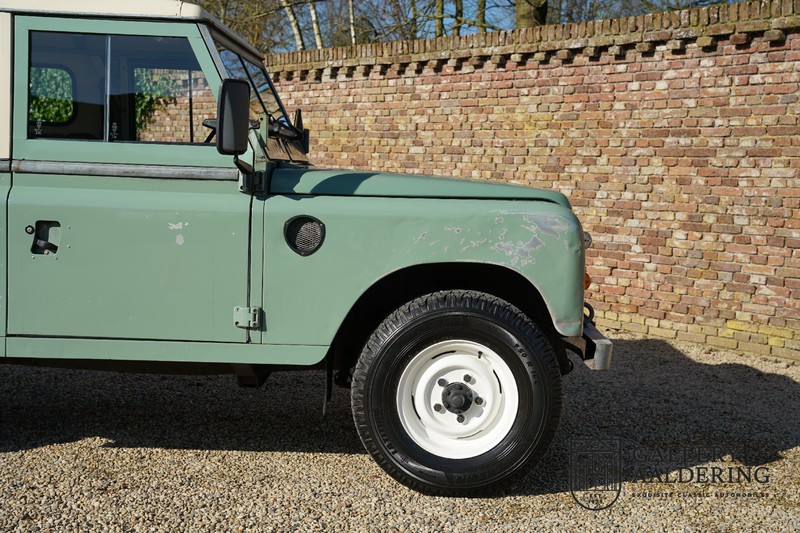 Het betreft hier een zeer fraaie en uiterst originele Land Rover 109 Series 3 uit 1983 met de zeer geliefde V8-benzine motor en handgeschakelde transmissie. Deze auto werd nieuw geleverd in Zwitserland en ziet er nog altijd prachtig uit. Deze auto is altijd als tweede of mogelijk zelfs derde auto gebruikt. De Land Rover heeft namelijk nog maar 28.106 kilometer gelopen. Dat het hier een auto betreft met zeer lage kilometerstand is vanaf de eerste aanblik al duidelijk. Het is een prachtig originele auto die zowel van binnen als buiten in zeer goede staat verkeert.