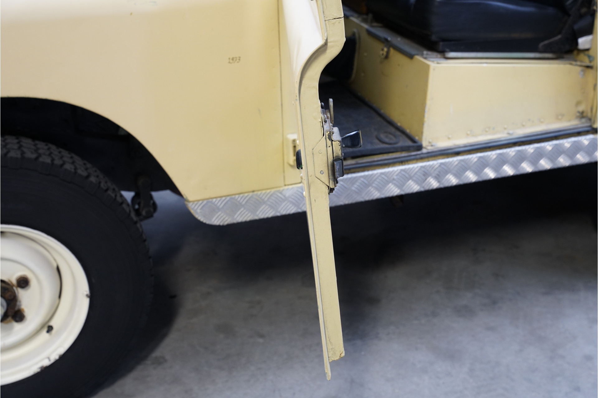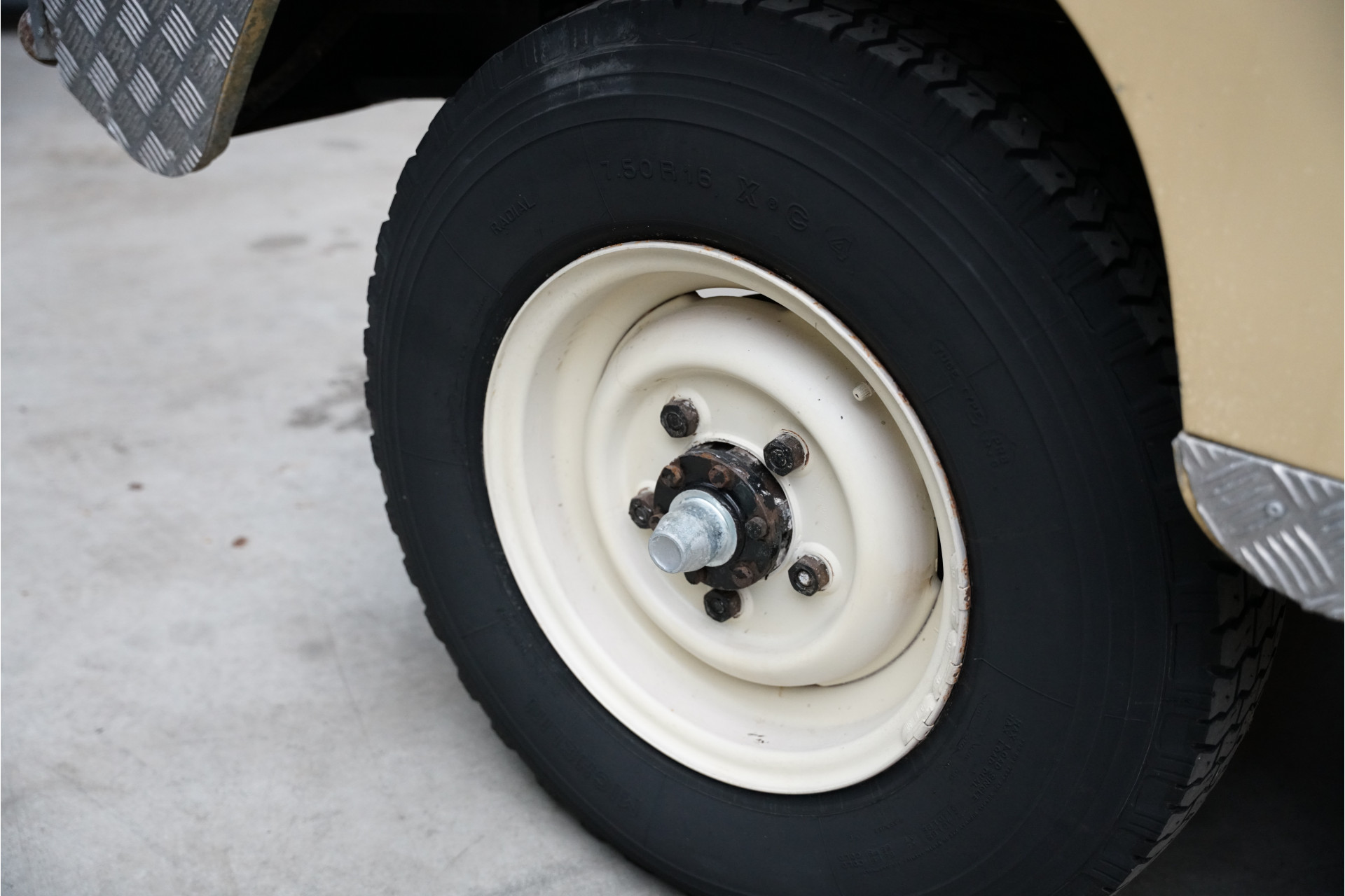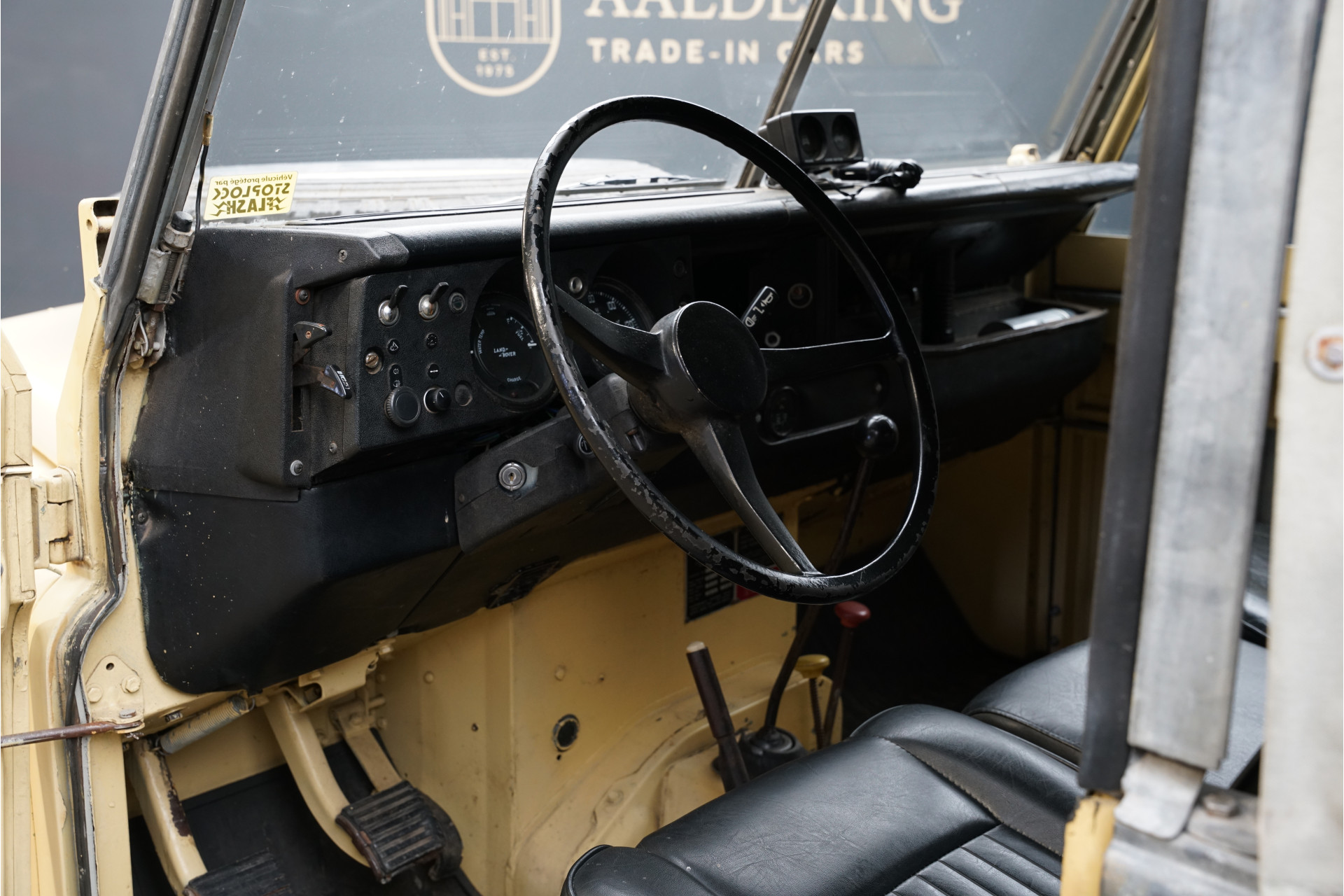 The chassis and bodywork are in a solid condition, reflecting exactly what one expects from a classic Land Rover: robustness, reliability, and an honest appearance. It exudes the right balance of patina and durability, making it highly suitable for actual use without compromising its authenticity.