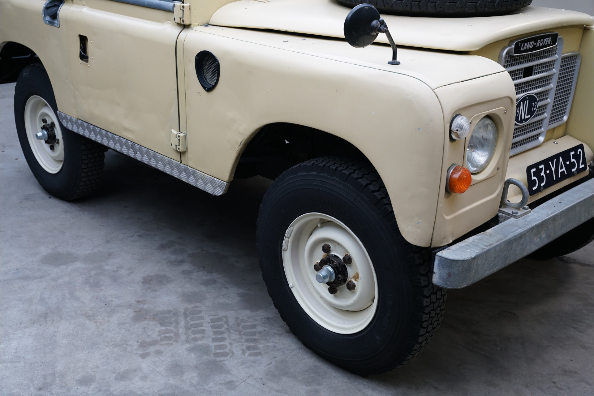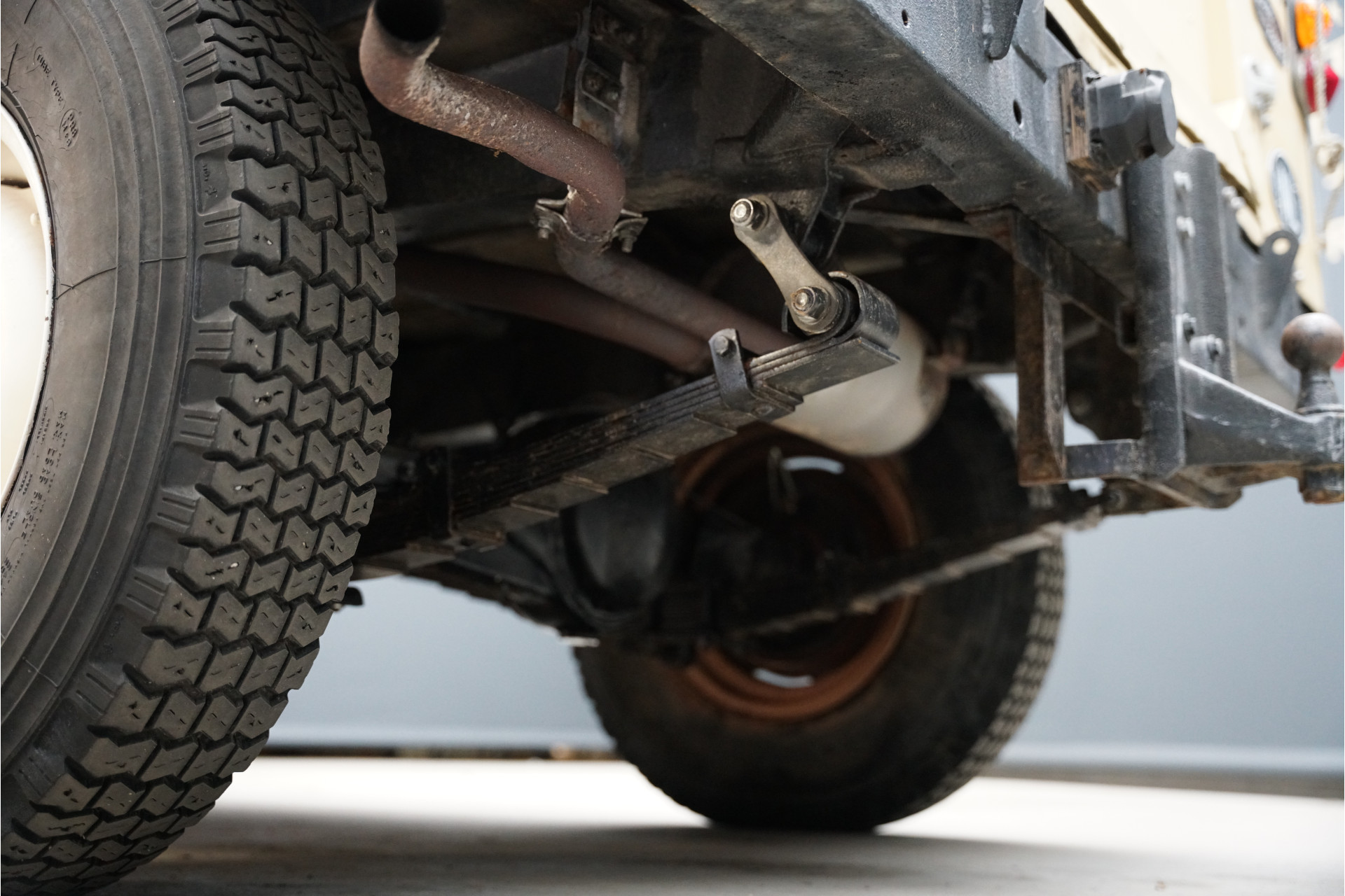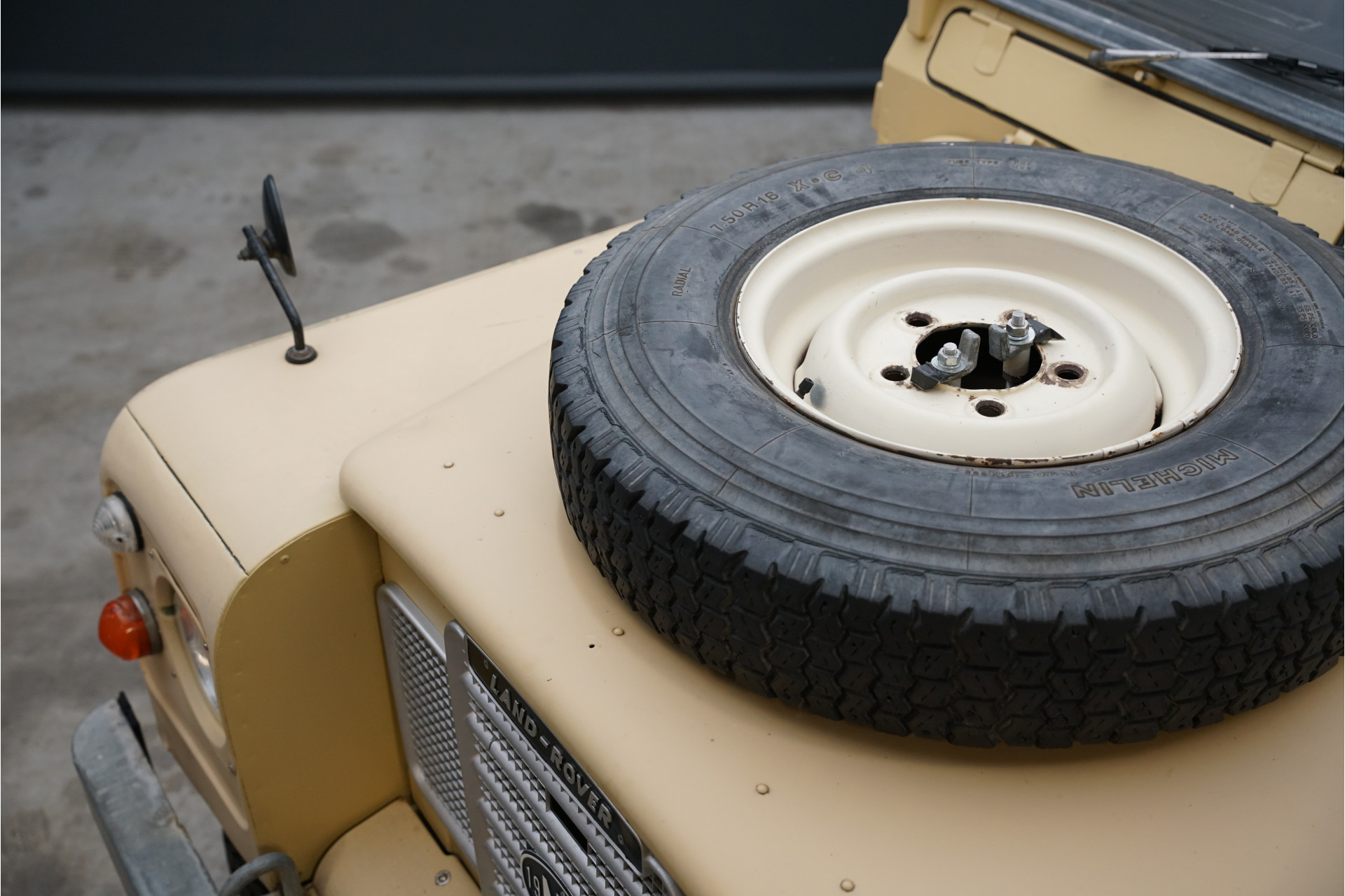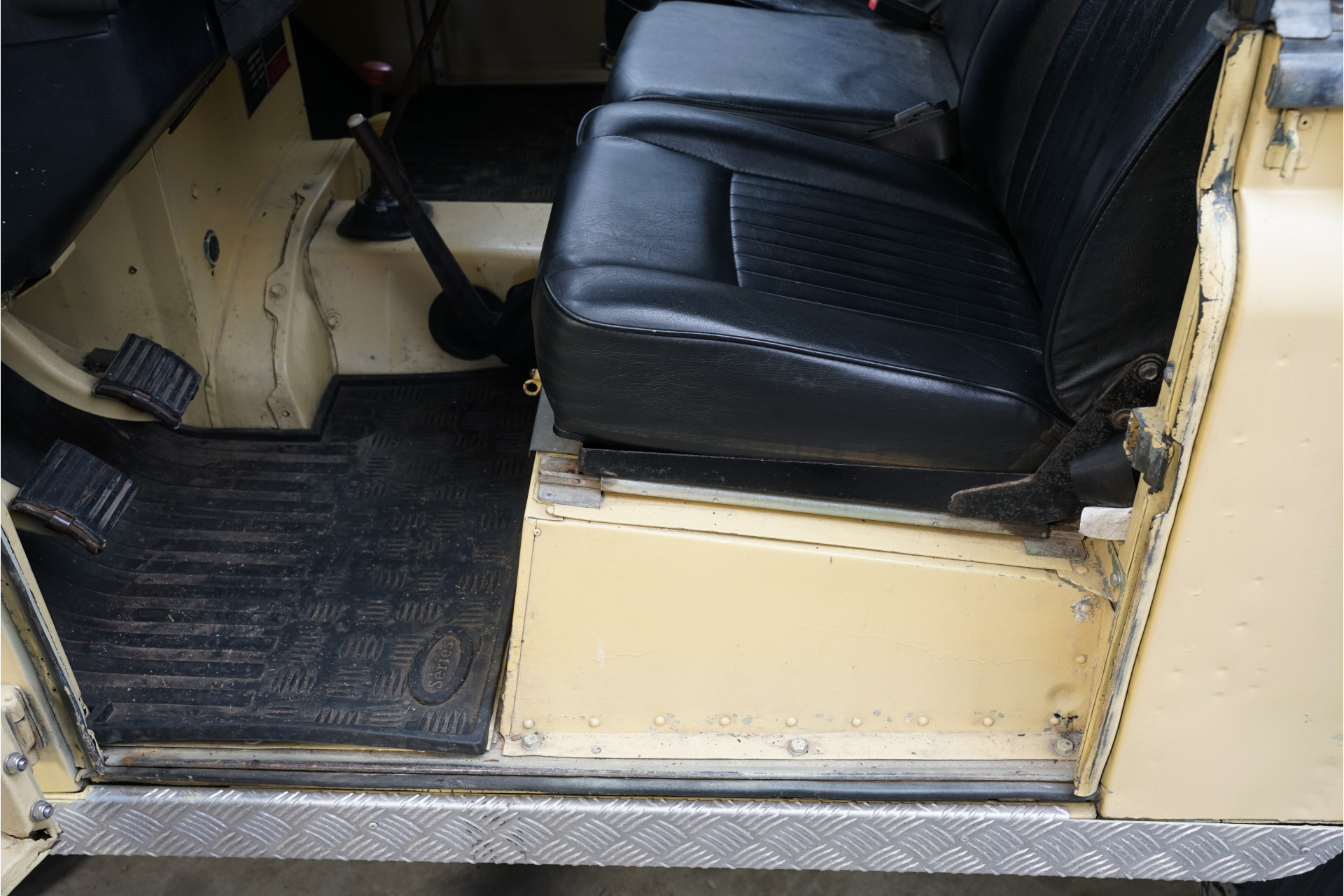 The chassis and bodywork are in a solid condition, reflecting exactly what one expects from a classic Land Rover: robustness, reliability, and an honest appearance. It exudes the right balance of patina and durability, making it highly suitable for actual use without compromising its authenticity.
