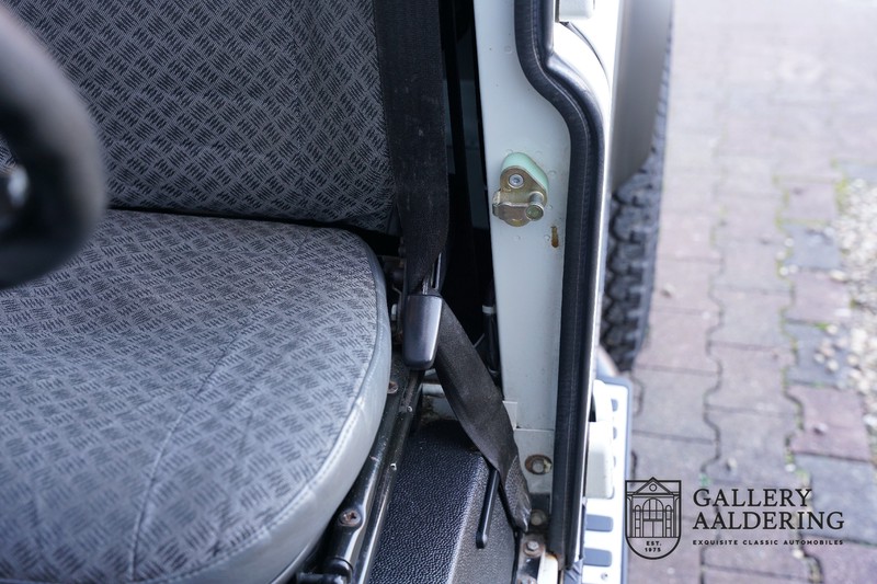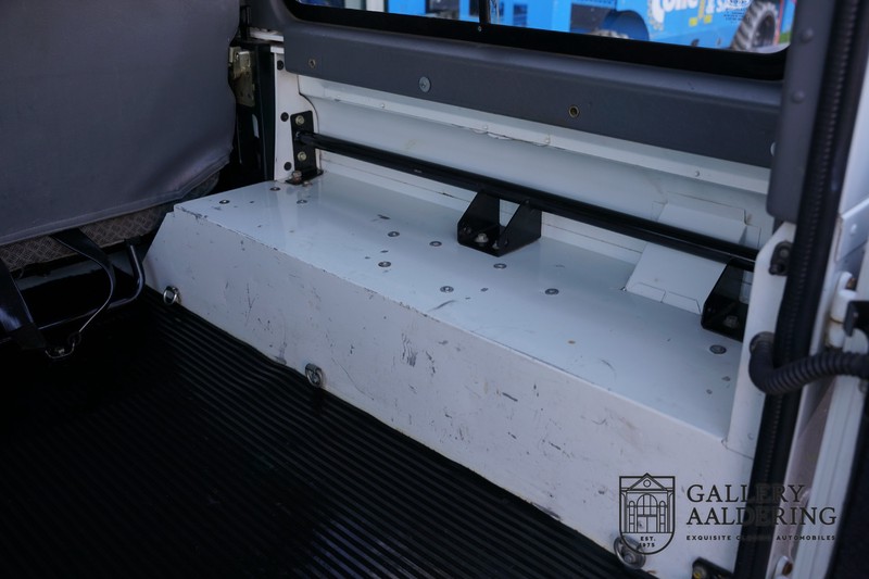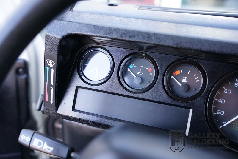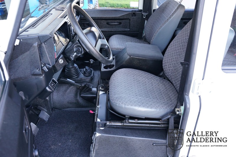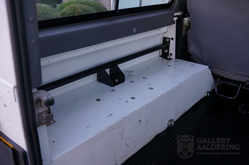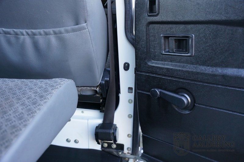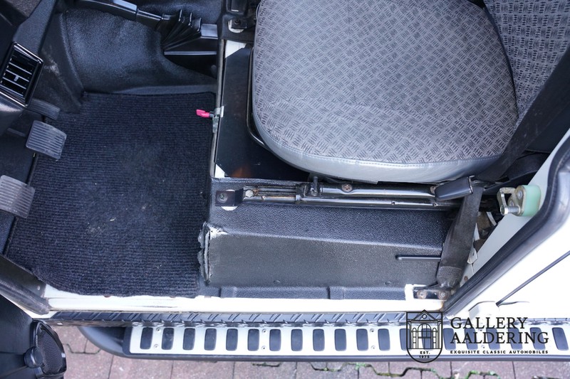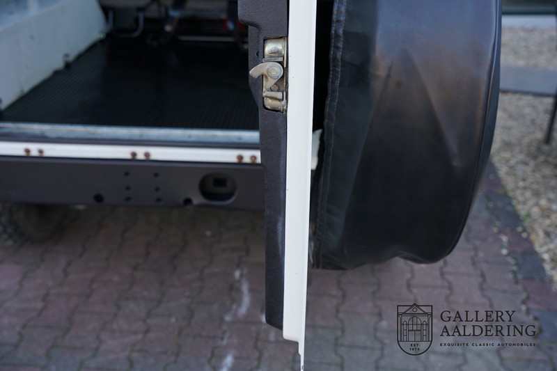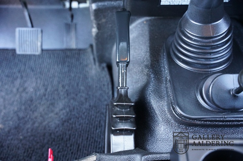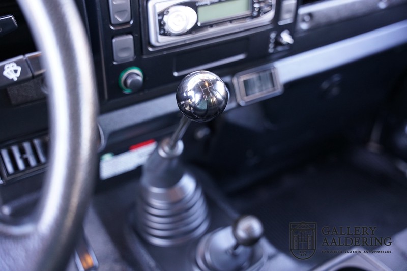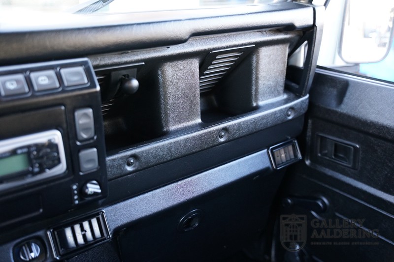 The interior is also neatly maintained and cared for. The Defender’s dashboard and instruments are all original and function as they should. The rest of the dashboard is also completely original and looks neatly cared for. The buttons are all very large so that you can quickly switch on or off the required function even while driving off the beaten track. The car is equipped with a gear lever for the transmission and a lever for engaging the four-wheel drive. The steering wheel and headliner are also in well-maintained condition. The upholstery on the seats is made of solid material, which can take a beating, as you would expect from a car of this kind. The overall condition of the interior endorses the low mileage and can last for years to come.