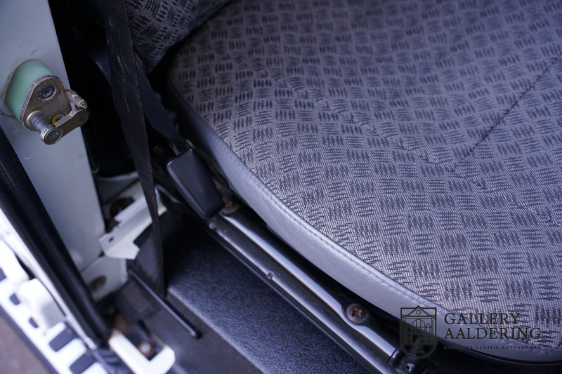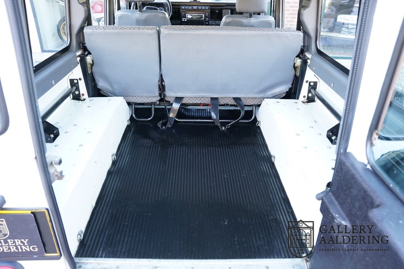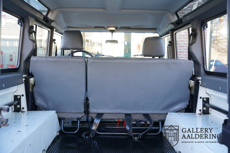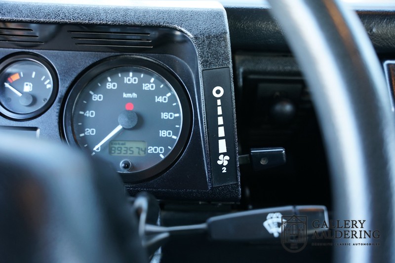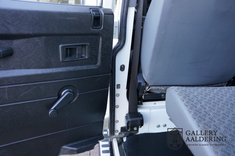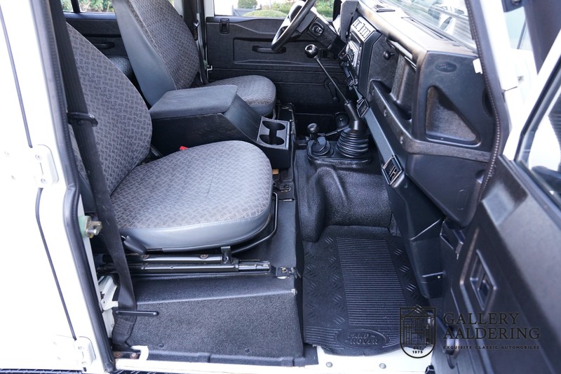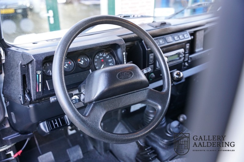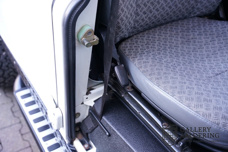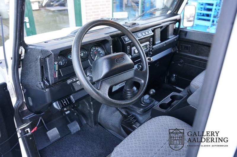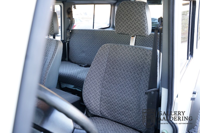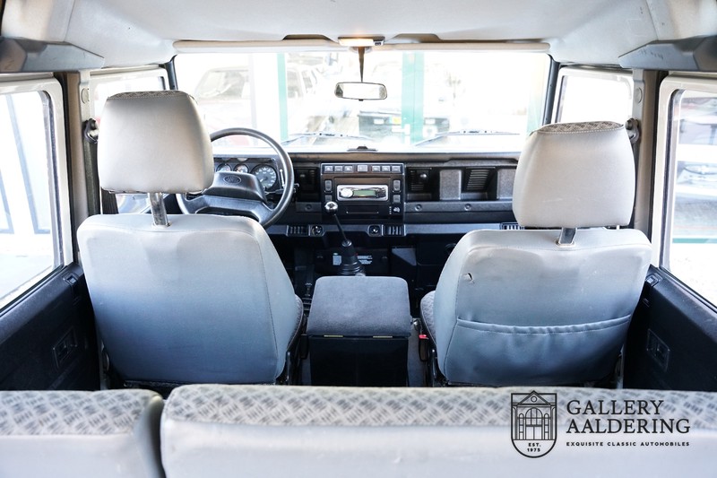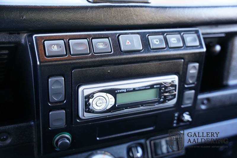 The interior is also neatly maintained and cared for. The Defender’s dashboard and instruments are all original and function as they should. The rest of the dashboard is also completely original and looks neatly cared for. The buttons are all very large so that you can quickly switch on or off the required function even while driving off the beaten track. The car is equipped with a gear lever for the transmission and a lever for engaging the four-wheel drive. The steering wheel and headliner are also in well-maintained condition. The upholstery on the seats is made of solid material, which can take a beating, as you would expect from a car of this kind. The overall condition of the interior endorses the low mileage and can last for years to come.