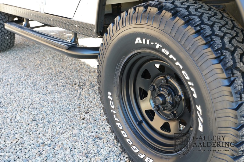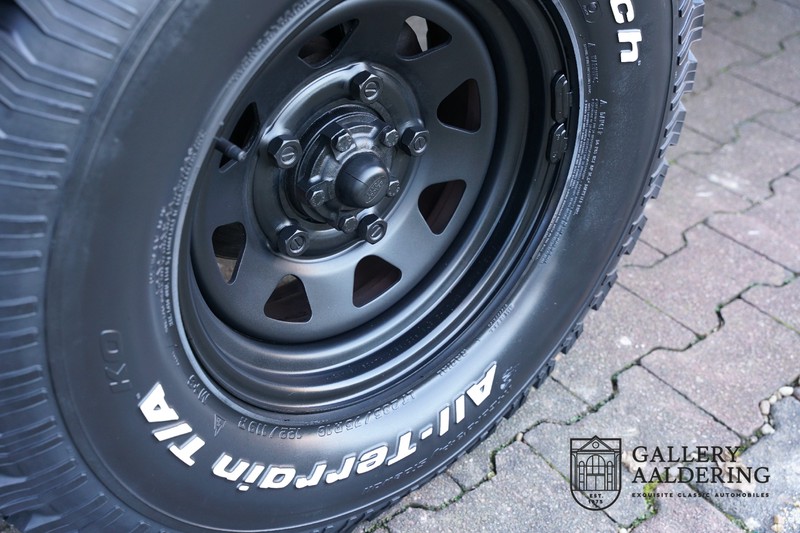 Despite the fact that this is a car with serious off-road qualities, this car has not had a hard life and has mainly been driven on the street. Both the chassis and the body are in very good condition. The chassis is completely free of rust and is in good condition. the bodywork also looks neat. The sheet metal is nice and thin and the fits are correct. The body and paint obviously have some light signs of use that match the age and mileage of the car, but nothing noticeable. The accessories such as the extra lamps and snorkel are also in very good condition.