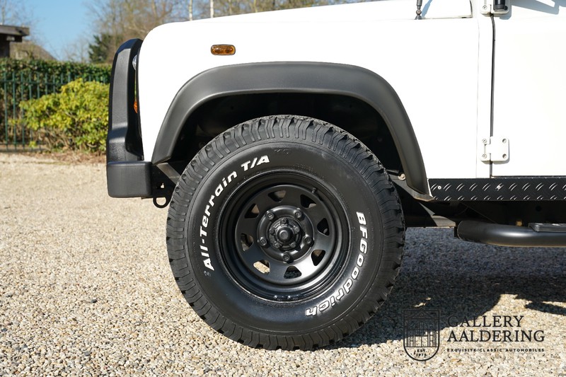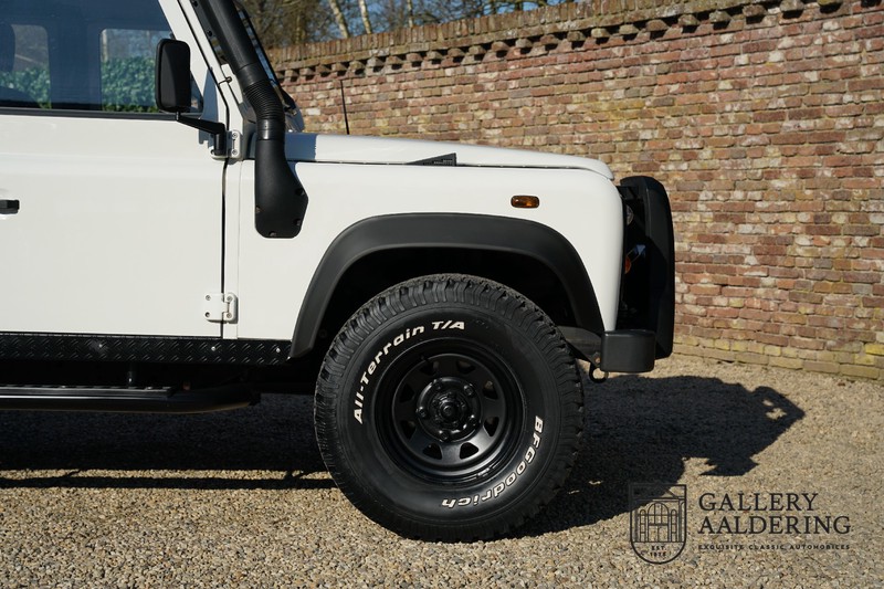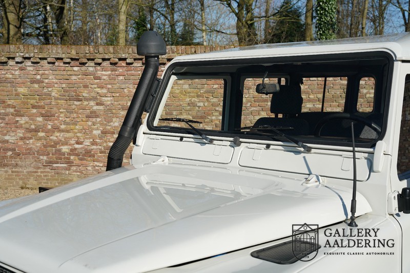 This is a very attractive 2006 Defender with the much loved TD5 engine. The car was delivered new in Spain and therefore completely free of rust. The car was ordered new there by a lady with excellent taste. She further decorated the car with, among other things, larger wheels with good off-road tires, a snorkel and extra lighting. It is a car that is immediately pleasant on the retina. This example has less than 90,000 kilometres on the clock and will undoubtedly guarantee many years of on- and off-road driving pleasure.