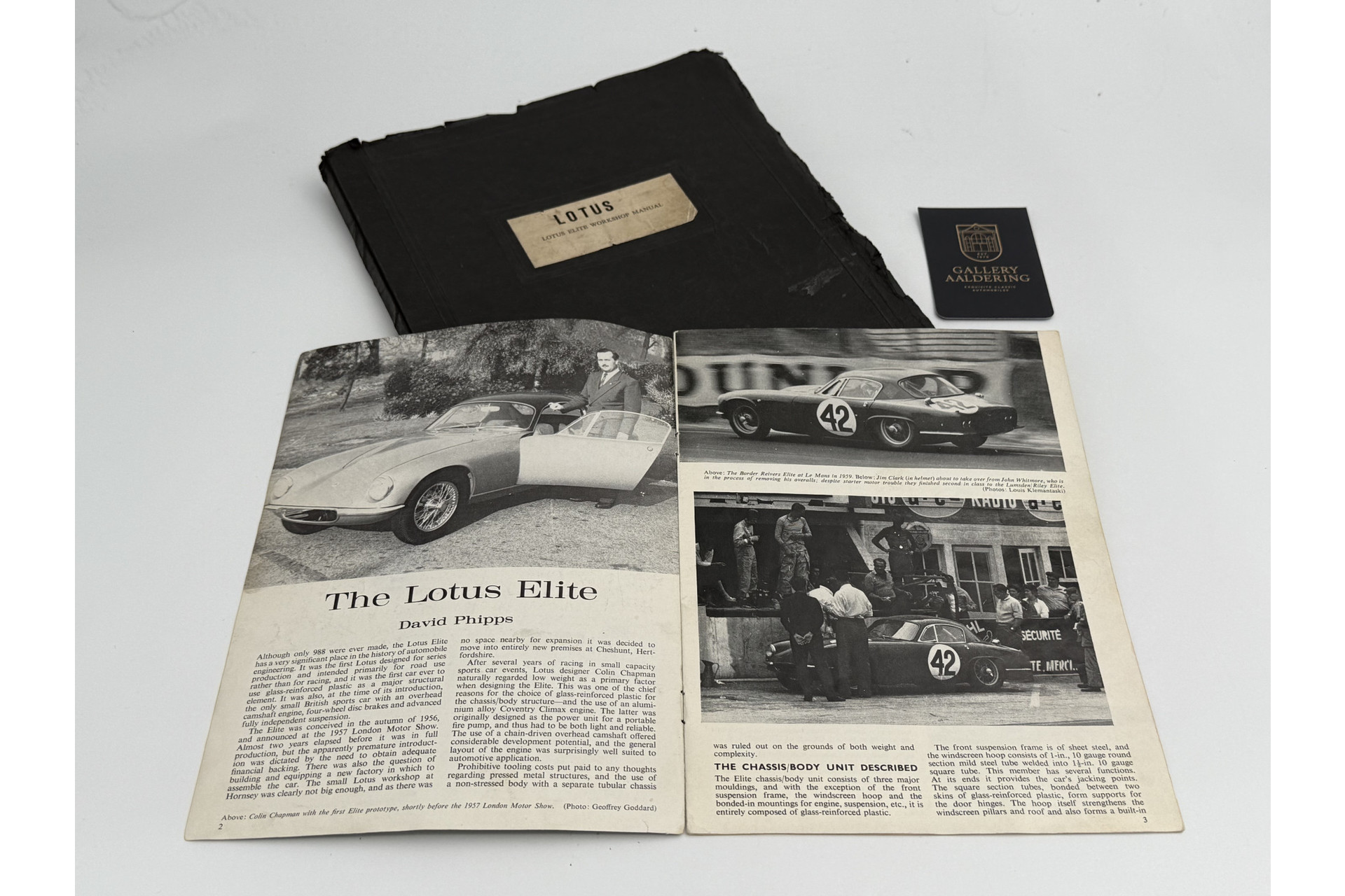 Soms kom je een auto tegen die je niet alleen bekijkt, maar die je letterlijk stil laat vallen. Een auto die je doet fluisteren: “Dit is bijzonder.” De Lotus Elite Super 100 uit 1961 is zo’n auto. En niet zomaar één: dit is het allereerste gebouwde exemplaar, officieel bevestigd in het standaardwerk van Dennis Ortenburger over de Elite. Voor de Lotus-kenner is dit alsof je het originele manuscript van Rembrandts schetsboek in handen hebt.