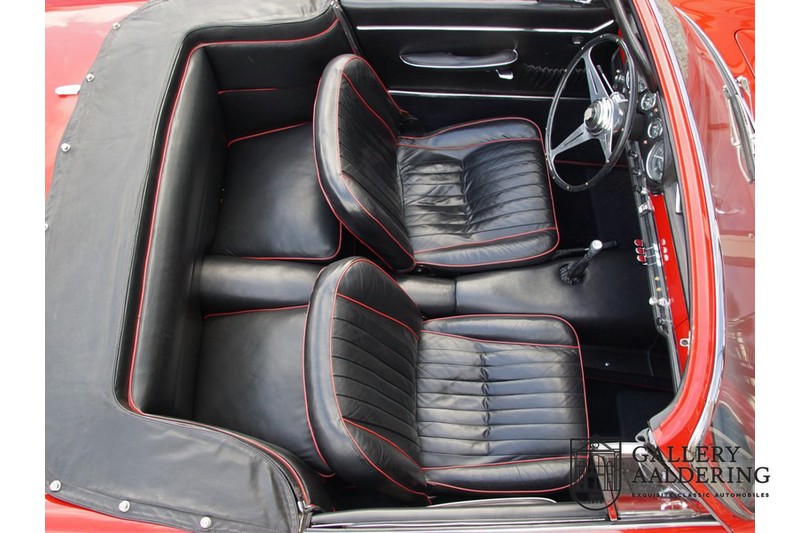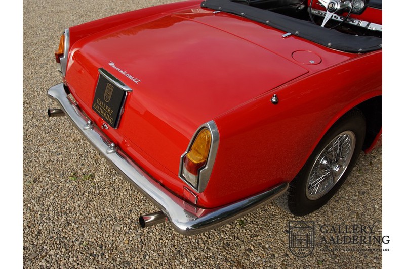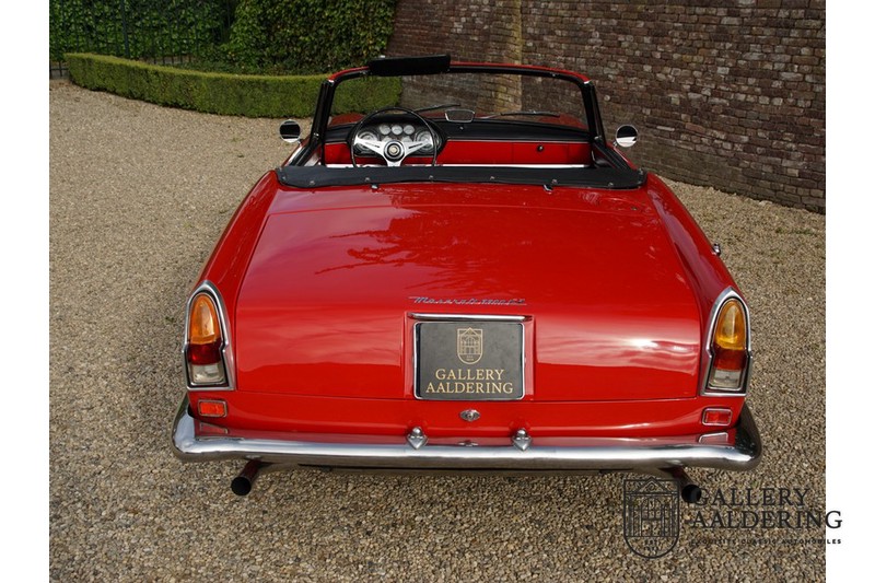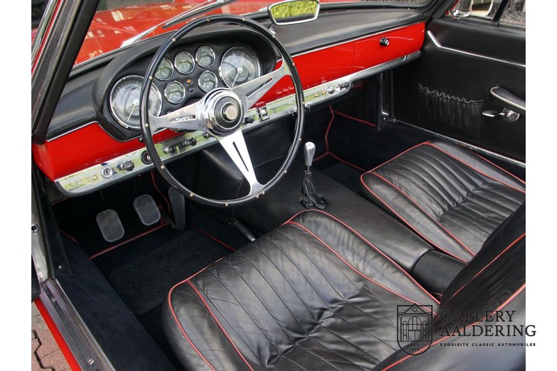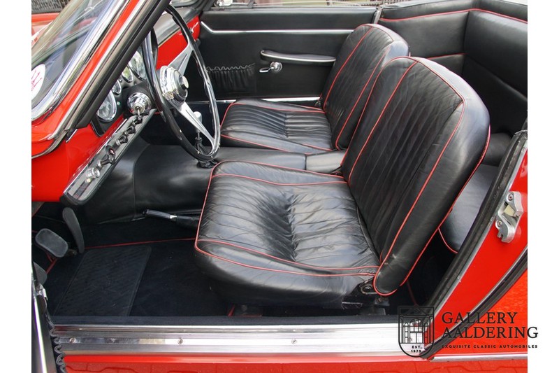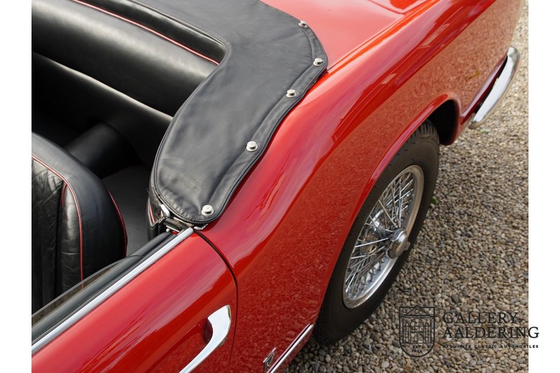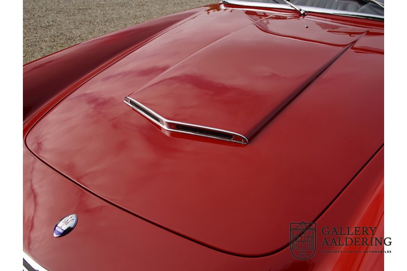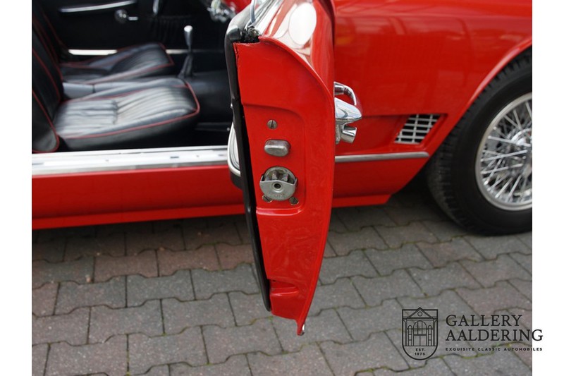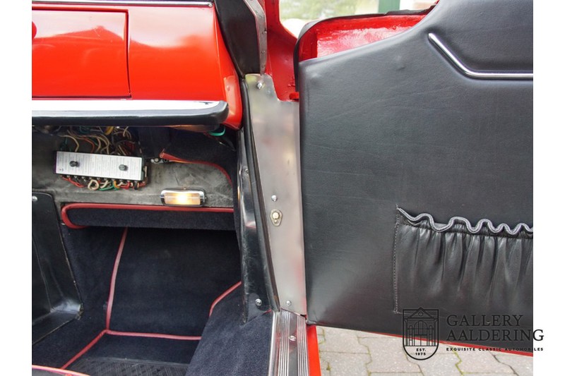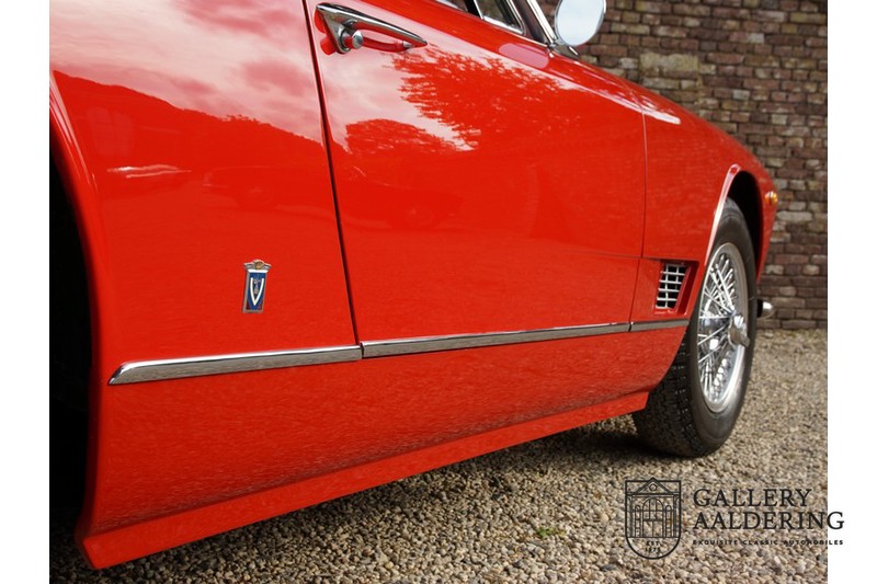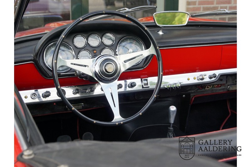 This wonderful Maserati 3500GT Vignale Spyder left the factory for the States on the 15th September 1960. This is one of just 242 Vignales ever made. It was only registered for the 1st time in 1976! In 1984 it was sold to a collector in Fort Lauderdale, Florida. Two years later the car made its way to a Dutch Maserati collector, who completely had the car completely restored. A superb result was achieved after 2years, much effort and expense. The beautiful bodywork is straight and has perfect fitting body panels. It has a delightful 5-speed ZF gearbox. After 20 years the car landed in the hands of its last owner. Early in 2018, a Dutch specialist optimized the cars’ performance with a full mechanical overhaul. Besides a full engine build, the whole suspension, brakes, water pump clutch were replaced. Since then the car has travelled some 30,000 km. The whole process has been documented with photos and invoices. It has factory fitted front disc brakes and 16” Borrani wire wheels. The Vignale Spyder has retained its original, matching numbers, engine. It also has a copy of the build-sheet confirming all relevant numbers. This rare Maserati is in top condition!