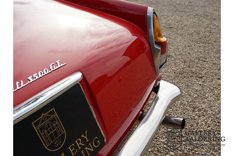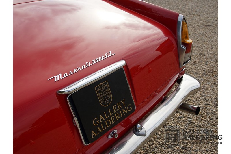 Prachtige Maserati 3500GT Vignale Spyder. Dit exemplaar verliet de Maserati fabriek in Modena op 15 september 1960 en werd nieuw geleverd in Amerika. Het betreft hier één van de slechts 242 Vignales ooit geproduceerd. De Vignale werd pas in 1976 voor het eerst geregistreerd. In 1984 werd de auto verkocht aan een bekende autoverzamelaar in Fort Lauderdale, Florida. Twee jaar later kwam de auto in bezit van een Nederlandse Maserati verzamelaar, die de auto volledig heeft gerestaureerd en gereviseerd. De restauratie nam ruim twee jaar in beslag, kosten noch moeite zijn gespaard om tot dit sublieme resultaat te komen. De carrosserie is prachtig, heeft strak plaatwerk en alle passingen zijn perfect. Voorzien van een heerlijke ZF vijfversnellingsbak. Na de Vignale ruim 20 jaar in bezit te hebben gehad kwam de auto bij de laatste eigenaar terecht. In het voorjaar van 2018 werd de auto technisch volledig geperfectioneerd door een Nederlandse specialist. O.a. de complete ophanging, remmen, waterpomp en koppeling zijn gereviseerd. Het complete motorblok is ook gereviseerd, nadien +/- 30.000 kilometers mee gereden. Gedocumenteerd met vele foto’s en facturen. Optioneel af-fabriek voorzien van schijfremmen aan de voorzijde en 16’’ Borrani spaakwielen. De Vignale Spyder beschikt over haar originele ‘matching numbers’ carburateurmotor, kopie build-sheet waarop alle nummers bevestigd worden is aanwezig. Een zeldzame Maserati in absolute top conditie!
