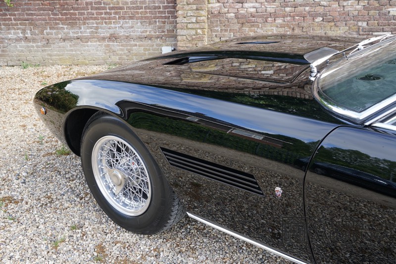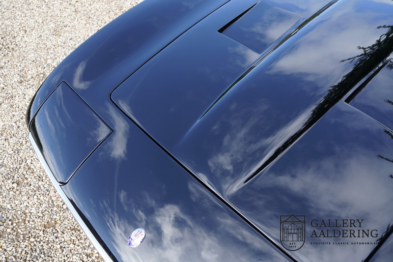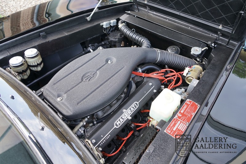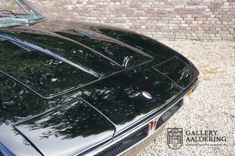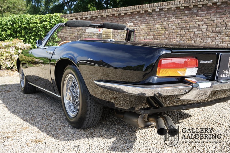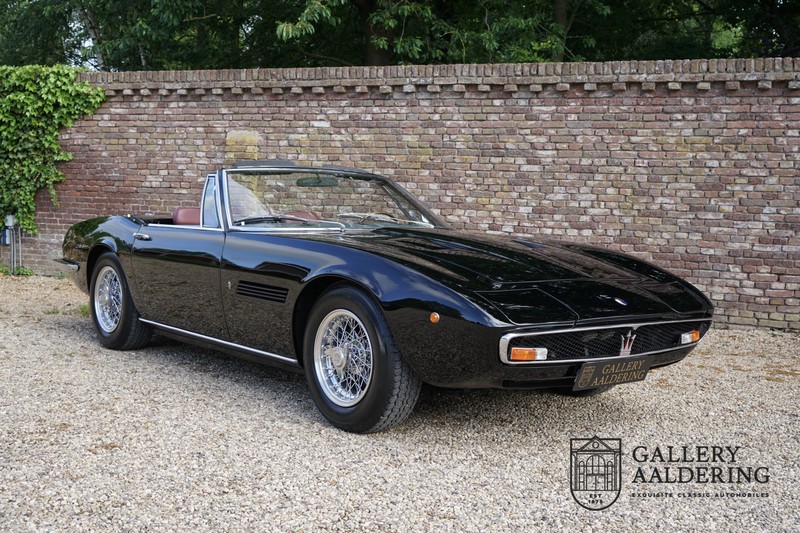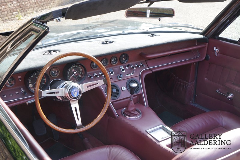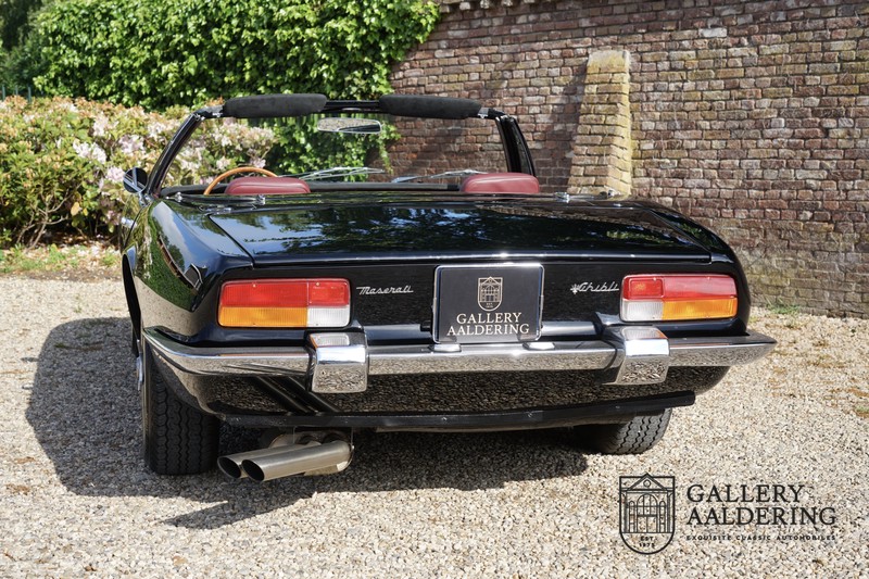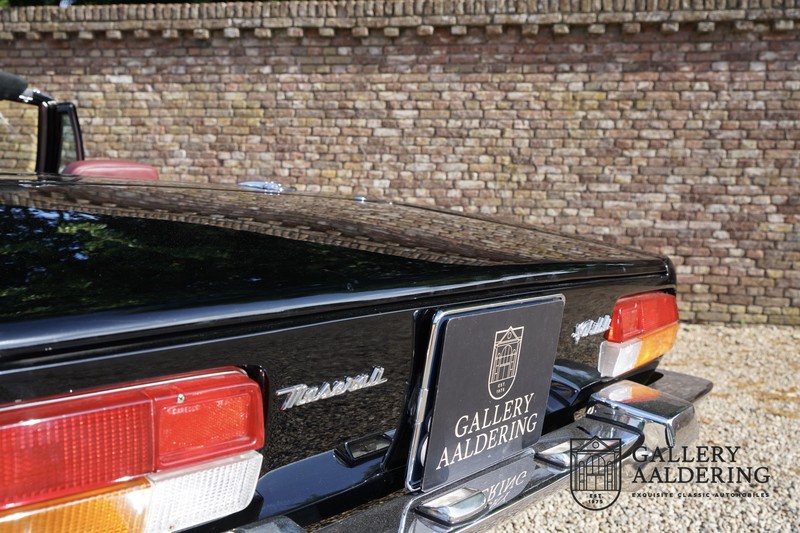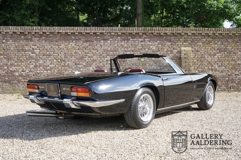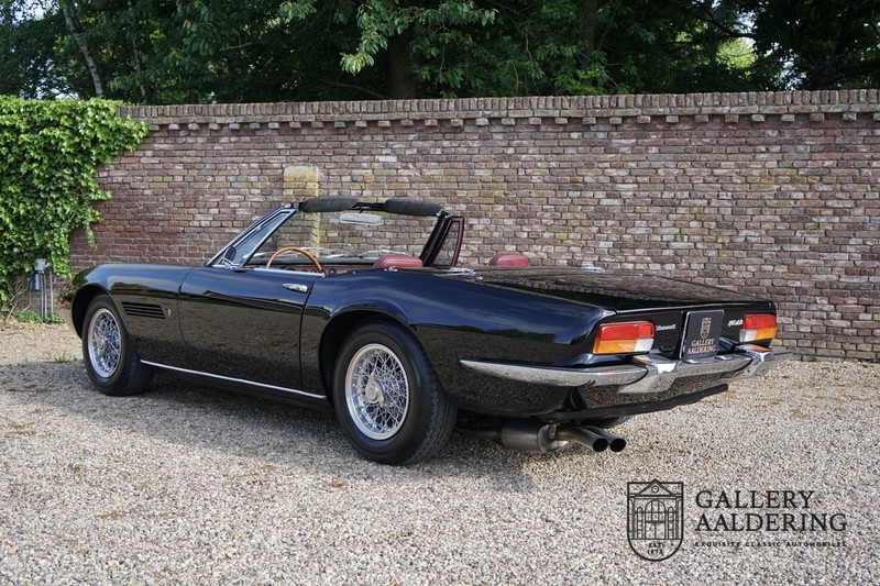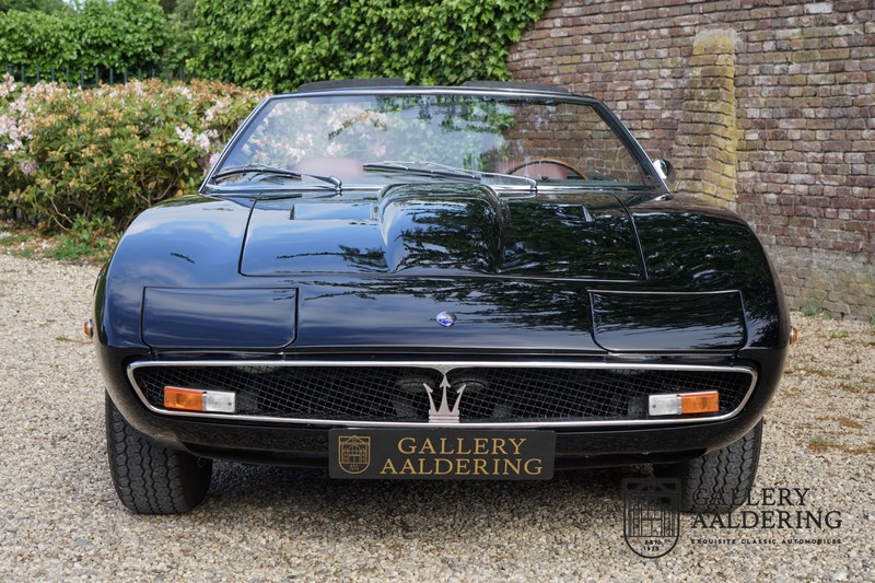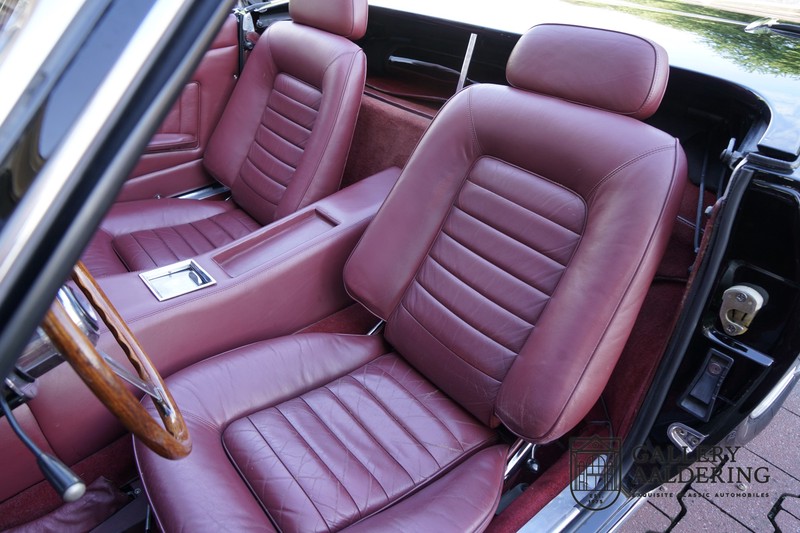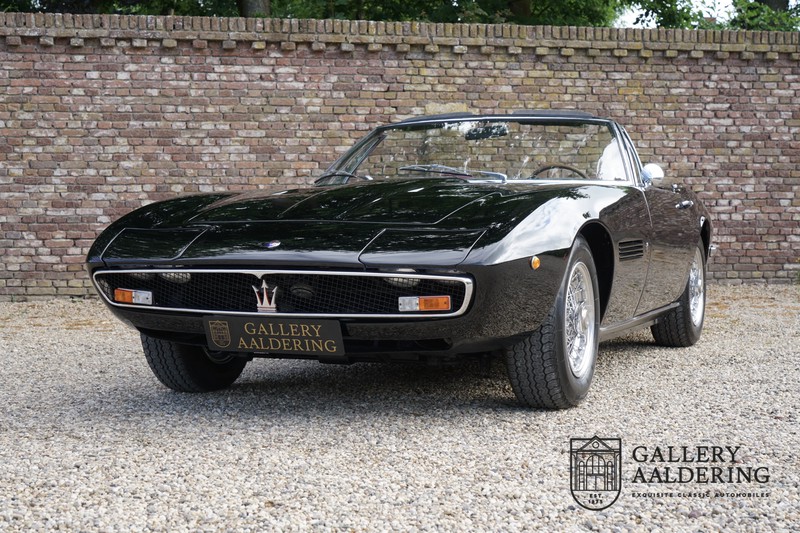 Maserati Ghibli 4.7 ´Campana´ Spider in a beautiful condition. Delivered new in Switzerland in July 1968. This is a Spider based on a coupé. Very professionally built by Carrozzeria Campana and has all correct known details! This example is in an exceptional good condition. A few years ago completely restored. The body is very straight and has correct panel fittings. Technically perfect and in a very good working and driving condition. The undercarriage is rock solid, free of rust and original. Equipped with her original so ´Matching Numbers´ engine. Performed in black with a gorgeous burgundy leather upholstery, black soft-top and central wheel lock rims. A stunning car in an even more stunning condition!