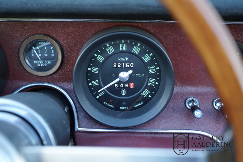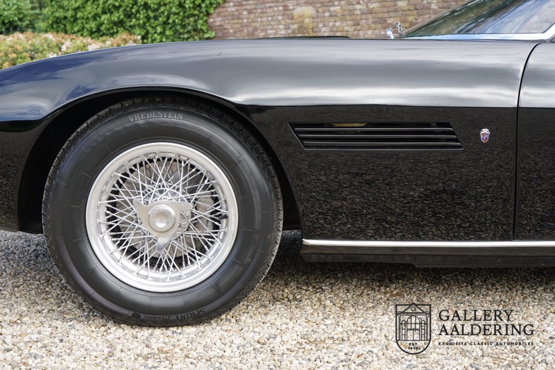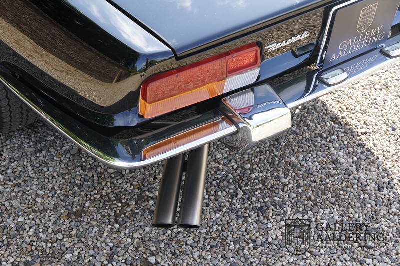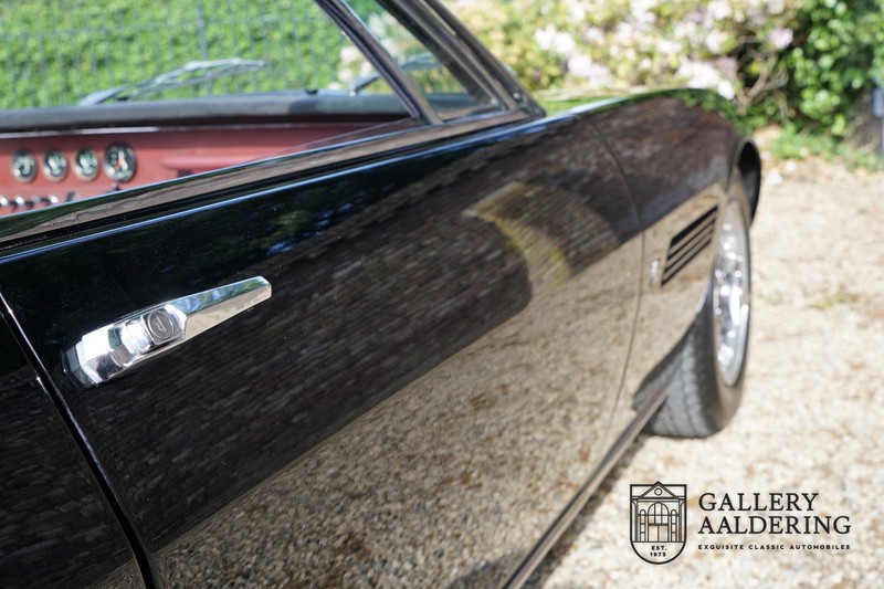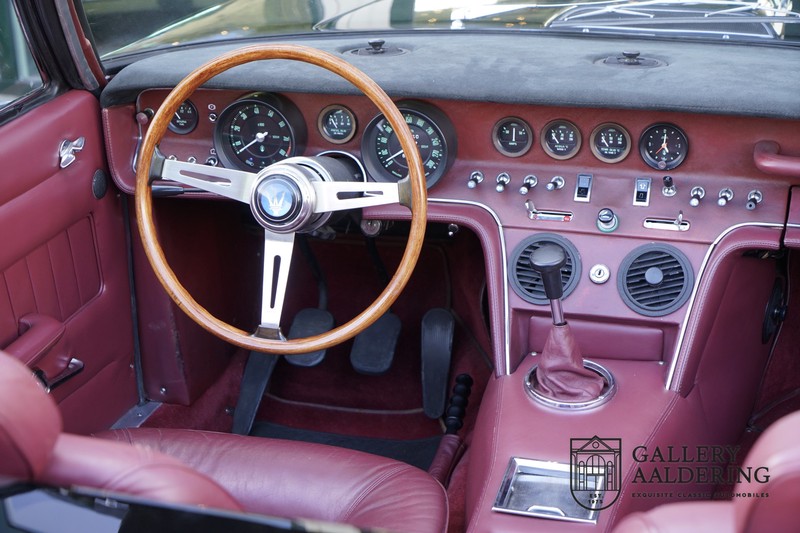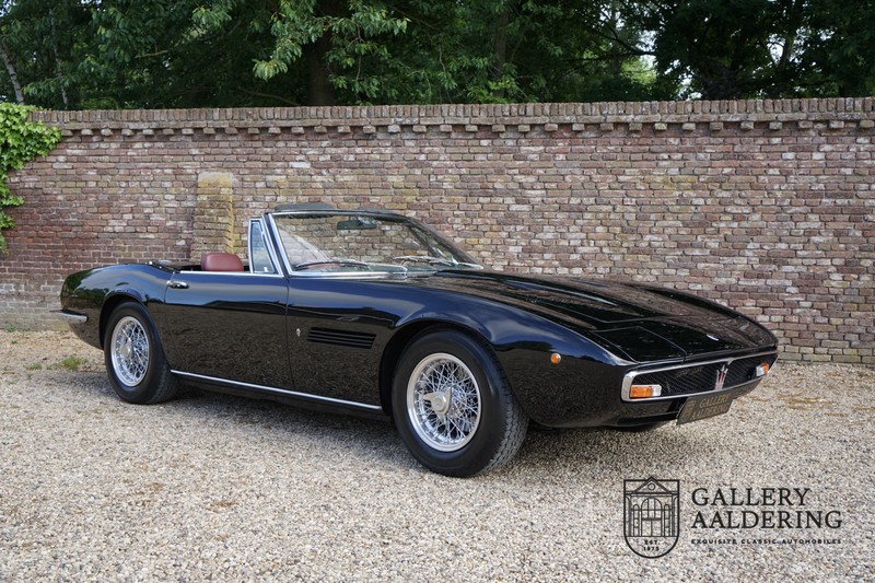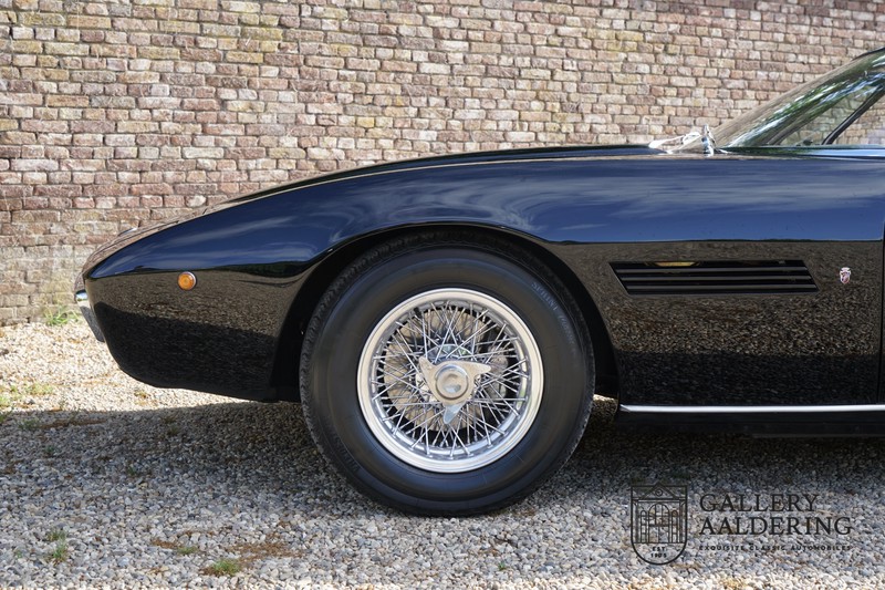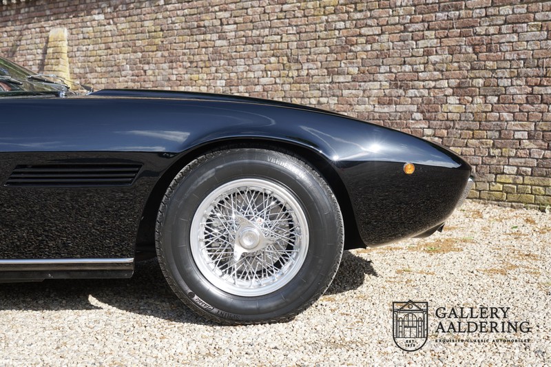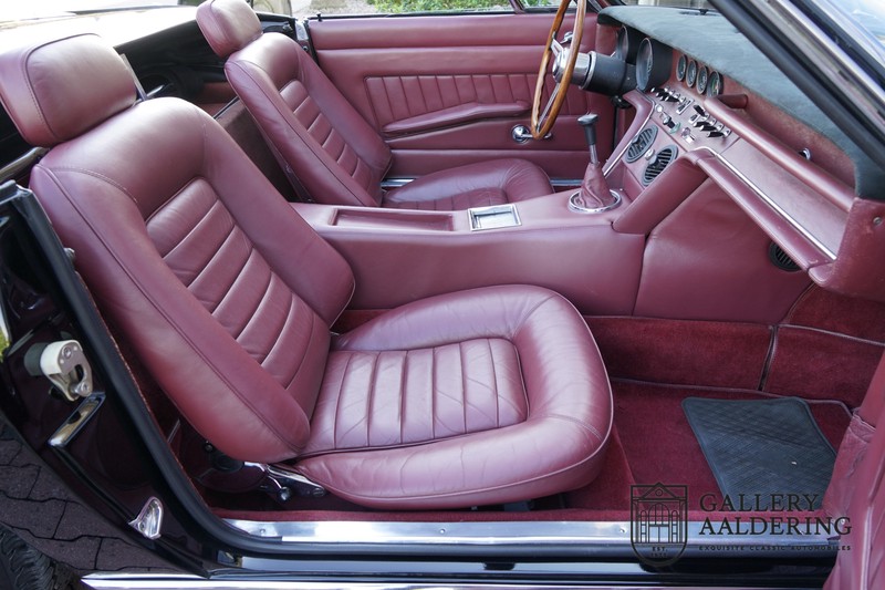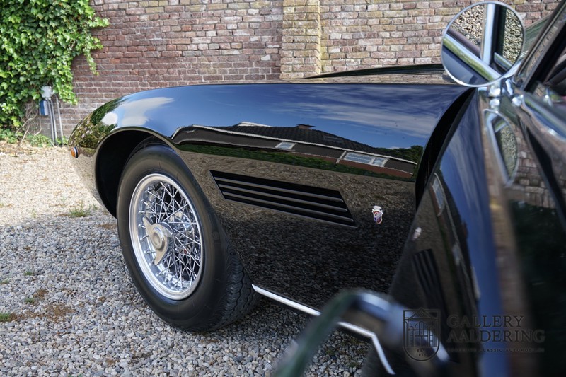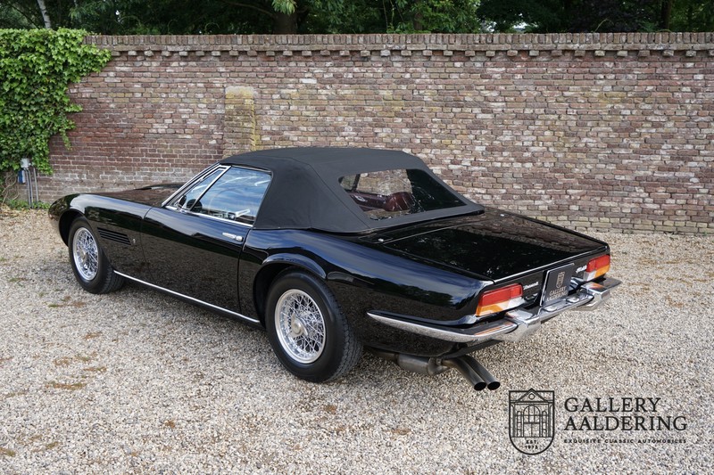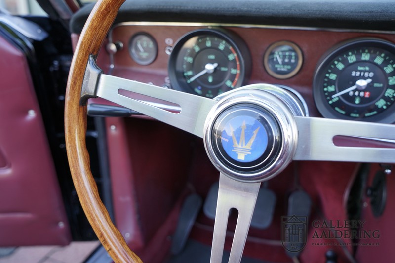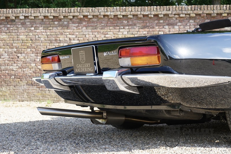 Maserati Ghibli 4.7 ´Campana´ Spider in a beautiful condition. Delivered new in Switzerland in July 1968. This is a Spider based on a coupé. Very professionally built by Carrozzeria Campana and has all correct known details! This example is in an exceptional good condition. A few years ago completely restored. The body is very straight and has correct panel fittings. Technically perfect and in a very good working and driving condition. The undercarriage is rock solid, free of rust and original. Equipped with her original so ´Matching Numbers´ engine. Performed in black with a gorgeous burgundy leather upholstery, black soft-top and central wheel lock rims. A stunning car in an even more stunning condition!