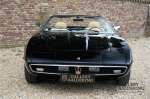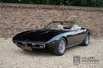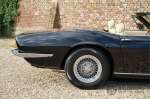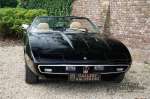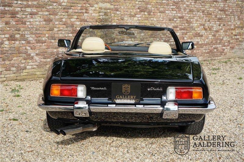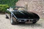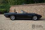 Het betreft hier een prachtige Maserati Ghibli Spyder 4.7 “Campana” uit 1971. De Campana, een beetje een vreemd eend in de bijt. Campana was een carrosseriebouwer die van een coupé Maserati Ghibli een Maserati Ghibli Spyder kon maken. In eerste instantie was Maserati de opdrachtgever voor de ombouw van coupé naar Spyder. Maserati vervaardigde “zelf” slechts 125 spiders waarvan 45 Ghibli SS Spyders. Het laten ombouwen van Coupé’s naar Spyders werd voor Maserati te kostbaar en dus stopten zij met opdracht te geven aan Campana om coupés om te bouwen. Dientengevolge konden potentiële kopers konden vaak geen Ghibly Spyder bemachtigen en lieten daarom zelf een coupé ombouwen naar een Spyder door Campana. Deze Ghibli Spyder verkeert in een schitterende conditie. Het betreft hier een auto die in het recente verleden volledig opnieuw is gespoten. Tijdens deze werkzaamheden zijn er ook wat kleine reparaties uitgevoerd aan de carrosserie. Het resultaat van deze werkzaamheden is uitmuntend te noemen. De carrosserie is in prachtige staat met mooi dun plaatwerk en correcte passingen. De lak is in zeer goede staat met slechts wat hele lichte gebruikerssporen. De auto staat op prachtige borrani chromen spaakwielen en vrijwel nieuwe Pirelli P4000 banden in de originele maten. De cabrioletkap is in zeer goede staat met slechts wat hele lichte sporen van gebruik. Het interieur is bekleed met prachtig beige leder en is in zeer goede staat. Vanzelfsprekend zijn de bedieningselementen en instrumenten in een even mooie staat als de rest van het interieur en functioneren zijn allemaal zoals het hoort. Ook de techniek is zeer goed verzorgd. De Ghibli wordt aangedreven door de originele, matching numbers, 4.7 liter V8-motor die is gekoppeld aan een handgeschakelde transmissie met 5 versnellingen van ZF. De motor levert 310 pk en gaat van 0-100 in 6,9 seconden en kan zelfs doorgaan tot een topsnelheid van 250 kilometer per uur. Knappe prestatie voor een auto die vandaag op de markt is, stratosferisch snel voor een auto uit 1971! Omdat de auto nog maar 37.218 kilometer heeft gereden behoefde de techniek nog nooit een volledige revisie slechts goed onderhoud. Dat de Ghibli goed is onderhouden valt wel af te lezen uit de facturen van de afgelopen vijf jaar. Er werd maar liefst € 13.500,- in het onderhoud geïnvesteerd. De fantastische soundtrack van de 4.7 liter V8-motor is in de coupé al een feest om mee te maken, zonder dak wordt deze ervaring alleen nog maar meer versterkt. De Maserati Ghibli is in elke hoedanigheid een zeldzame auto, in deze staat en als Spyder echter, een absoluut top stuk.