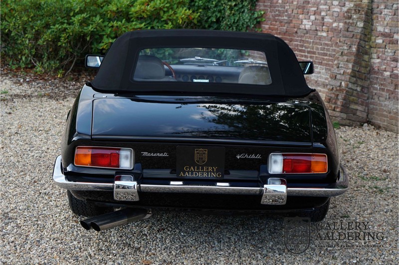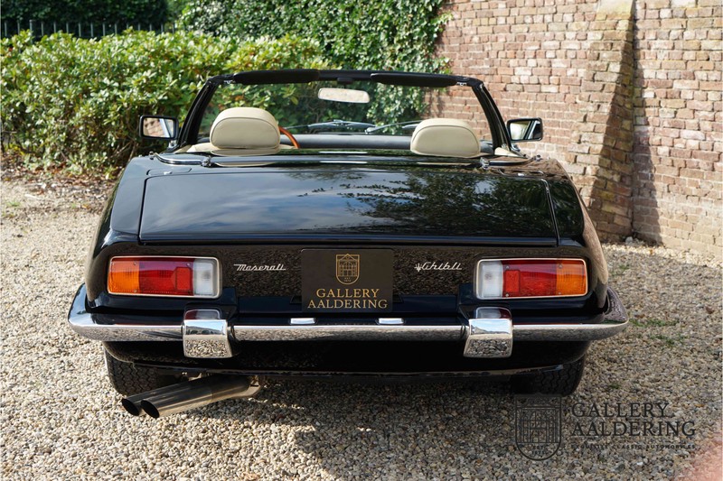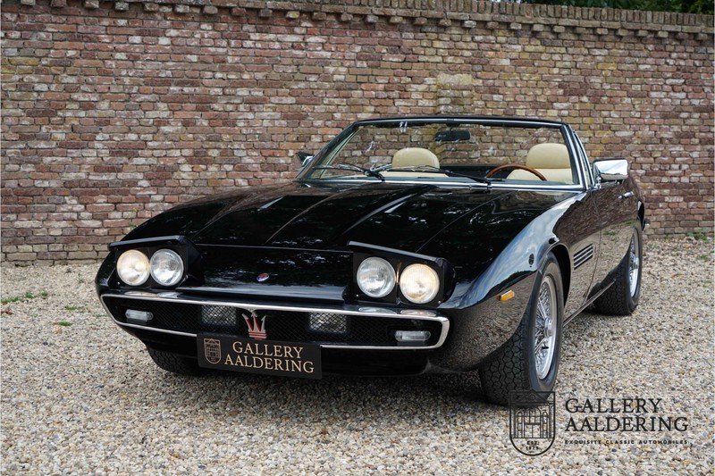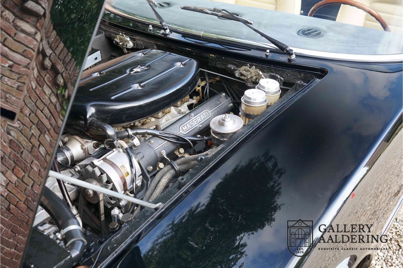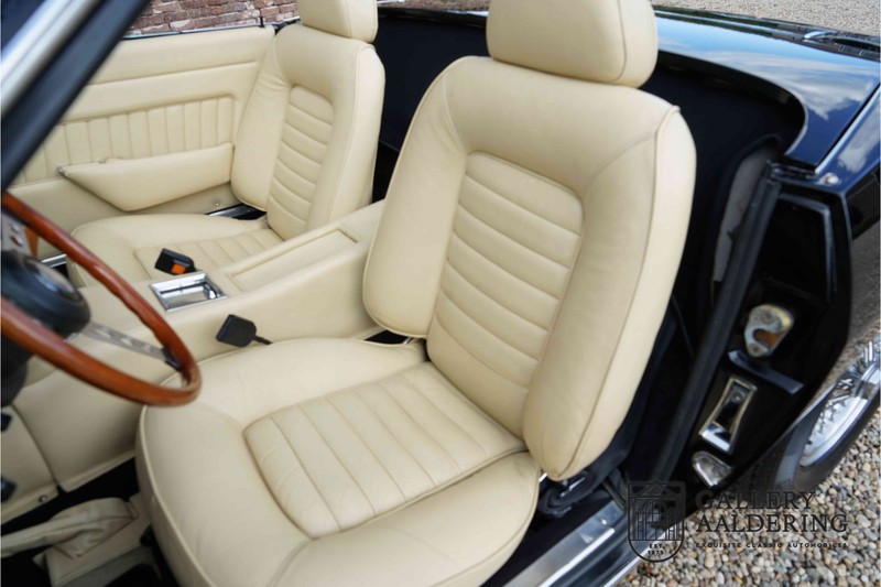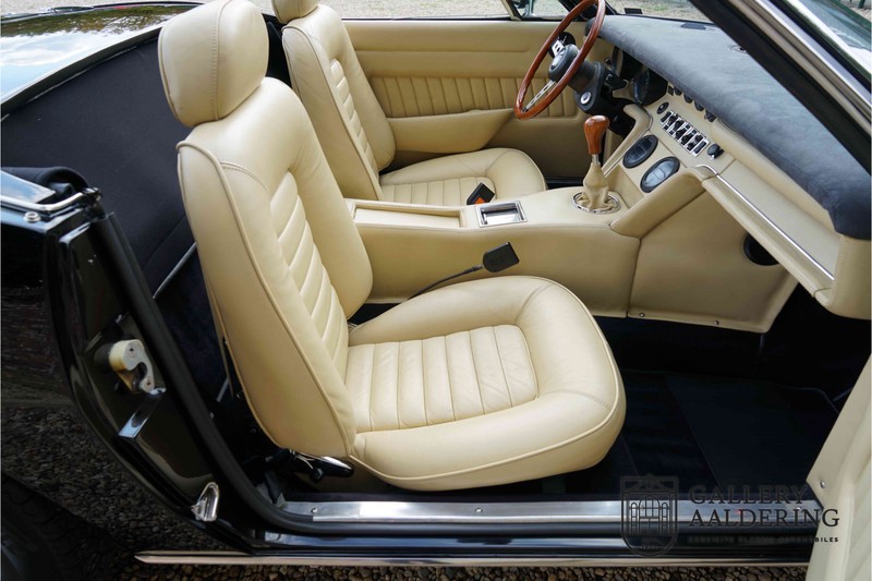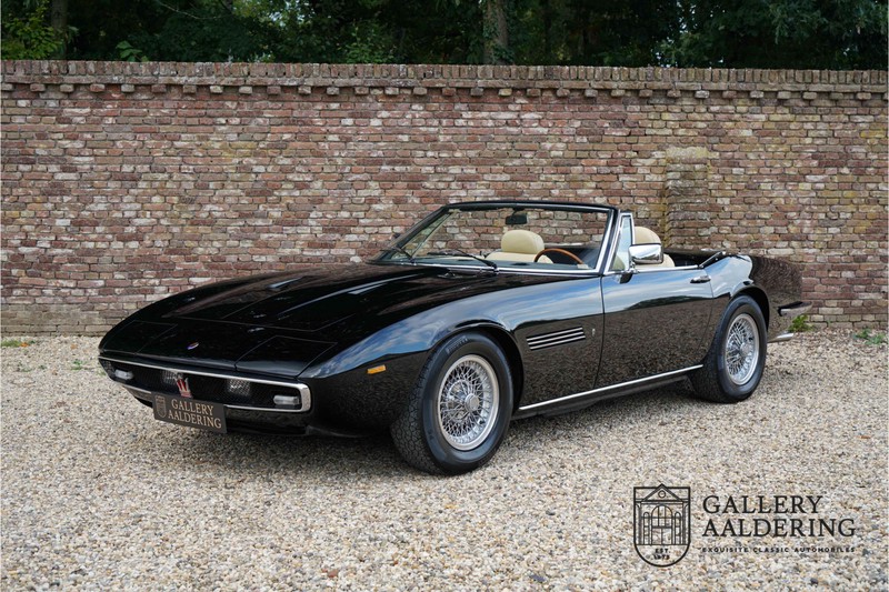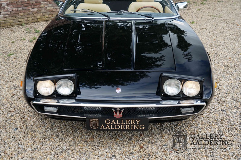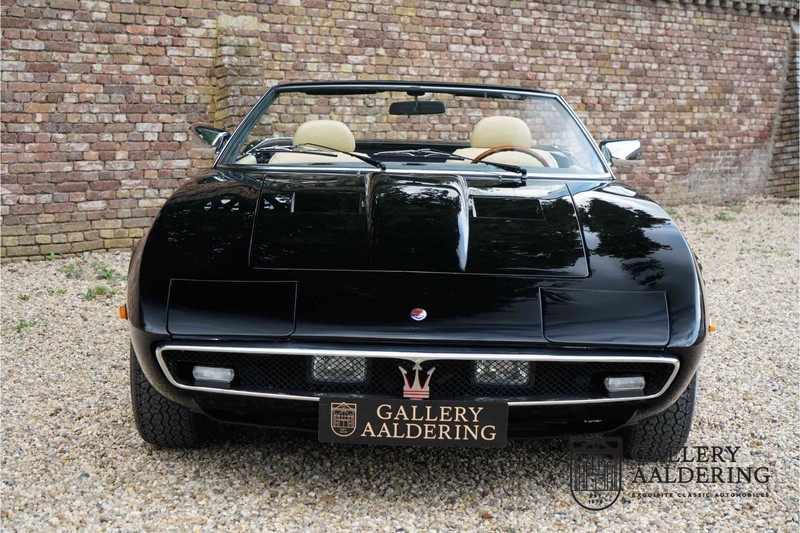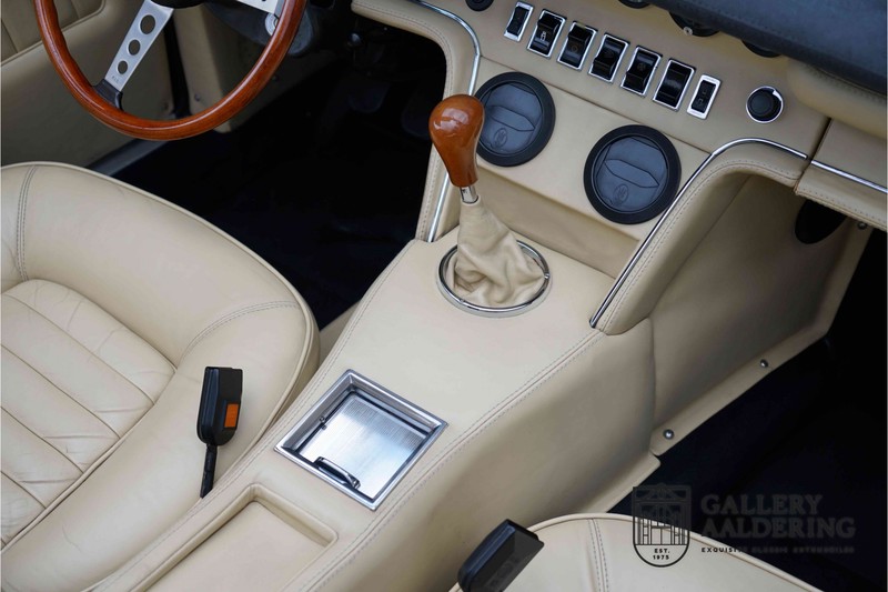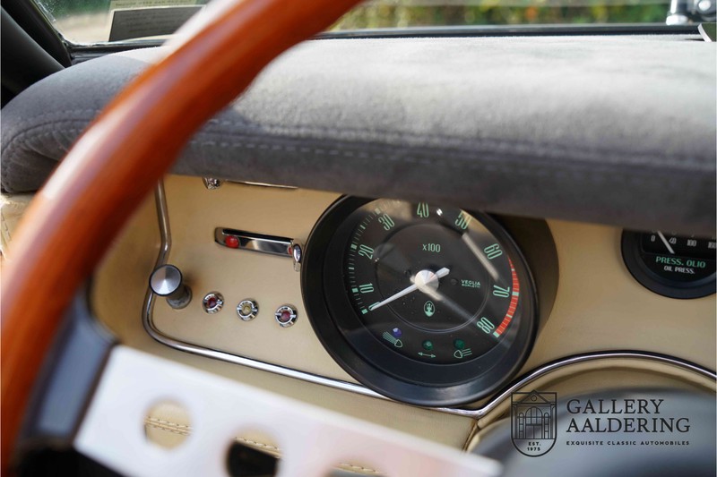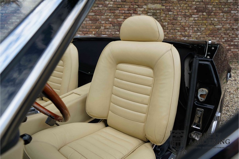 We have a wonderful 1971 Maserati Ghibli Spyder 4.7 “Campana”. The Campana is a bit of the oddity. Campana was a coach builder that was able to build a Spyder on the base of a Maserati Ghibli coupé. In first instance Maserati itself commissioned the Spyder conversion building a total of 125 spiders which 45 Ghibli SS Spyders. Costs forced Maserati to stop contracting the coupé to Spyder conversion out to Campana. As a consequence potential buyers could no longer order a Ghibli Spyder from Maserati, so they took their coupés to Campana themselves. This Ghibli Spyder is in great shape. The car has recently been completely re-sprayed. During this process some minor bodywork repairs were also carried out. The resulting effect is excellent. The fine bodywork has nice and thin, correctly aligned panelwork. It has good quality paintwork with only a few minor signs of use. The car proudly stands on its lovely Borrani wire wheels with nearly new correctly sized Pirelli P4000 tyres. The hood is in good condition with only minor signs of wear. It has lovely good quality beige leather interior trim. Naturally the switches and instruments are in as good a condition as the rest of the cabin and all in good working order. Mechanically the car is also very sound. The Ghibli has a 4.7 V8 engine coupled to a ZF 5-speed gearbox. The engine produces 310 Hp, good for zero to 100 km/hr in 6.9 sec and a top of 250 km/hr. Not to shabby in a current car, stratospherically fast for 1971! With only 37,218 km on the clock the car has never needed a rebuild, just good maintenance and servicing. That this Ghibli has been treated properly is evident from the invoices dating back 5 years. €13,500 was invested in keeping the car trim. The fantastic 4.7 litre V8 engine’s soundtrack is a joy in the coupé, remove the roof at your enjoyment will only multiply! The Maserati Ghibli is whatever guise a rare beast, one in this condition and a Spyder to boot is the pinnacle! Gallery Aaldering is Europe’s leading Classic Cars specialist since 1975! Always 400 Classic and Sportscars in stock, please visit www.gallery-aaldering.com for the current stock list (all offered cars are available in our showroom) and further information. We are located near the German border, 95 km from Düsseldorf and 90 km from Amsterdam. So easy traveling by plane, train, taxi and car. Transport and worldwide shipping can be arranged. No duties/import costs within Europe. We buy, sell and provide consignment sales (selling on behalf of the owner). We can arrange/provide registration/papers for our German (H-Kennzeichen, TÜV, Fahrzeugbrief, Wertgutachten usw.) and Benelux customers. Gallery Aaldering, Arnhemsestraat 47, 6971 AP Brummen, The Netherlands. Tel: 0031-575-564055. Quality, experience and transparency is what sets us apart. We look forward to welcoming you in our showroom