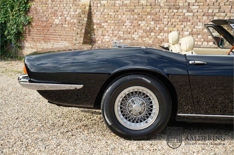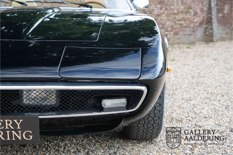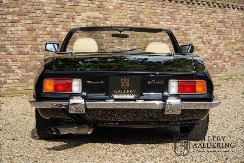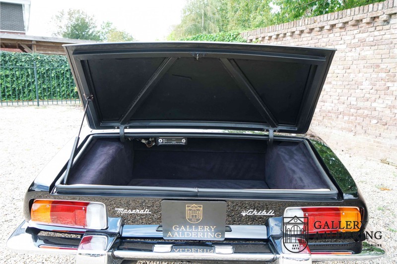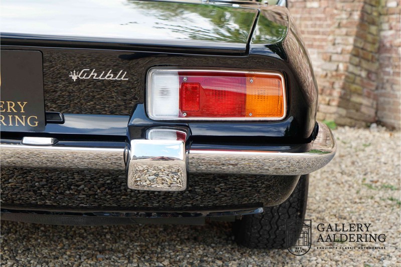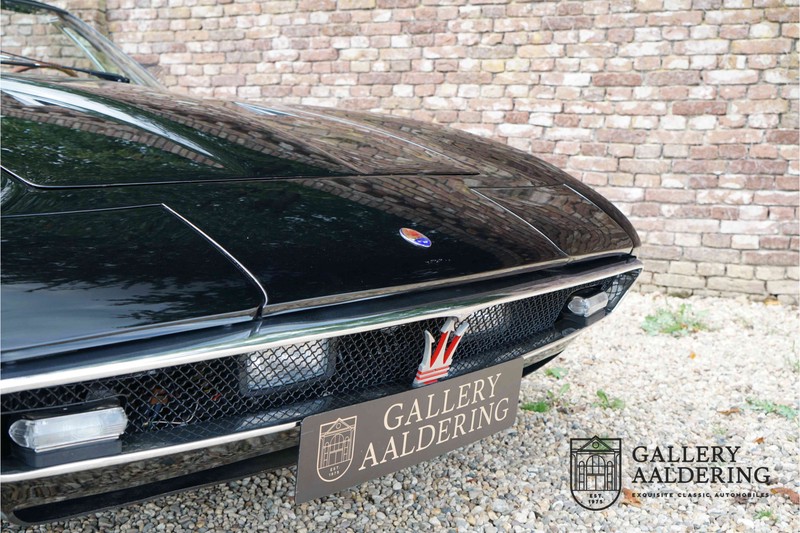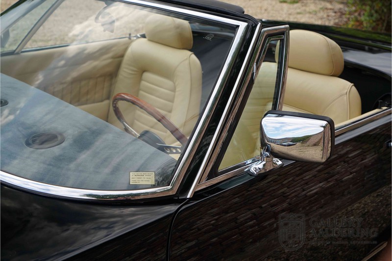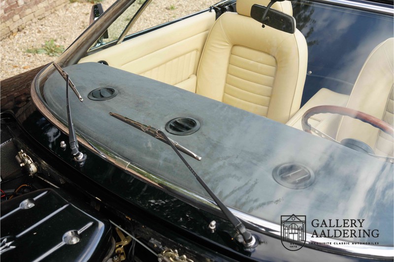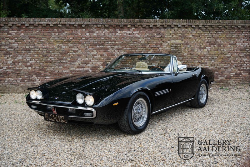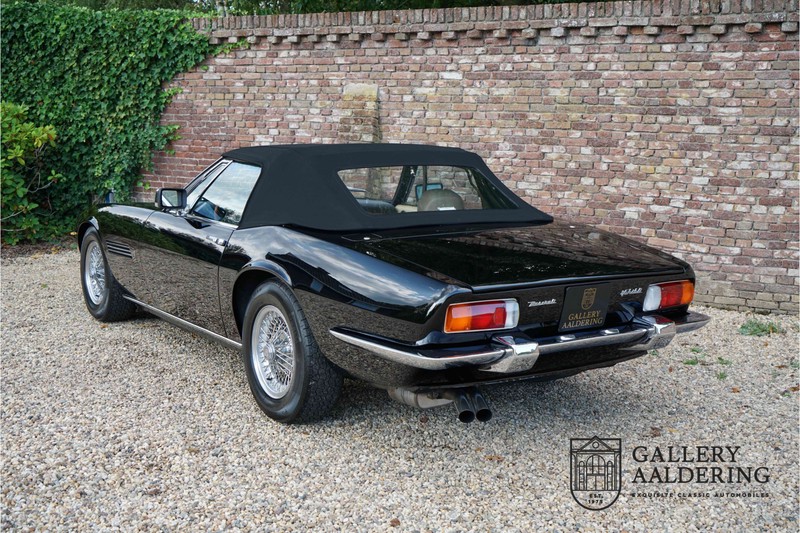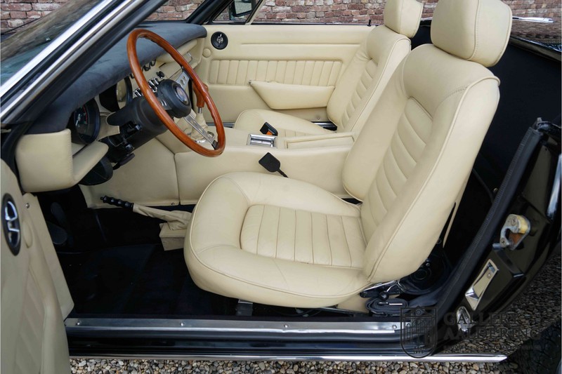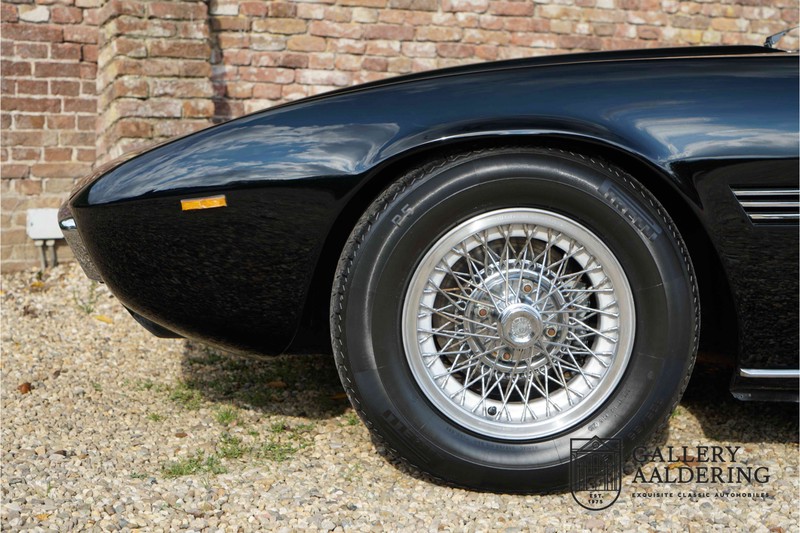 We have a wonderful 1971 Maserati Ghibli Spyder 4.7 “Campana”. The Campana is a bit of the oddity. Campana was a coach builder that was able to build a Spyder on the base of a Maserati Ghibli coupé. In first instance Maserati itself commissioned the Spyder conversion building a total of 125 spiders which 45 Ghibli SS Spyders. Costs forced Maserati to stop contracting the coupé to Spyder conversion out to Campana. As a consequence potential buyers could no longer order a Ghibli Spyder from Maserati, so they took their coupés to Campana themselves. This Ghibli Spyder is in great shape. The car has recently been completely re-sprayed. During this process some minor bodywork repairs were also carried out. The resulting effect is excellent. The fine bodywork has nice and thin, correctly aligned panelwork. It has good quality paintwork with only a few minor signs of use. The car proudly stands on its lovely Borrani wire wheels with nearly new correctly sized Pirelli P4000 tyres. The hood is in good condition with only minor signs of wear. It has lovely good quality beige leather interior trim. Naturally the switches and instruments are in as good a condition as the rest of the cabin and all in good working order. Mechanically the car is also very sound. The Ghibli has a 4.7 V8 engine coupled to a ZF 5-speed gearbox. The engine produces 310 Hp, good for zero to 100 km/hr in 6.9 sec and a top of 250 km/hr. Not to shabby in a current car, stratospherically fast for 1971! With only 37,218 km on the clock the car has never needed a rebuild, just good maintenance and servicing. That this Ghibli has been treated properly is evident from the invoices dating back 5 years. €13,500 was invested in keeping the car trim. The fantastic 4.7 litre V8 engine’s soundtrack is a joy in the coupé, remove the roof at your enjoyment will only multiply! The Maserati Ghibli is whatever guise a rare beast, one in this condition and a Spyder to boot is the pinnacle! Gallery Aaldering is Europe’s leading Classic Cars specialist since 1975! Always 400 Classic and Sportscars in stock, please visit www.gallery-aaldering.com for the current stock list (all offered cars are available in our showroom) and further information. We are located near the German border, 95 km from Düsseldorf and 90 km from Amsterdam. So easy traveling by plane, train, taxi and car. Transport and worldwide shipping can be arranged. No duties/import costs within Europe. We buy, sell and provide consignment sales (selling on behalf of the owner). We can arrange/provide registration/papers for our German (H-Kennzeichen, TÜV, Fahrzeugbrief, Wertgutachten usw.) and Benelux customers. Gallery Aaldering, Arnhemsestraat 47, 6971 AP Brummen, The Netherlands. Tel: 0031-575-564055. Quality, experience and transparency is what sets us apart. We look forward to welcoming you in our showroom