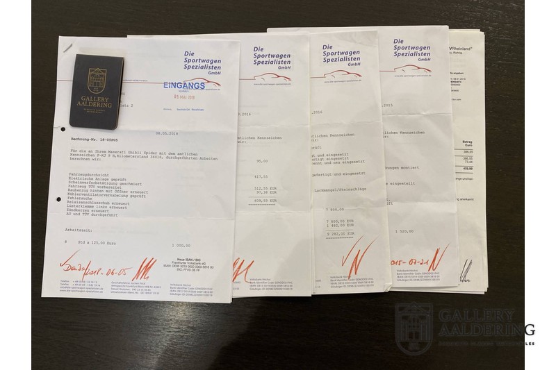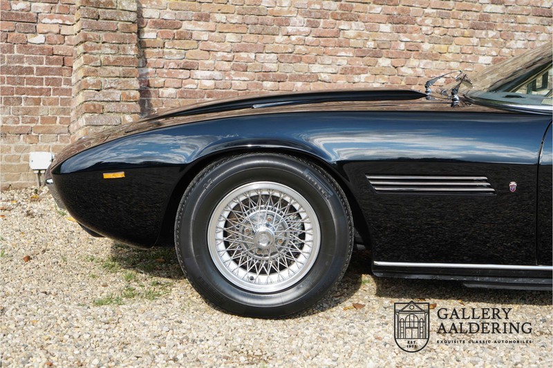 We have a wonderful 1971 Maserati Ghibli Spyder 4.7 “Campana”. The Campana is a bit of the oddity. Campana was a coach builder that was able to build a Spyder on the base of a Maserati Ghibli coupé. In first instance Maserati itself commissioned the Spyder conversion building a total of 125 spiders which 45 Ghibli SS Spyders. Costs forced Maserati to stop contracting the coupé to Spyder conversion out to Campana. As a consequence potential buyers could no longer order a Ghibli Spyder from Maserati, so they took their coupés to Campana themselves. This Ghibli Spyder is in great shape. The car has recently been completely re-sprayed. During this process some minor bodywork repairs were also carried out. The resulting effect is excellent. The fine bodywork has nice and thin, correctly aligned panelwork. It has good quality paintwork with only a few minor signs of use. The car proudly stands on its lovely Borrani wire wheels with nearly new correctly sized Pirelli P4000 tyres. The hood is in good condition with only minor signs of wear. It has lovely good quality beige leather interior trim. Naturally the switches and instruments are in as good a condition as the rest of the cabin and all in good working order. Mechanically the car is also very sound. The Ghibli has a 4.7 V8 engine coupled to a ZF 5-speed gearbox. The engine produces 310 Hp, good for zero to 100 km/hr in 6.9 sec and a top of 250 km/hr. Not to shabby in a current car, stratospherically fast for 1971! With only 37,218 km on the clock the car has never needed a rebuild, just good maintenance and servicing. That this Ghibli has been treated properly is evident from the invoices dating back 5 years. €13,500 was invested in keeping the car trim. The fantastic 4.7 litre V8 engine’s soundtrack is a joy in the coupé, remove the roof at your enjoyment will only multiply! The Maserati Ghibli is whatever guise a rare beast, one in this condition and a Spyder to boot is the pinnacle! Gallery Aaldering is Europe’s leading Classic Cars specialist since 1975! Always 400 Classic and Sportscars in stock, please visit www.gallery-aaldering.com for the current stock list (all offered cars are available in our showroom) and further information. We are located near the German border, 95 km from Düsseldorf and 90 km from Amsterdam. So easy traveling by plane, train, taxi and car. Transport and worldwide shipping can be arranged. No duties/import costs within Europe. We buy, sell and provide consignment sales (selling on behalf of the owner). We can arrange/provide registration/papers for our German (H-Kennzeichen, TÜV, Fahrzeugbrief, Wertgutachten usw.) and Benelux customers. Gallery Aaldering, Arnhemsestraat 47, 6971 AP Brummen, The Netherlands. Tel: 0031-575-564055. Quality, experience and transparency is what sets us apart. We look forward to welcoming you in our showroomDie Gallery Aaldering in den Niederlanden existiert seit 1975 und ist Marktführer in Europa im Bereich von klassischen Fahzreugen. Es sind immer 400 klassische Fahzreuge und Sportwagen auf Vorrat. Bitte besuchen Sie unsere Website www.gallery-aaldering.com für den aktuellen Vorrat und weitere Informationen. Alle gezeigte Fahrzeuge sind zu besichtingen in unseren Ausstellungsräumen. Wir haben unseren Sitz unweit der deutschen Grenze, 95 Km Entfernung von Düsseldorf und 90 Km Entfernung von Amsterdam, gut erreichbar mit dem Zug, Auto, Taxi und Flugzeug. Transport und Versand weltweit kann versorgt werden, innerhalb von Europa fallen keine Importsteuern oder Zollkosten an. Unsere Kerntätigkeiten sind Ankauf, Verkauf und Konsignationverkauf. (im Auftrag vom Kunde) Wir versorgen alle Zulassungsunterlagen (H-Kennzeichen, Fahrzeugbrief, Wertgutachten usw.) für unsere deutsche- und Beneluxkunden. Bei uns können Sie auch leasen oder finanzieren! Unser Leasingpartner bietet maßgeschneiderte Lösungen für private und gewerbliche Kunden. Gallery Aaldering, Arnhemsestraat 47, 6971 AP Brummen in den Niederlanden. T. 0031-575-564055 Qualität, Erfahrung und Transparenz sind unsere besondere Merkmale! Wir freuen und auf Ihren Besuch.
