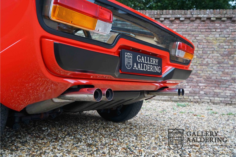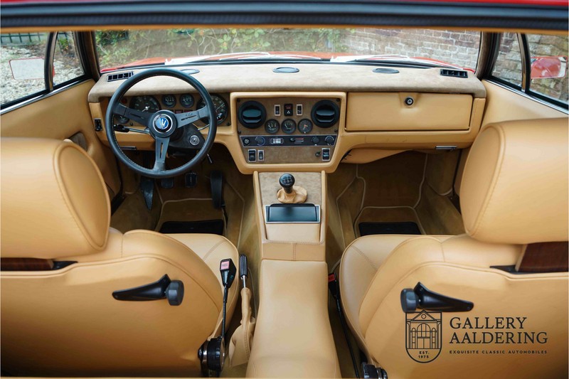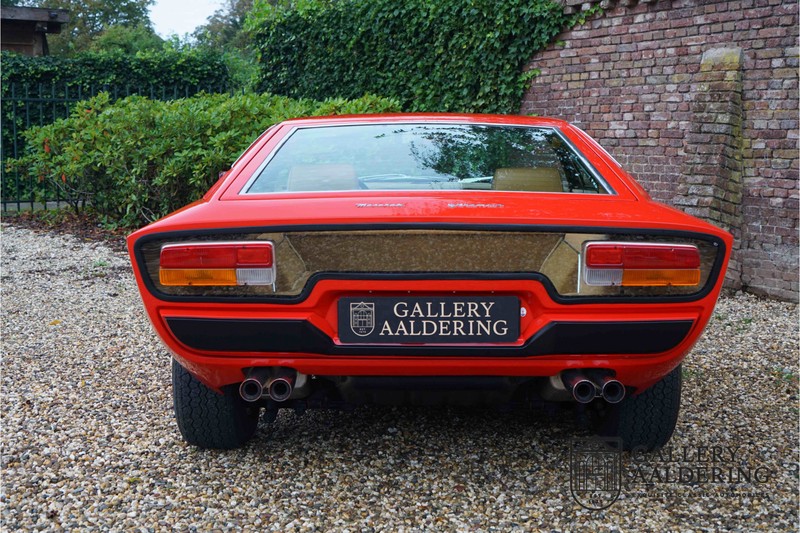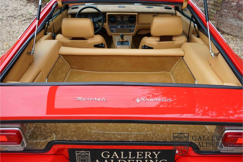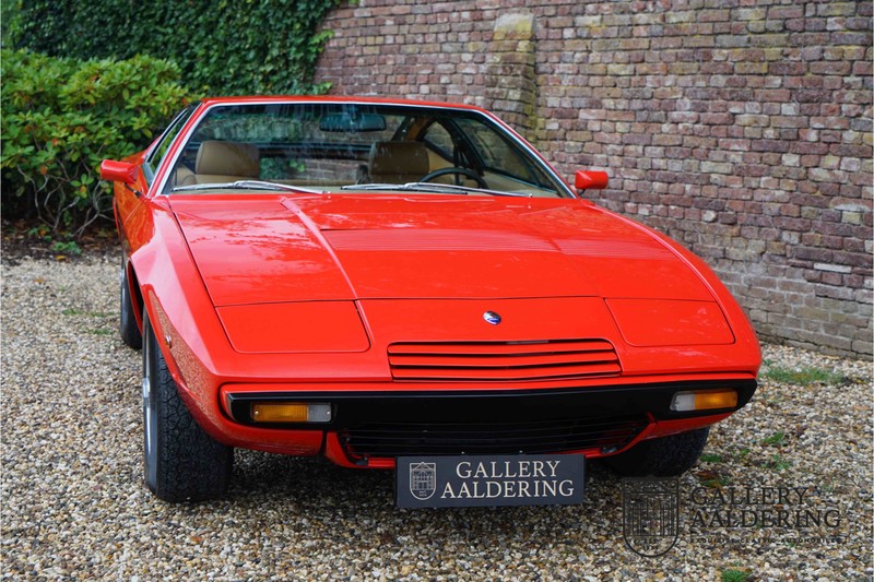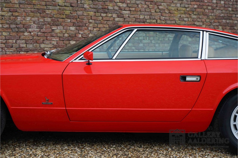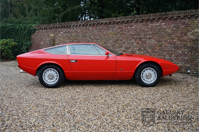 In short a perfect 1977 Maserati Khamsin in unique condition. Gallery Aaldering is Europe’s leading Classic Cars specialist since 1975! Always 400 Classic and Sportscars in stock, please visit www.gallery-aaldering.com for the current stock list (all offered cars are available in our showroom) and further information. We are located near the German border, 95 km from Düsseldorf and 90 km from Amsterdam. So easy traveling by plane, train, taxi and car. Transport and worldwide shipping can be arranged. No duties/import costs within Europe. We buy, sell and provide consignment sales (selling on behalf of the owner). We can arrange/provide registration/papers for our German (H-Kennzeichen, TÜV, Fahrzeugbrief, Wertgutachten usw.) and Benelux customers. Gallery Aaldering, Arnhemsestraat 47, 6971 AP Brummen, The Netherlands. Tel: 0031-575-564055. Quality, experience and transparency is what sets us apart. We look forward to welcoming you in our showroom