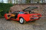 How great is this? When did you last clap eyes on a Maserati Khamsin? Do you know the model? Well, the Maserati Khamsin is the ultimate 70’s Grand Tourer and was Maserati’s idea of a car for transcontinental European travel at speed. This specific 1974 example has only clocked up 28,745 km and is in very good shape. Let’s start by explaining why and how this model came into being. In 1972 Studio Bertone received its first ever order to develop a Maserati. The Khamsin was exhibited to the public at the 1972 Turin Auto Show as a concept car on Bertone’s stand. It was well received and in March 1973 the production car took prize of place on the Maserati stand at the Paris Motor Show. It was presented as the successor to the Maserati Ghibli. Maserati also had the Bora in its range, that many clients saw more as a sports car rather than a Grand tourer because of its mid-engine position behind the front seats. In the Khamsin that problem was solved by a more conventionally placed front engine. To top it all the Khamsin was also a 2+2 with, for its size, a considerably sized boot. Although the Khamsin should have been a runaway success, eventually only 435 were sold due to the effects of the 1973 oil crisis. The car you see before you is the show car of the Turin Auto Show in 1974. If you happen to have seen pictures of the car back then, you may not have immediately recognised it. The Khamsin has had a complete makeover after being fully restored and re-sprayed in the “Fuoco” red