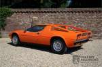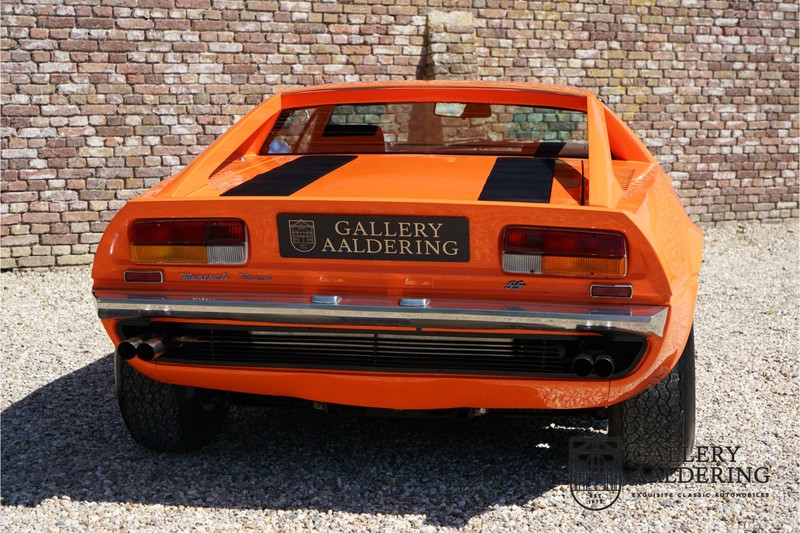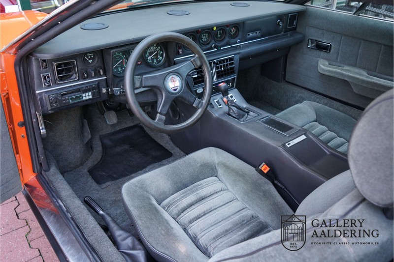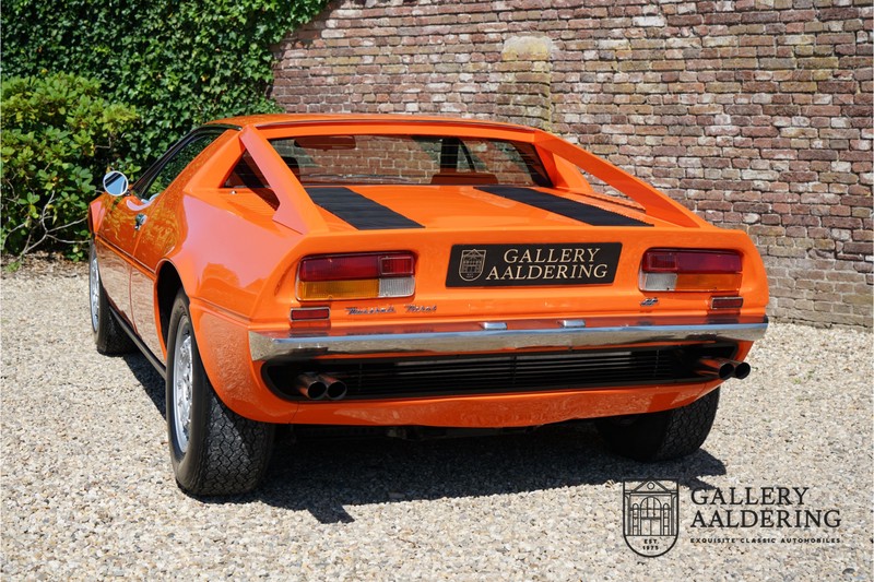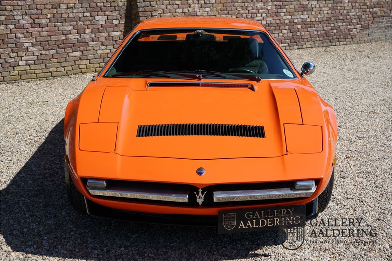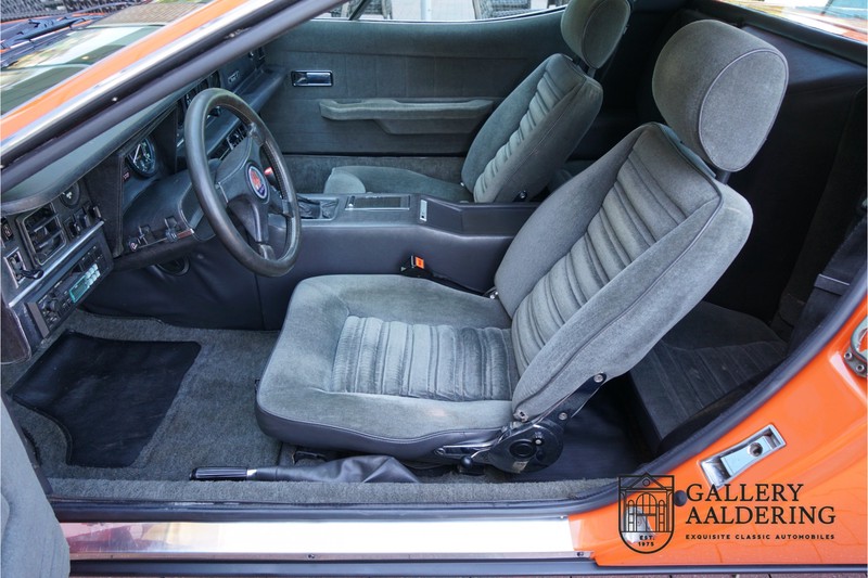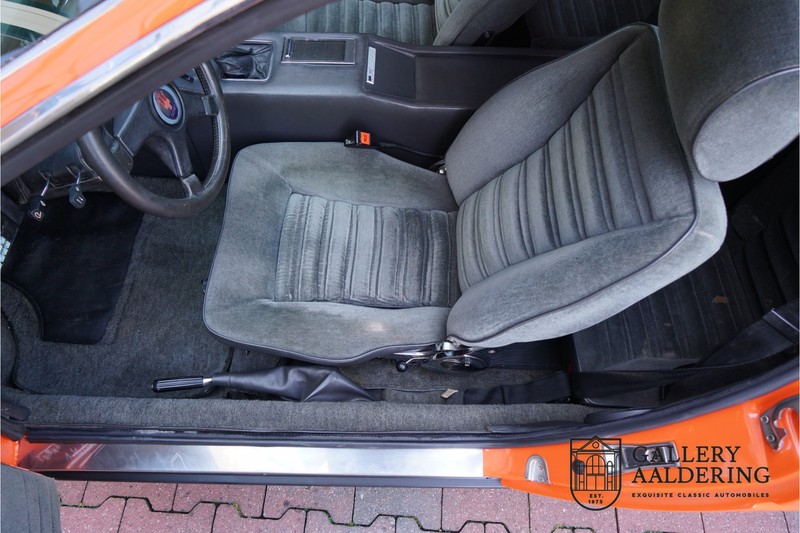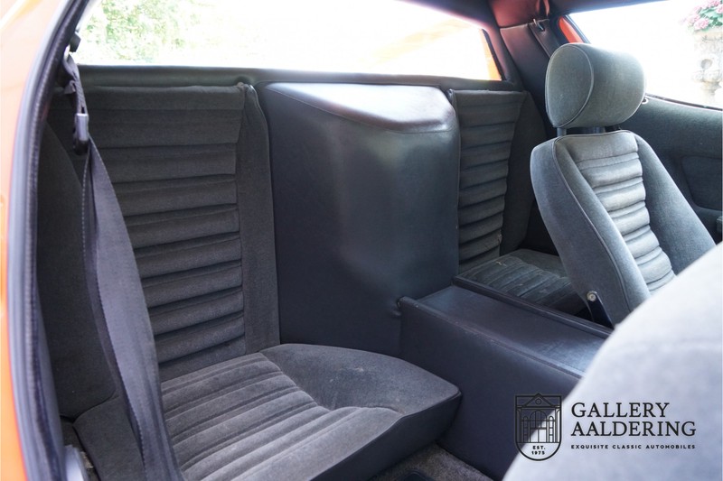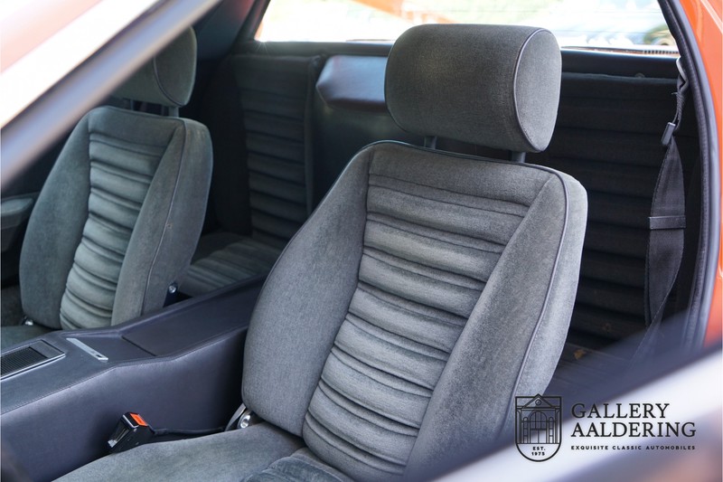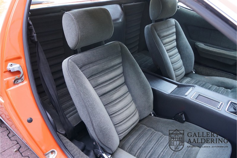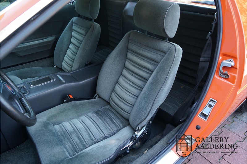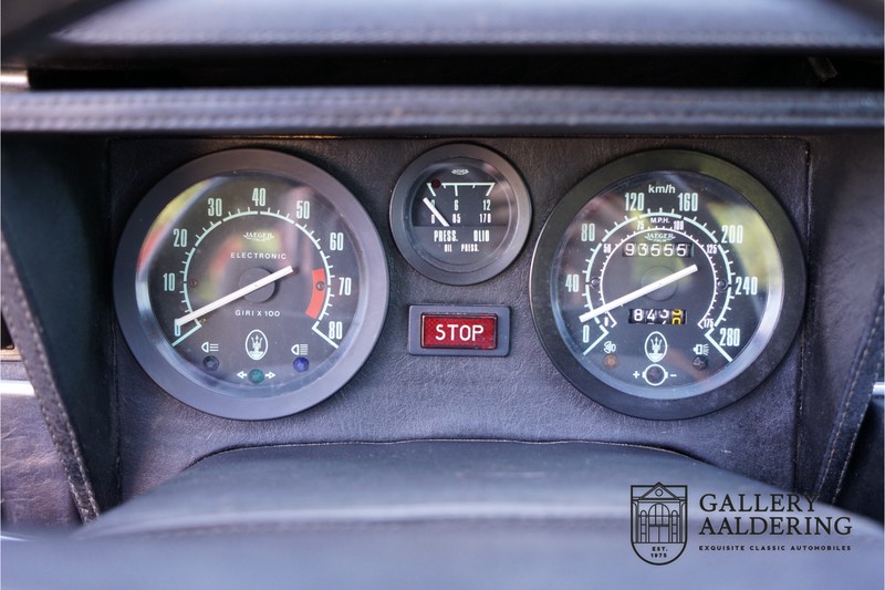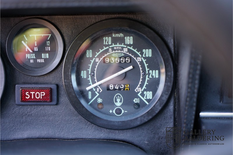 Dieser schöne Maserati Merak 3000 SS rollte am 1. September 1976 vom Band und wurde danach in Belgien zugelassen. Es handelt sich um die seltene SS Version, welche im Vergleich zu dem normalen Merak 50 KG leichter und 30 PS stärker ist und das spürt man natürlich beim Fahren. Von der SS Serie wurden nur 1000 Exemplare produziert, diese Serie erkannt man u.a. an dem 4-Speichen Lenkrad und dem schwarzen Kühlergrill. Dieser Merak stammt aus einer Sammlung und wurde immer gehegt und gepflegt. Das Auto wurde schon mal restauriert, wobei gut auf die originale Details geachtet wurde. Das “Dark Grey Velvet“ Interieur ist z.B. noch vollkommen original und befindet sich in einem gepflegten Zustand. Die Karosserie ist schön und hat eine gute Lackierung. Der Motor ist original und hat also Matching Numbers. Ein schöner Maserati Merak mit einer tollen Karosserie aus dem Italdesign-Giugiaro Haus.