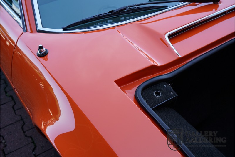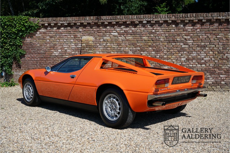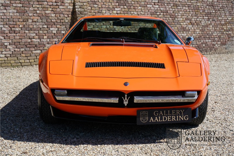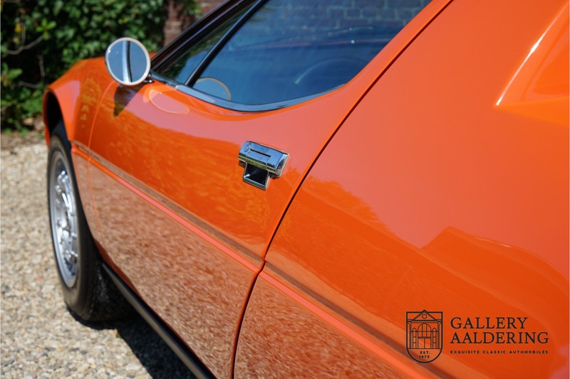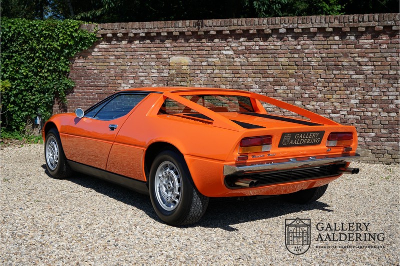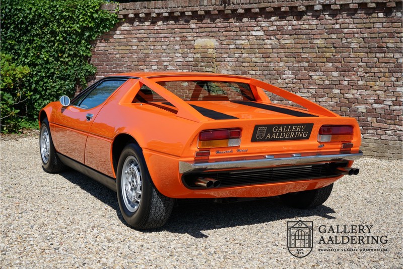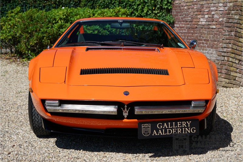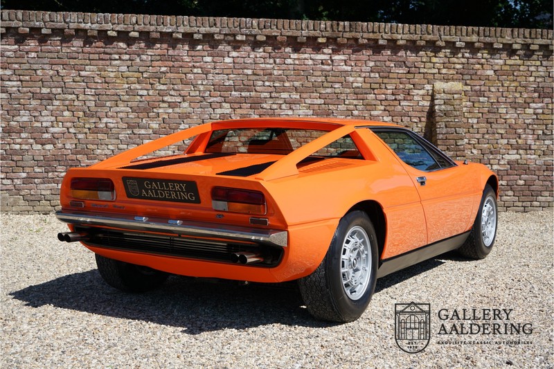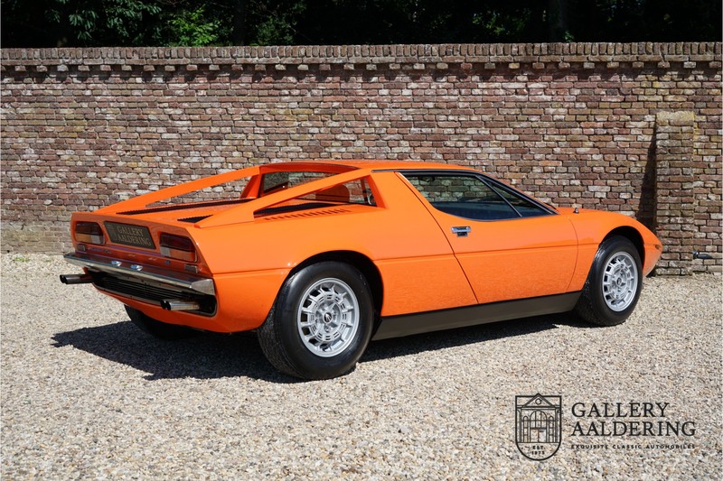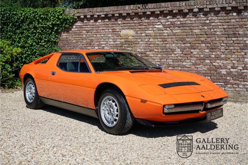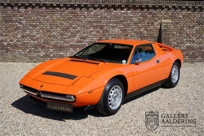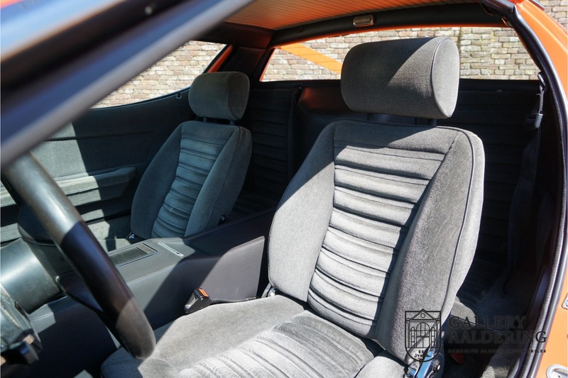 This lovely Belgium supplied Maserati Merak 3000 SS rolled out of the factory on the 1st September 1976. This car is the faster and rarer SS version. It is 50kg lighter and has an extra 30 Hp in contrast to the standard Merak, which explains the improved performance. Only 1,000 SS cars were ever made. The 4-spoke rims and black grill in between the pop-up headlights distinguish the SS from the standard version. This particular car formed part of a collection and as such has always enjoyed excellent care and attention. In the past it was restored, keeping the original features. The very neat ‘Dark Grey Velvet’ interior trim is completely original. The excellent bodywork has nice panels and good paintwork. This Merak has its original, matching numbers, engine. This is a beautiful Maserati with Italdesign-Giugiaro bodywork.