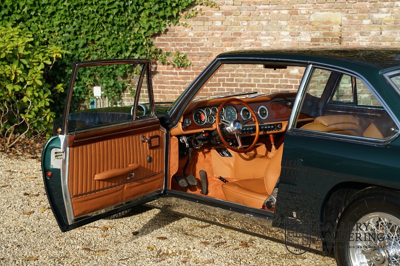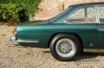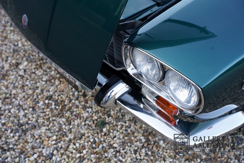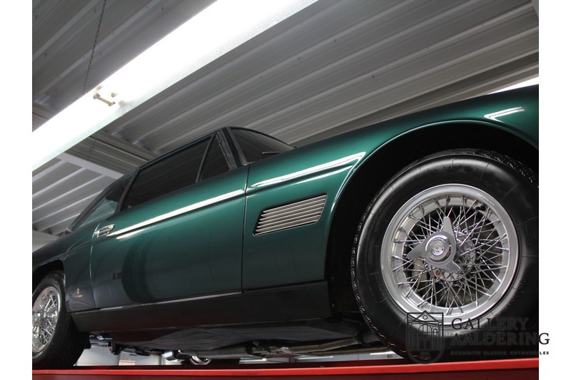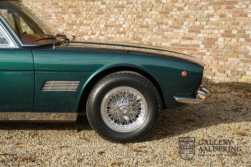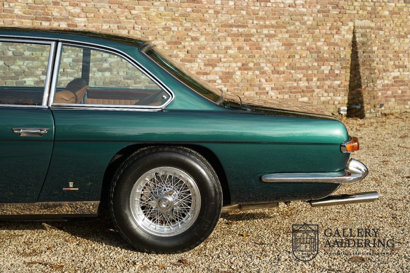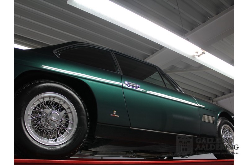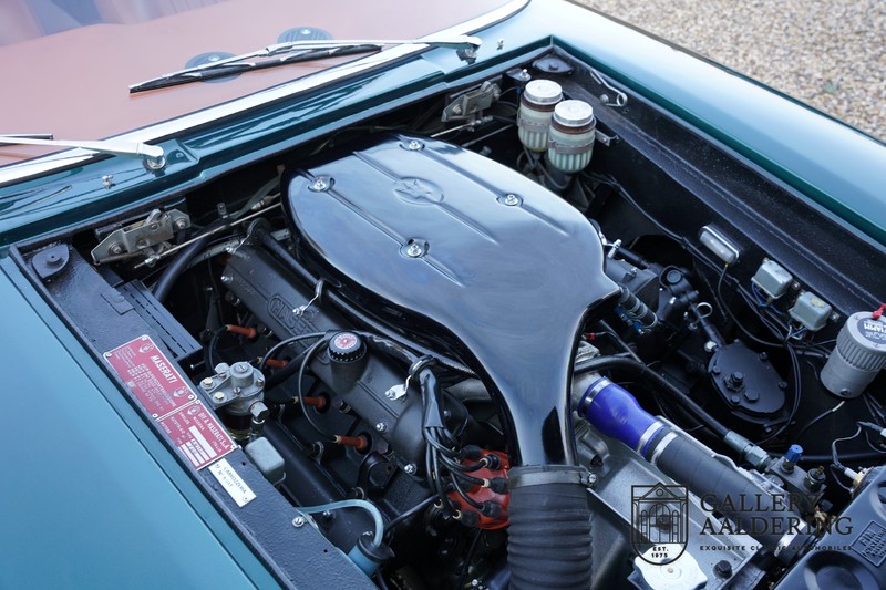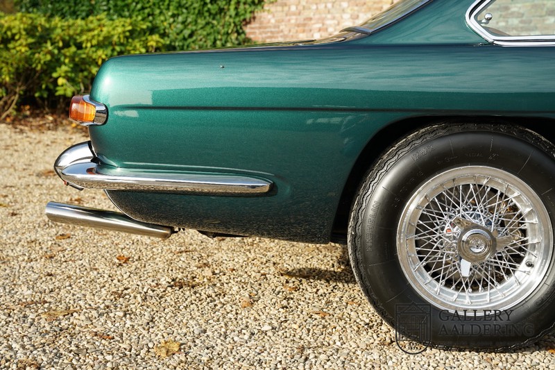 De carrosserie verkeert in schitterende conditie. Tijdens de restauratie is de body helemaal teruggebracht tot blank metaal en daar waar nodig gerepareerd alvorens de auto volledig opnieuw werd opgebouwd. Het plaatwerk ziet er dan ook prachtig uit en sluit overal zeer goed aan. Ook de verchroomde sierlijsten zien er prachtig uit en zijn volledig origineel. De auto staat op de karakteristieke Borrani wielen die passen bij de periode. De carrosserie werd vervolgens volledig opnieuw gespoten in deze prachtige groene kleur. De lak is destijds zeer goed gespoten en sindsdien zeer goed onderhouden want afgezien van wat hele minimale sporen van gebruik verkeert de lak in nieuwstaat.