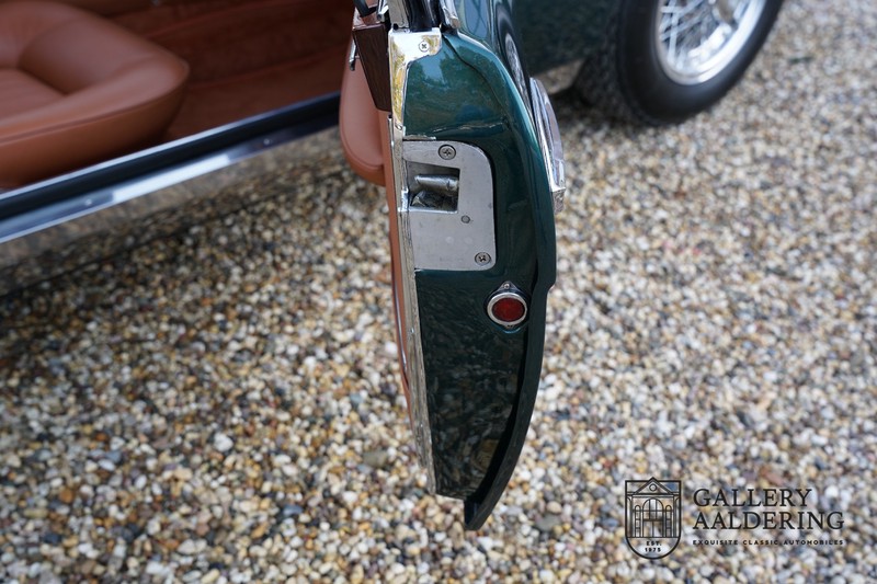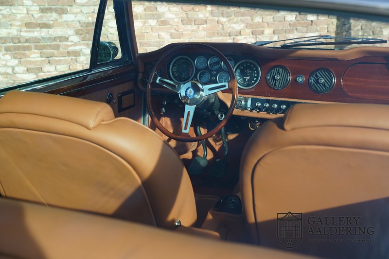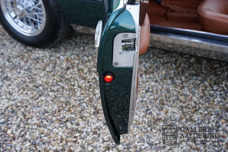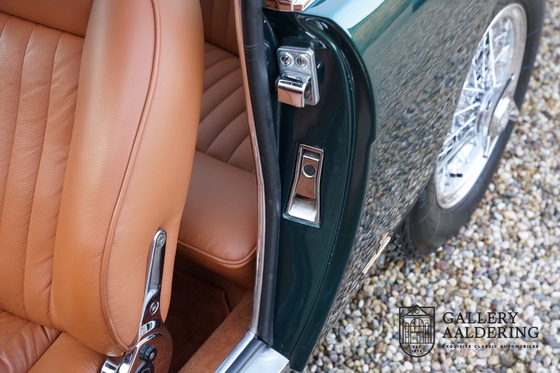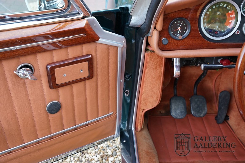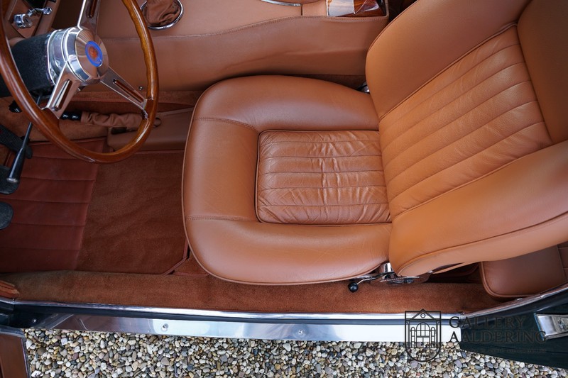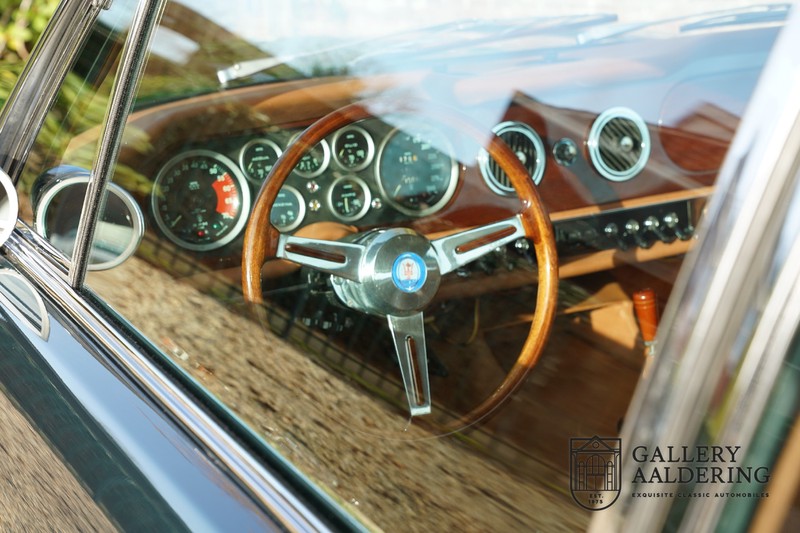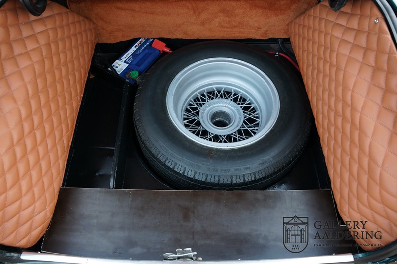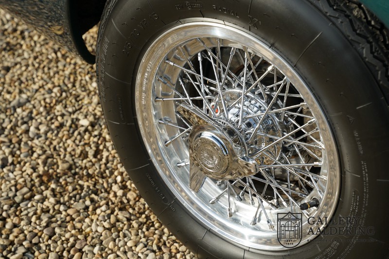 The bodywork is excellent. During the restoration the body was taken back to bare metal, repaired where needed before being put back together again. The panelwork looks just fine with the alignment being very good. The fully original chrome brightwork looks great. The car has been fitted with the characteristic and period correct Borrani rims. The bodywork was resprayed in the beautiful green colour it now sports. The high quality of the paintwork has weathered really well showing only minor signs of wear and looks pristine to all intense and purpose.