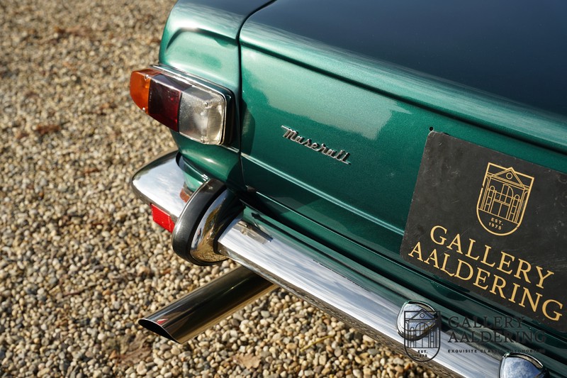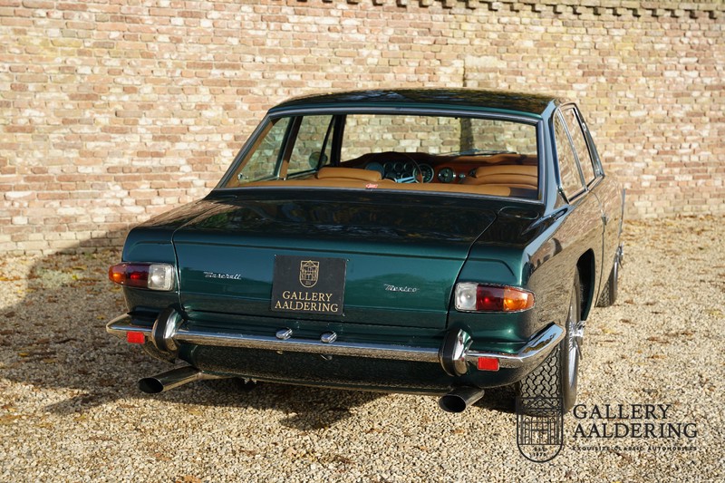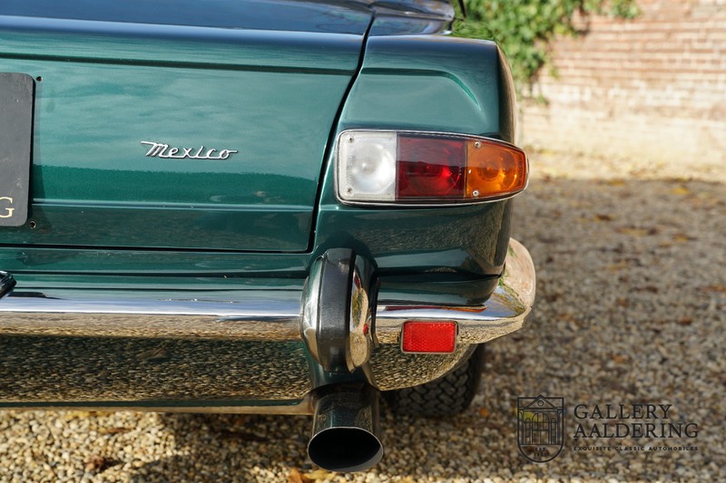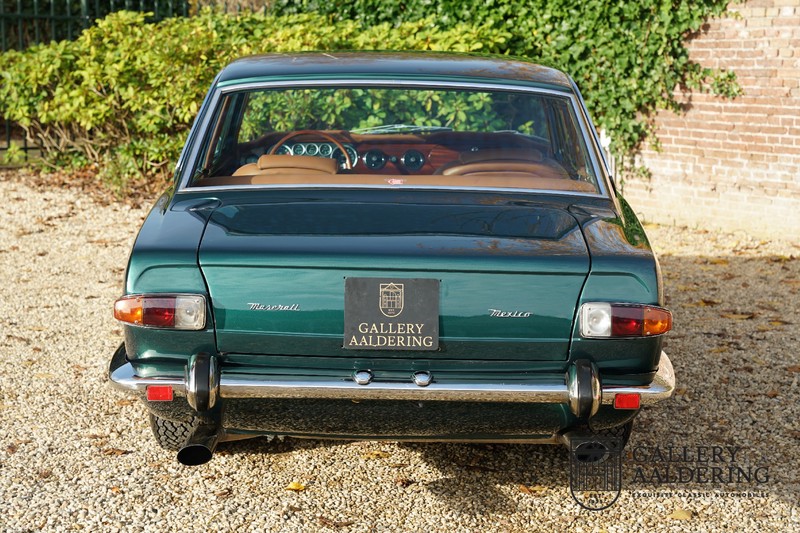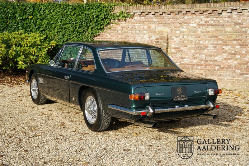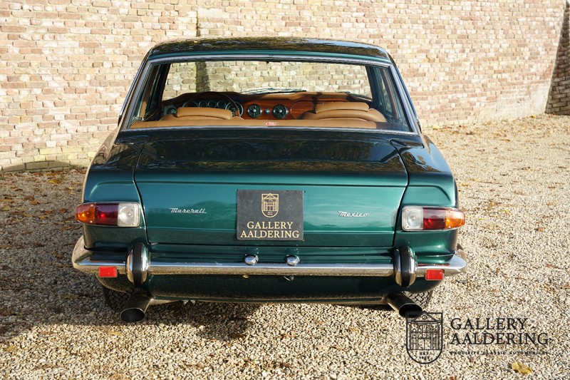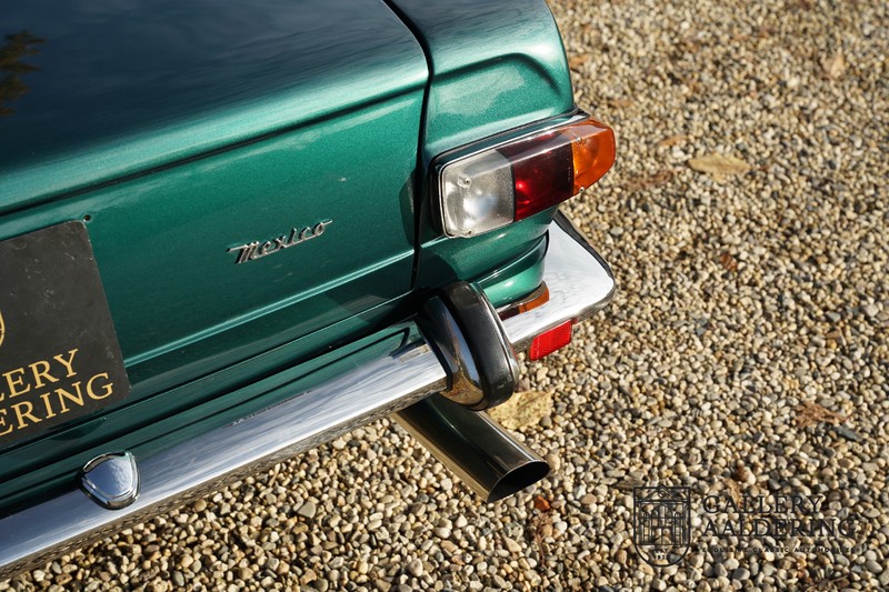 Het betreft hier een prachtige matching numbers Maserati Mexico uit 1970. Dit exemplaar is volledig gerestaureerd en gereviseerd en verkeert in schitterende conditie. De Mexico is een prachtig ontwerp dat voorkomt uit de pen van Virginio Vairo die op dat moment werkzaam was bij Vignale. De Mexico mag worden gezien als de coupé versie van de Quattroporte uit dezelfde generatie en deelt grotendeels de techniek van de vierdeurs sedan.