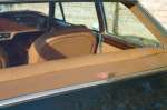 Het interieur is in 2015 en 2016 volledig opnieuw bekleed met dit prachtige bruine leder. De tapijten zijn van wolverlours en zien er schitterend uit. De werkzaamheden zijn op hoog niveau uitgevoerd en zien er dan ook nog steeds prachtig uit. De auto is sindsdien niet veel gebruikt want ook het prachtige bruine leder op de stoelen verkeert in nieuwstaat. Tijdens de restauratie zijn ook de verchroomde sierlijsten in het interieur opnieuw aangebracht en is het hout op het dashboard opnieuw gelakt. De instrumenten en bedieningselementen functioneren vanzelfsprekend allen zoals het hoort en ook de pook van de transmissie laat zich precies bedienen. De ruimte van de kofferbak is minstens zo mooi bekleed als de rest van het interieur en is maar weer eens toonaangevend voor de wijze waarop de bekleder bij deze auto te werk is gegaan. Een restauratie van dit niveau zou natuurlijk niet compleet zijn als de hemelbekleding niet net zo mooi zou zijn als de tapijten.