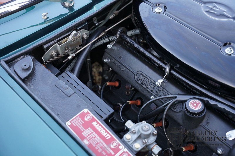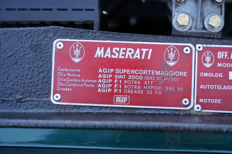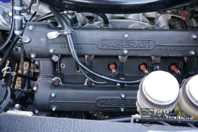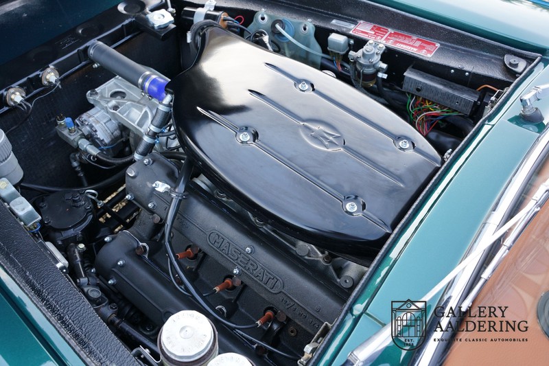 De gehele techniek van de auto is in 2016 bij een Maserati specialist volledig uit elkaar geweest. Elke pakking, elk lager en elke slang is vervangen. De motor loopt dan ook prachtig en is zeer krachtig. De 4.2 liter V8-motor is zoals te doen gebruikelijk bij de Mexico gekoppeld aan een handgeschakelde transmissie met vijf versnellingen die afkomstig is van ZF. Het onderstel en de remmen functioneren eveneens precies zoals u dat mag verwachten van deze grote Italiaanse “Gran Tourer”. De rijeigenschappen van de Maserati Mexico zijn er op af gestemd om u in alle comfort moeiteloos grote afstanden af te laten leggen. U stapt na een rit van Nederland naar Italië net zo fris uit als dat u bent ingestapt. Daarbij wordt u vergezeld door de klanken van die prachtige V8-motor die in dit geval ook nog eens hetzelfde exemplaar is als waarmee deze Mexico de fabriek verliet.