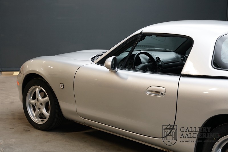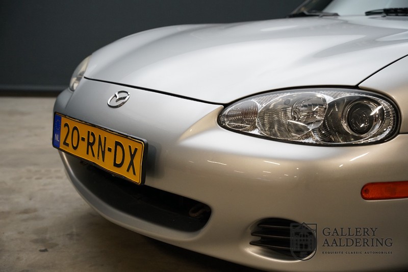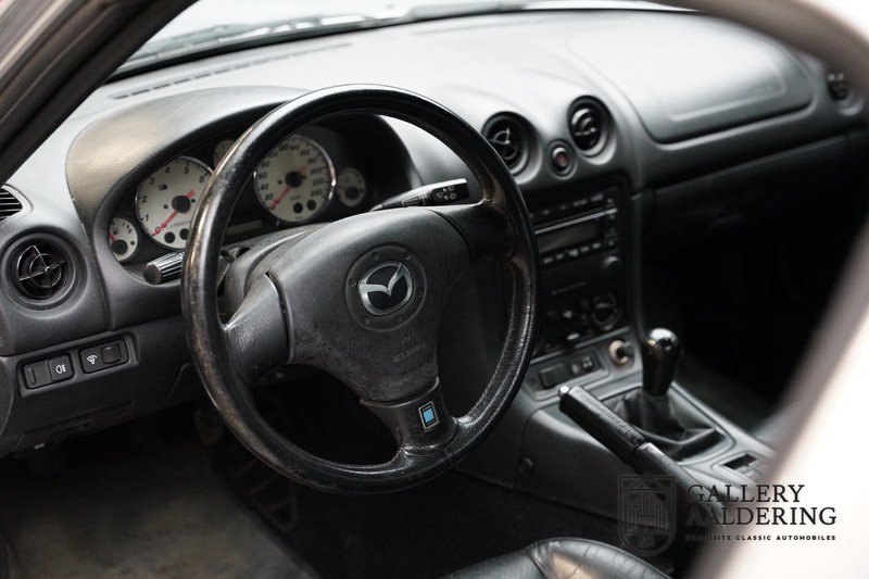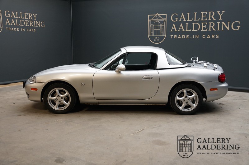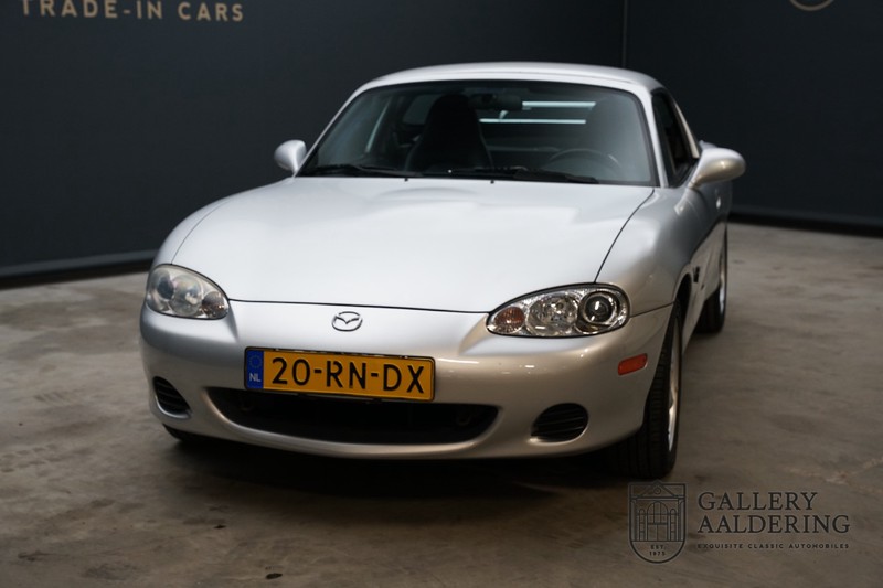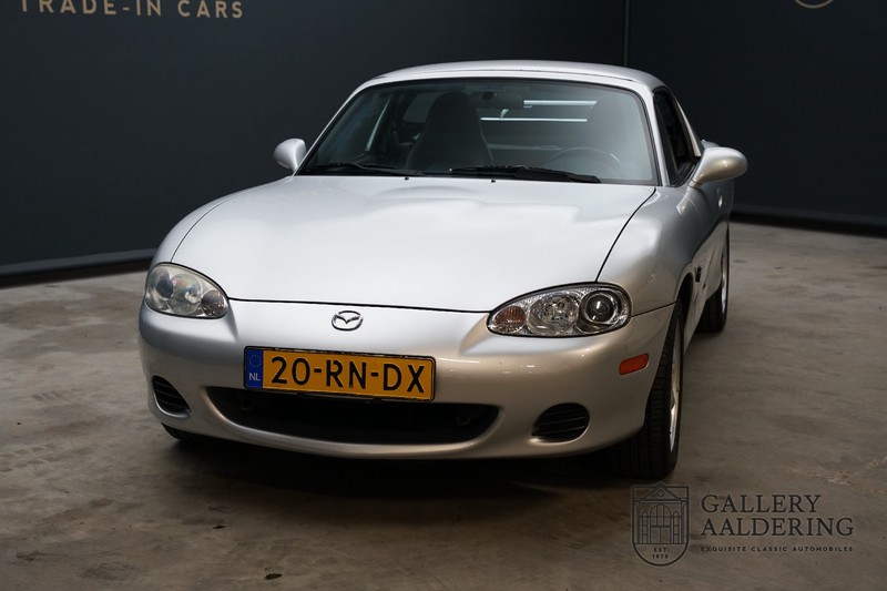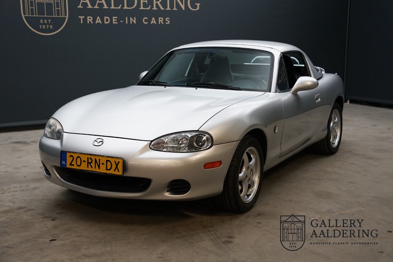 We have a very nice Dutch 2005 MX-5 1.6 16 NB-FL. This is a one-owner car. The car has the delicious 1.6 16V twin-cam engine coupled to the perfectly working manual 5-speed. This is the De-lux Exclusive version with a number of desirable extras such as a hardtop, leather upholstery, white dials, luggage rack and lovely alloy rims. This face-lifted NB version also sports the very contemporary looking projector headlights. It has a full-service history and the near-indestructible mechanics is therefore in peak condition, with the engine running and sounding fantastic. The manual transmission is very sure-footed and thanks to its perfect weight distribution the car drives a treat. Brakes and suspension are in fine shape, giving the car wonderful light-footed handling. Did you know the reason there are no competitors for the Mazda MX-5 is simply they know they would have no chance against the MX-5?