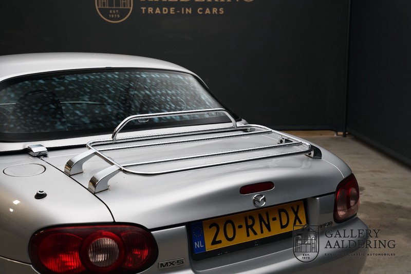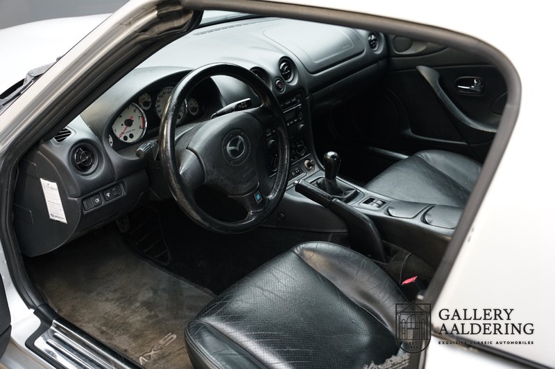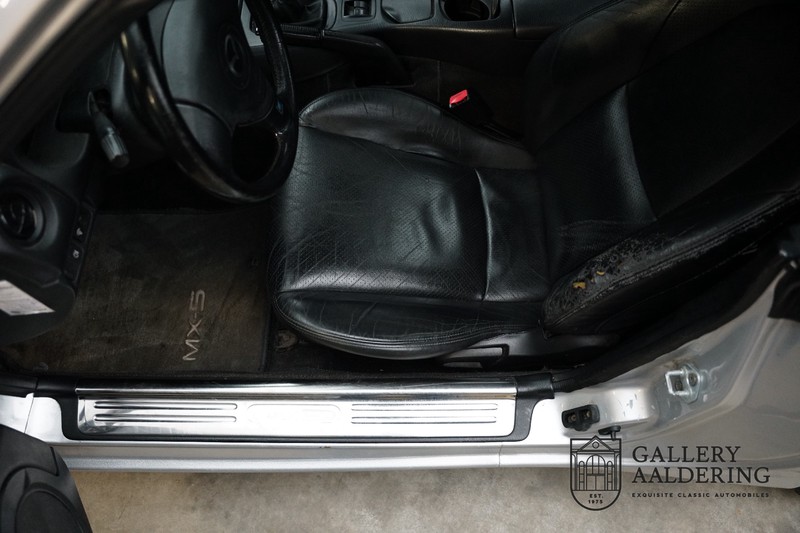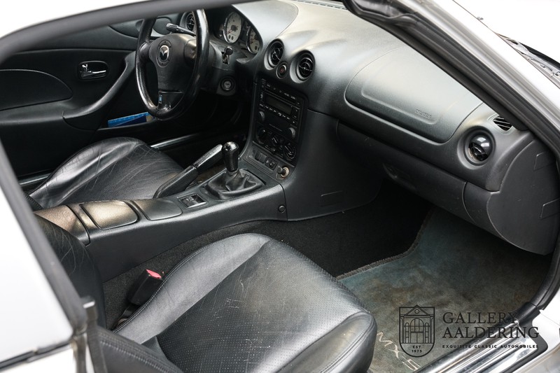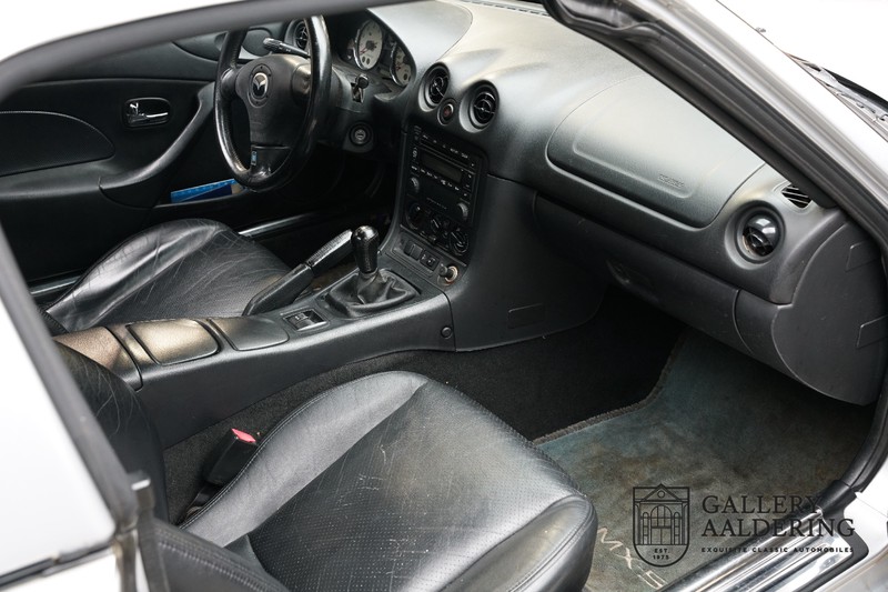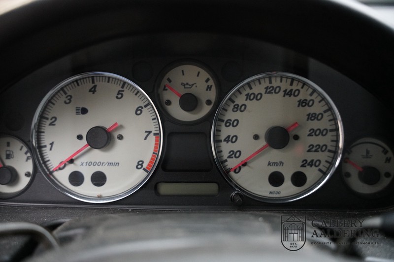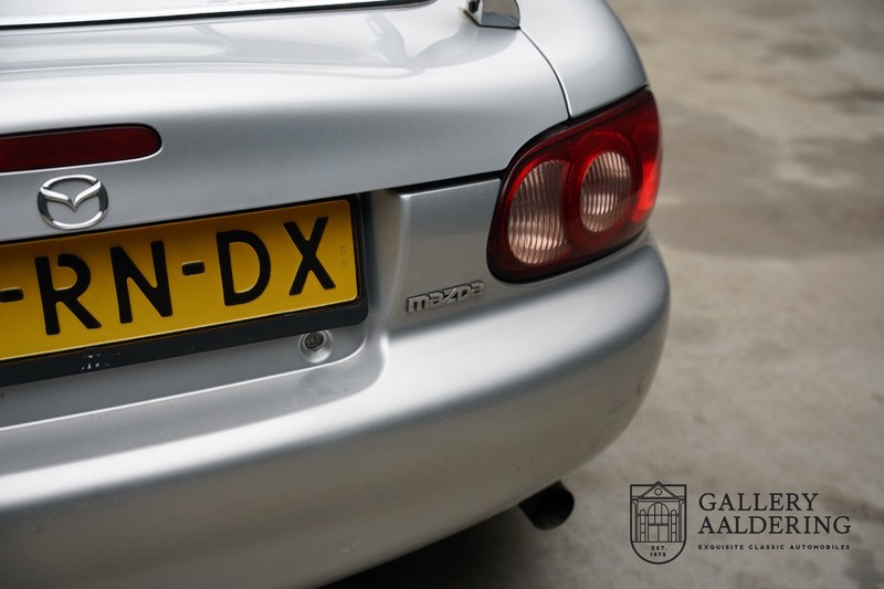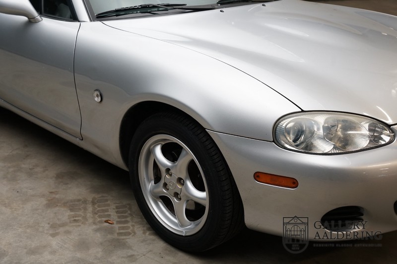 We have a very nice Dutch 2005 MX-5 1.6 16 NB-FL. This is a one-owner car. The car has the delicious 1.6 16V twin-cam engine coupled to the perfectly working manual 5-speed. This is the De-lux Exclusive version with a number of desirable extras such as a hardtop, leather upholstery, white dials, luggage rack and lovely alloy rims. This face-lifted NB version also sports the very contemporary looking projector headlights. It has a full-service history and the near-indestructible mechanics is therefore in peak condition, with the engine running and sounding fantastic. The manual transmission is very sure-footed and thanks to its perfect weight distribution the car drives a treat. Brakes and suspension are in fine shape, giving the car wonderful light-footed handling. Did you know the reason there are no competitors for the Mazda MX-5 is simply they know they would have no chance against the MX-5?