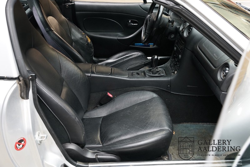 The bodywork is mainly in good shape for its age except for some early rust affecting the usual areas of the sills. The paintwork is neat as is the car’s interior apart from some damage to the bolster and a small rip in the leather of the driver’s seat. The car comes with its complete car wallet and invoices. This Mazda MX-5 in very good shape will not take much to bring it back up to its prime.