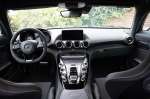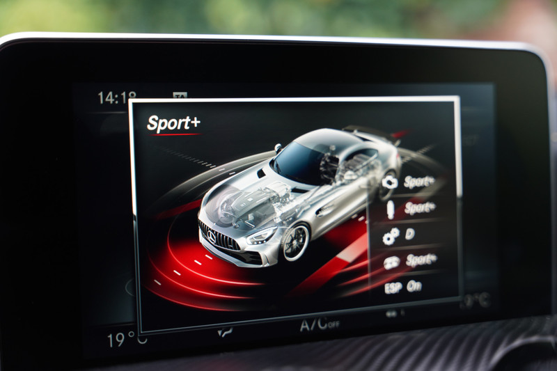 Diep in de kuipstoel, met het compacte stuur in uw hand is er eigenlijk maar één wens denkbaar: rijden. Stevig rijden. Iedere meter wordt u daarbij getrakteerd op de geweldige klanken van de simpelweg briljante 4,0 liter V8 met twee twinscroll-turbo’s die in het midden van de ‘V’ te vinden zijn. De Hot-V configuratie dus. In de standaard AMG GT is deze goed voor 462 pk, bij de AMG GT R wordt er maar liefst 585 pk uit de vierliter geperst. Spreek je alle 585 paarden aan dat levert het een symfonie aan muziek op waarbij de gemiddelde orkestbak compleet verbleekt, opstapt en thuis in een hoekje gaat zitten huilen. Wat een prachtig geluid weet Mercedes-Benz uit de V8 te persen.
