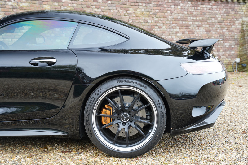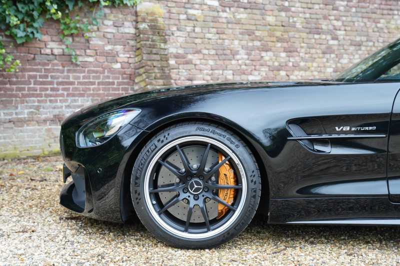We don’t actually have to describe the condition of the car, it is just new with just 9620 kilometres. There is not a scratch on the paint, not a crease in the leather upholstery, and no dirt under the hood. Just new. In terms of maintenance, the AMG GT R that we offer is neat and tidy and the beautiful alloy wheels, which are 19″ in diameter at the front and 20″ at the rear, are fitted with the right tires.