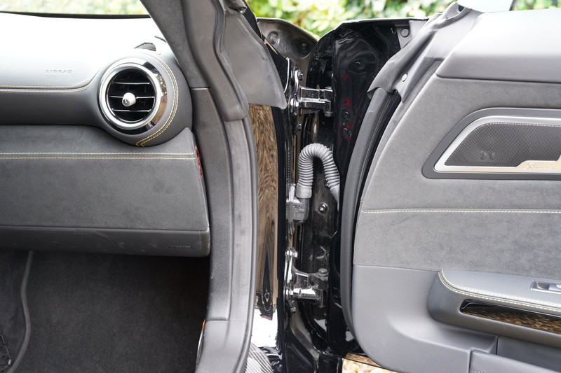 Als wij naar de optielijst kijken kunnen wij stellen dat de eigenaar eigenlijk geen vakje leeg heeft gelaten, even een kleine greep: AMG Carbon Pakket exterieur, AMG Track pakket, Keramische remmen, en zo kunnen we nog even doorgaan.