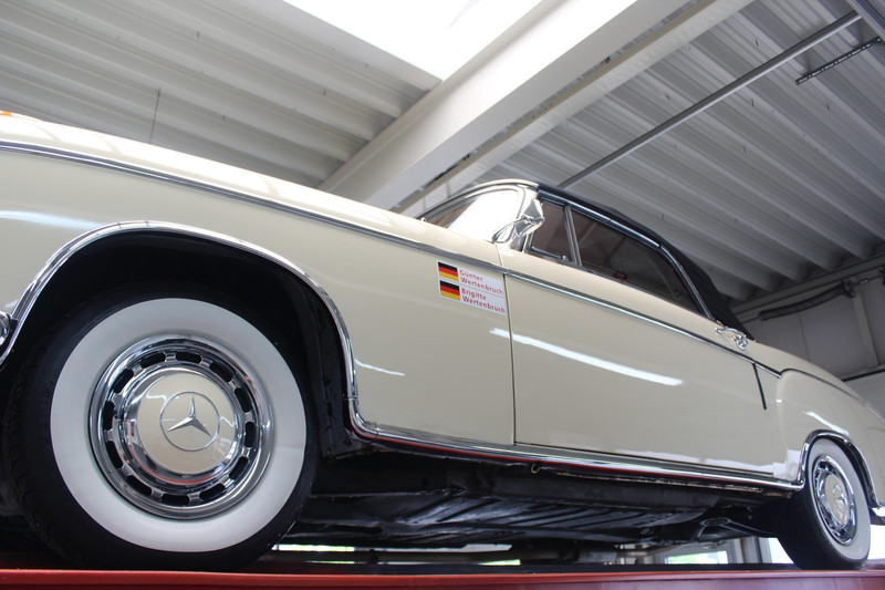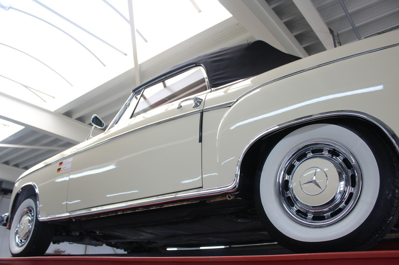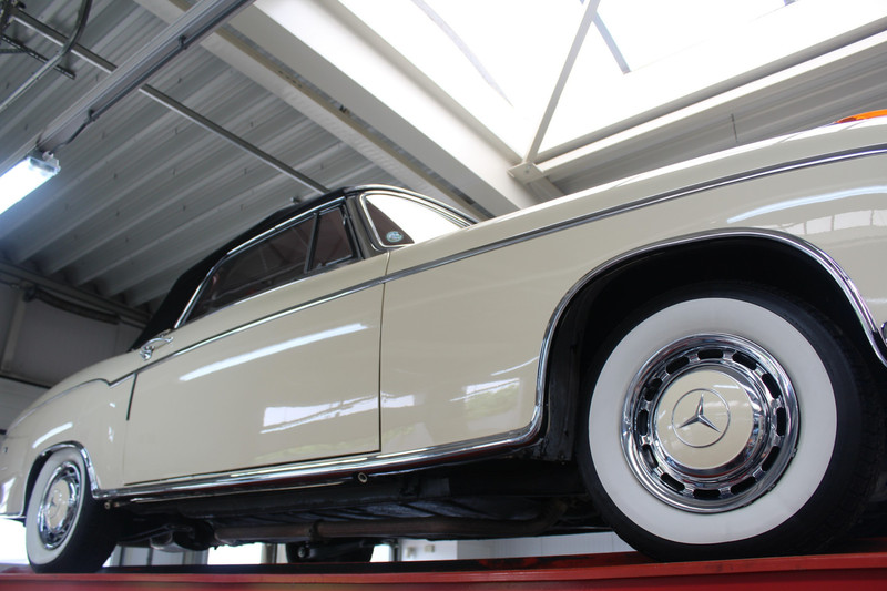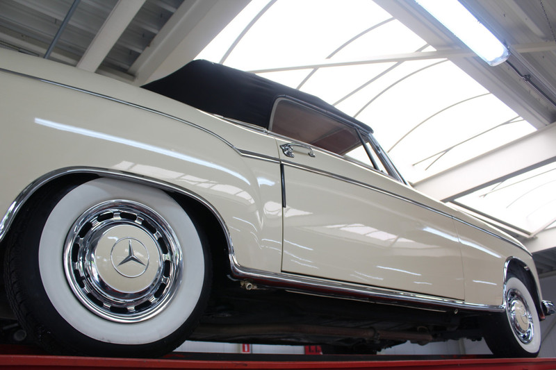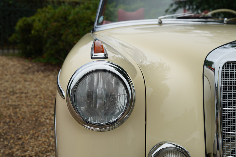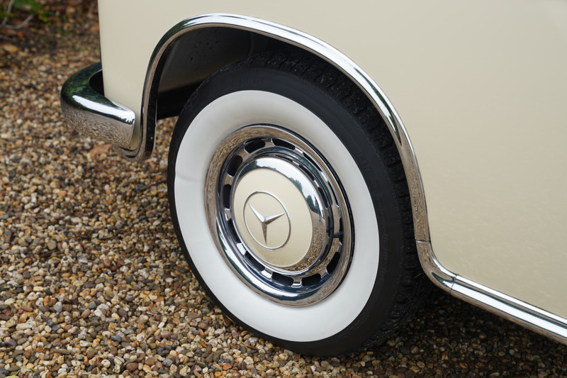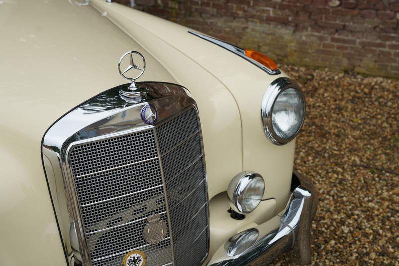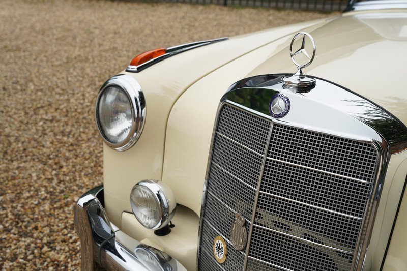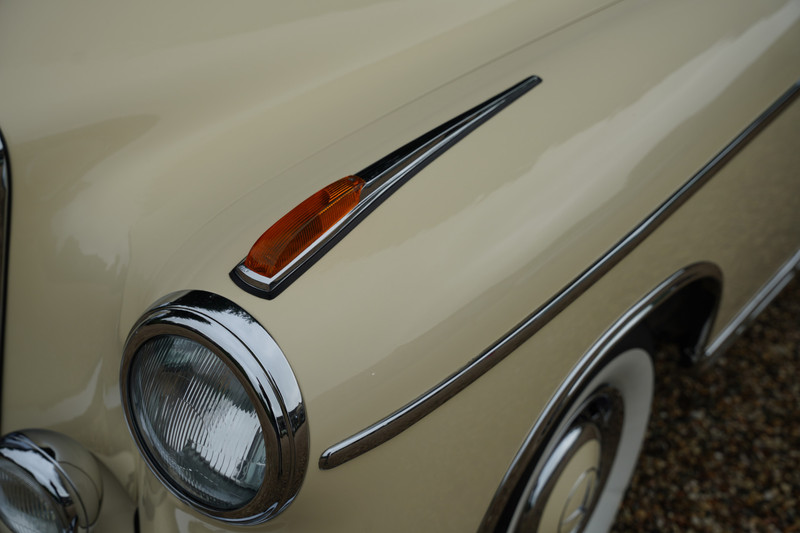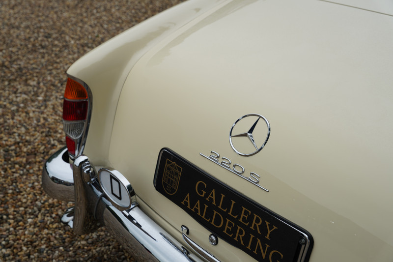 De passingen van het plaatwerk zijn zoals u die van een Mercedes-Benz van dit kaliber mag verwachten maar ook het lak- en chroomwerk dragen bij aan de algehele uitstraling. Het blijft altijd weer een aangename ervaring om te voelen hoe een portier van een auto als deze opent en sluit: solide ten top. Gebouwd voor de eeuwigheid. Deze Mercedes Benz 220S is in het verleden al eens gerestaureerd en gereviseerd in een dus danige kwaliteit wat men heden dagen nog steeds terugziet.