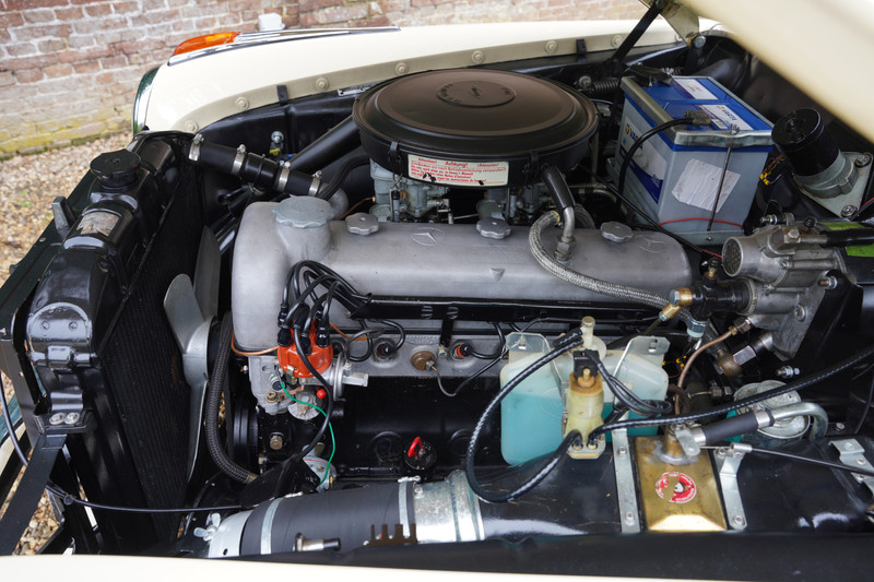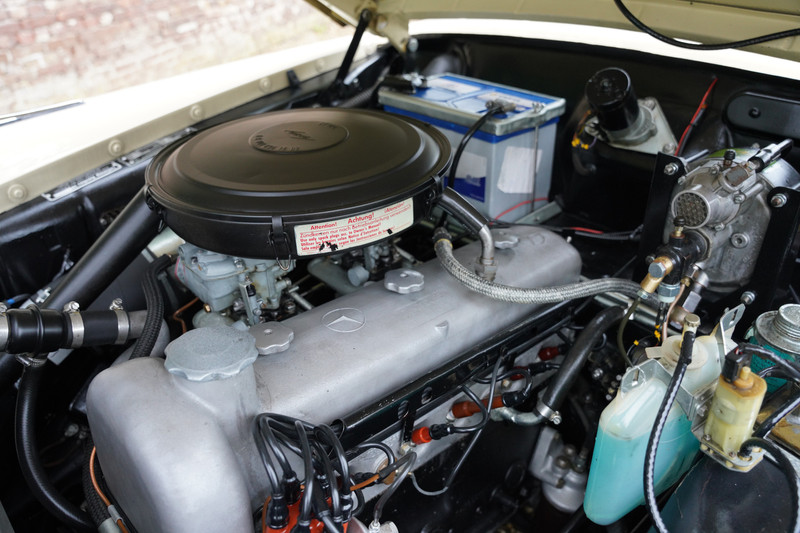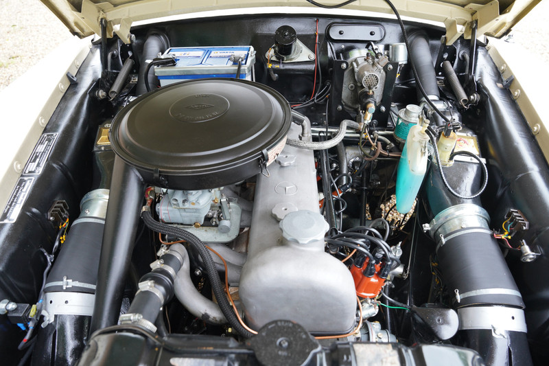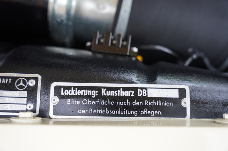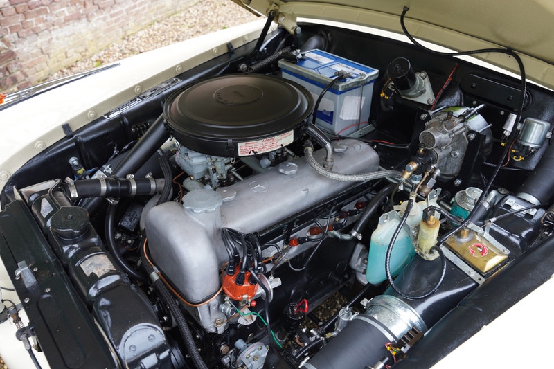 The Ponton was the first Mercedes-Benz built according to the “unibody” principle. This means that the entire body of the car is one whole, against which the powertrain is mounted by means of subframes. This is in contrast to many cars of that time that were built with a separate body and a separate frame. This 220S is powered by a six-in-line.