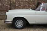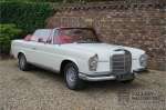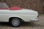 Wat een geweldige Mercedes Benz 250SE Cabriolet van bouwjaar 1968 staat er nu in onze showroom. Een cabriolet versie van de W111 waarvan er maar 5.143 gebouwd zijn. Een origineel Europees geleverde cabriolet af-fabriek, dus geen ombouw van een coupe. Voorzien van de geliefde handgeschakelde transmissie. Mooie solide en roestvrije body, dus de aller beste basis voor een restauratie werd zéér professioneel tot in detail gerestaureerd en technisch gereviseerd. Kosten noch moeite zijn gespaard tijdens deze restauratie! De carrosserie is subliem, had nog nooit een schade gehad voor de restauratie, alle originele plaatwerkdelen zijn nog aanwezig, het voor front de achter schermen en het tussen schot zijn nog de fabrieksdelen. De 250SE heeft hierdoor ook perfecte passingen en prachtig strak lakwerk. Werd geheel van onder en boven overgespoten en super strak gemaakt. Ook het interieur is top. Kreeg nieuw origineel lederen interieur met nieuwe tapijten en details als chroom en hout strips zien er ook weer uit als nieuw. Een nieuwe soft top met rode hemel maakt hem af. De kleuren combinatie van de lak , het interieur en de soft top zijn prachtig. Technisch heeft hij ook alle aandacht gekregen. Ook al deze onderdelen zijn keurig behandeld en weer in Nieuwstraat. Deze heerlijke handgeschakelde cabriolet is geheel af. Alle details zijn aanwezig. Een top exemplaar dus! Klaar voor zijn volgende trotse bezitter.