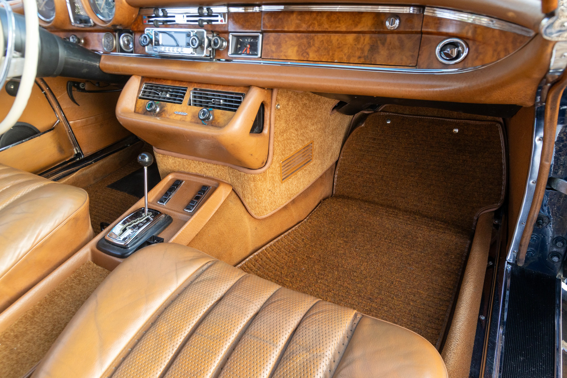 The example presented here is particularly special. This is the 280 SE 3.5, delivered in 1970: the first post-war Mercedes coupé to feature a V8 engine exceeding three liters. Beneath the hood lies the 3.5-liter M116 V8, producing 200 horsepower. Not a roaring sports engine, but a silk-smooth powerplant that delivers exactly what you expect—quietly, effortlessly, and with outstanding long-distance comfort.