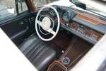 The interior is also very original. The seats are equipped with beautiful brown leather and good carpets. The mahogany on the dashboard is in good condition as are the instruments and controls. The headliner and top of the dashboard are also in original condition and look good.