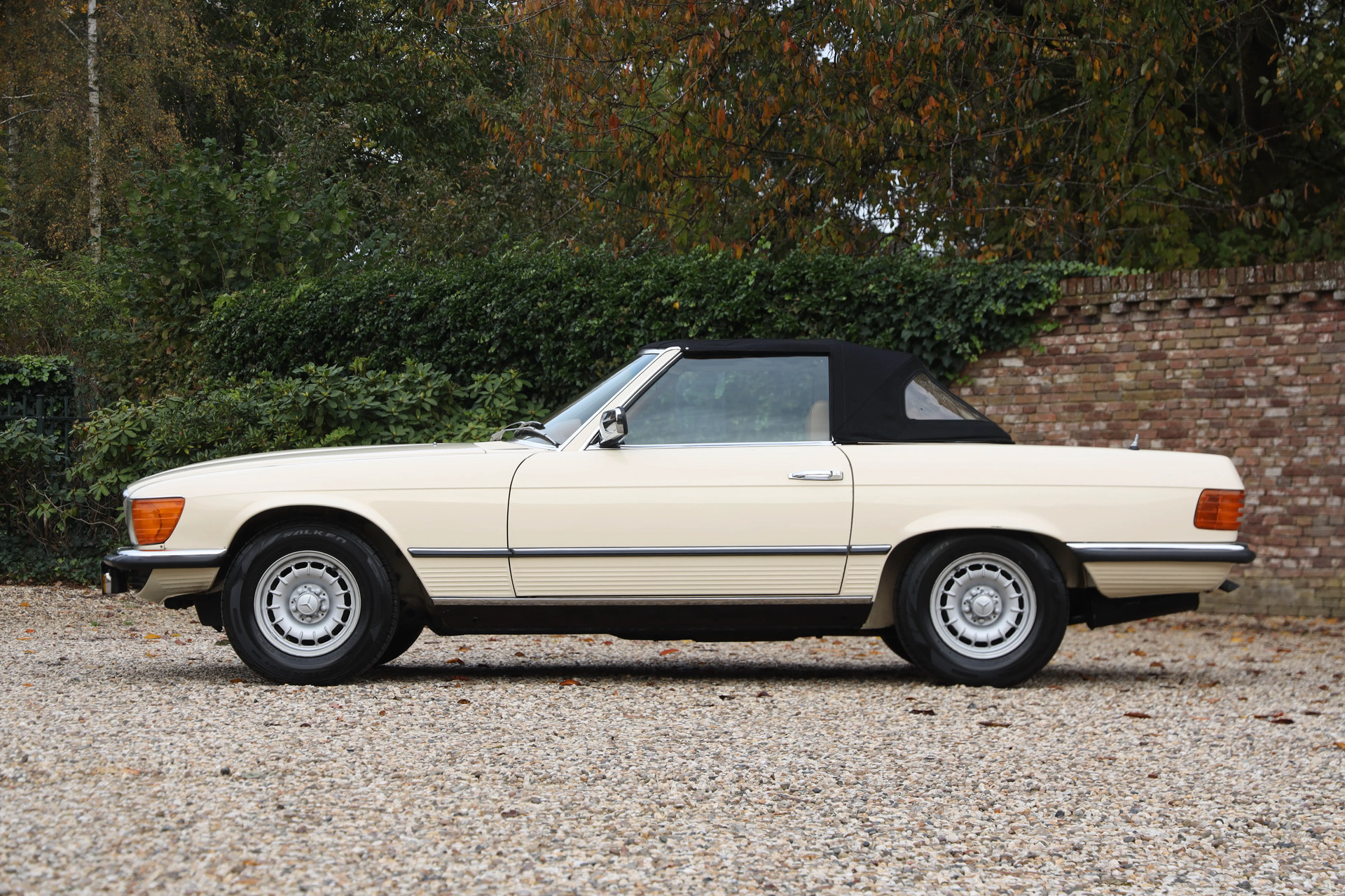 Finished in Light Ivory, still wearing its factory original paint, paired with an elegant Saffron (Bamboo) leather interior, this SL radiates sophistication. It’s a color combination that complements the refined, sculpted lines of the 1970s R107 perfectly — warm, understated, and exactly the kind of originality connoisseurs value.
