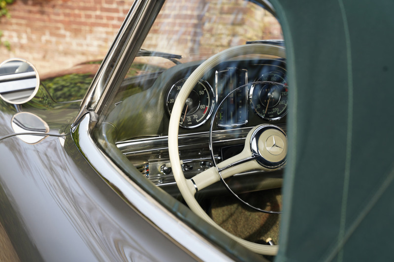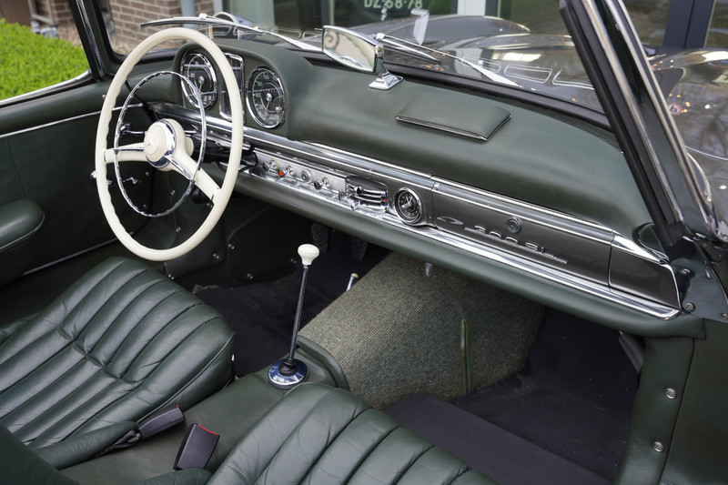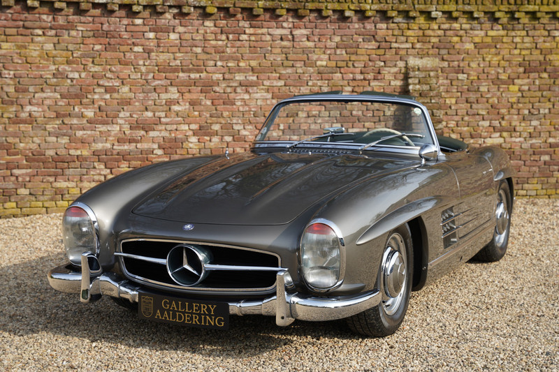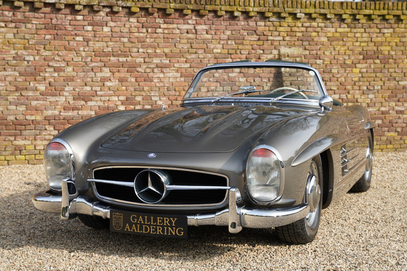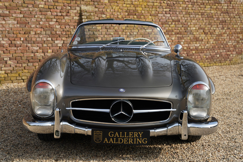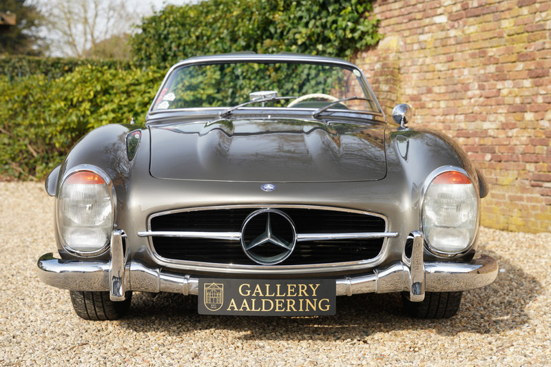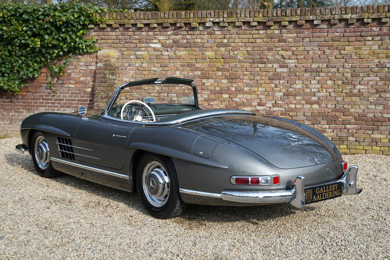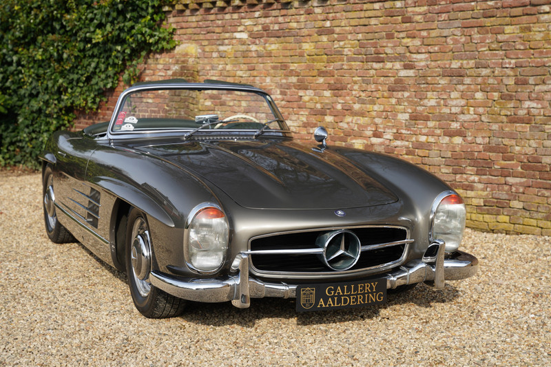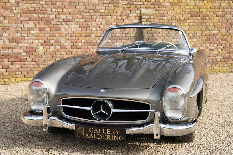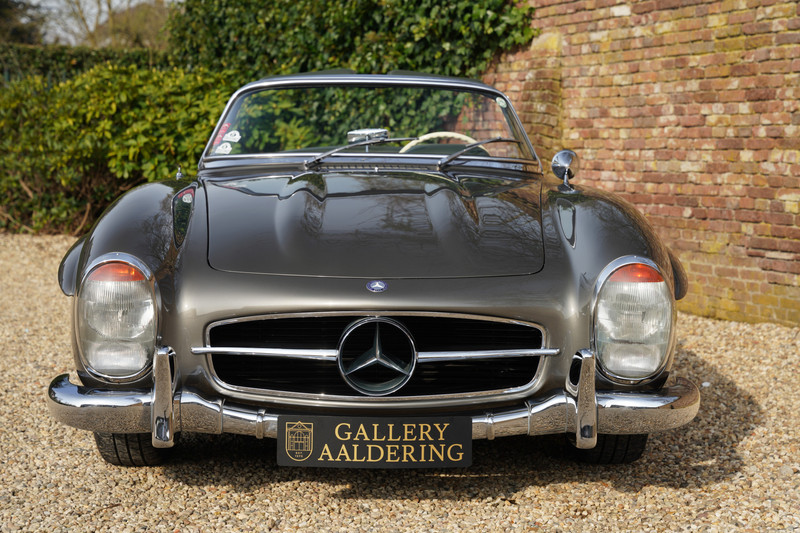 The Mercedes 300 SL Roadster needs no introduction. Everyone knows the world-famous Gullwing, but we also happen to believe the Roadster is as breathtakingly beautiful. The Roadster we are delighted to present here is almost too beautiful for words in its colour scheme. When colleagues at Gallery Aaldering proclaim among themselves how beautiful this specimen is, it is often a sign that we are dealing with something special. Mercedes-Benz introduced the 300 SL Roadster at the Geneva Motor Show in 1957. Thus, the Roadster was derived from the 300 SL Gullwing: the coupe version of the 300 SL. Compared to its predecessor, the new 300 SL Roadster was notably a more refined car. The six-cylinder engine received an upgrade, with Mercedes equipping it with the ‘sporty’ camshaft used in the NSL race coupes. This resulted in an additional 20 hp.