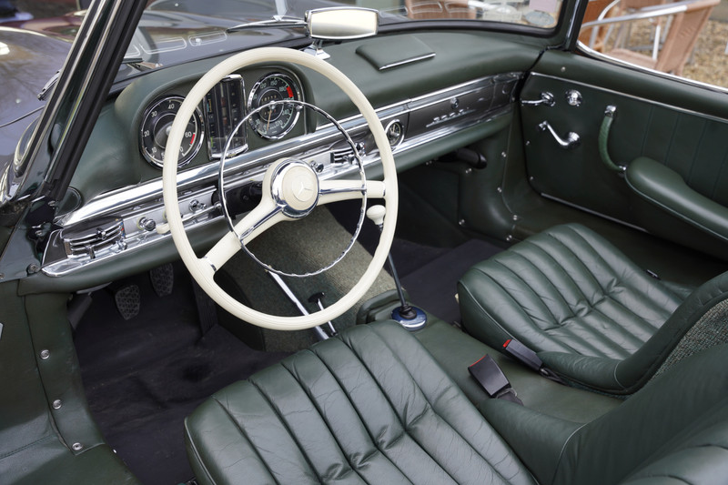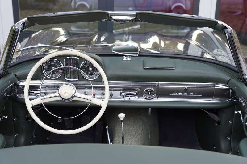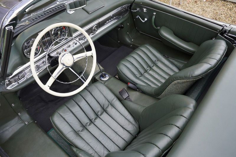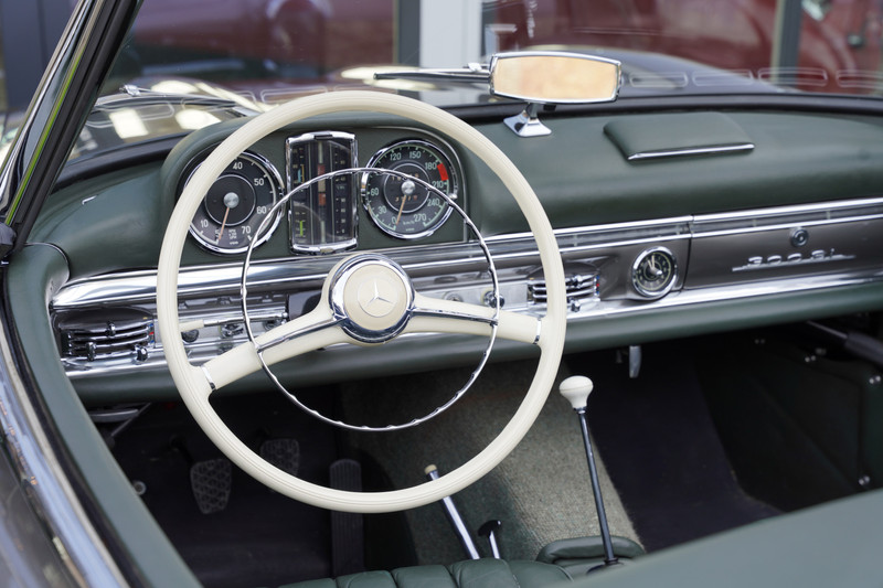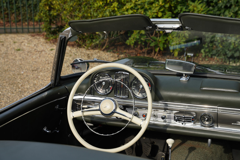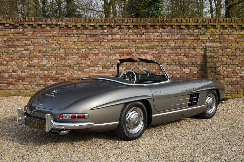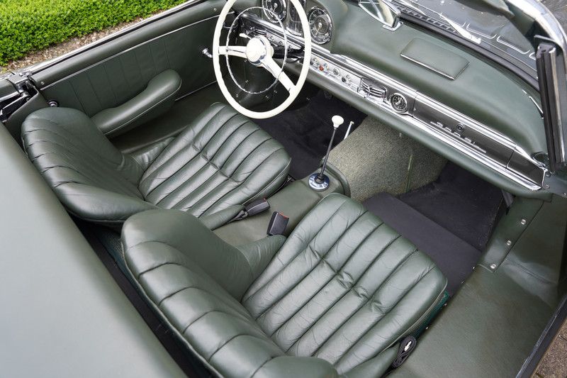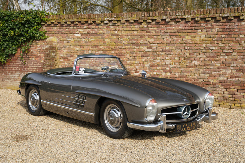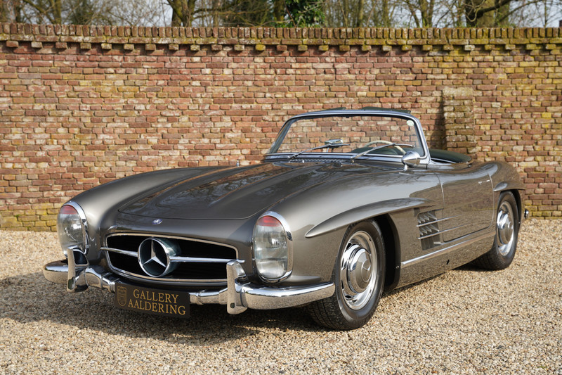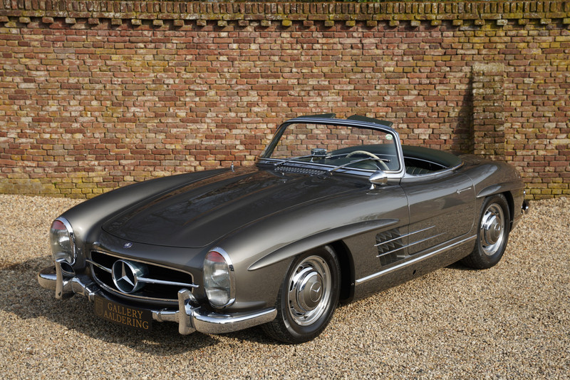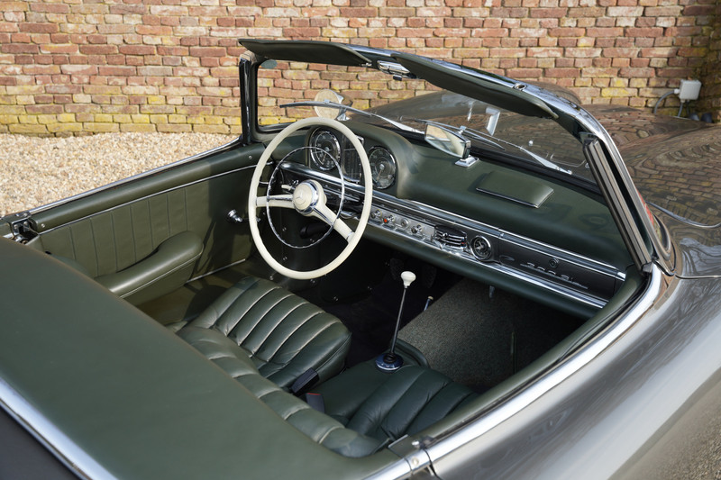 The Mercedes 300 SL Roadster needs no introduction. Everyone knows the world-famous Gullwing, but we also happen to believe the Roadster is as breathtakingly beautiful. The Roadster we are delighted to present here is almost too beautiful for words in its colour scheme. When colleagues at Gallery Aaldering proclaim among themselves how beautiful this specimen is, it is often a sign that we are dealing with something special. Mercedes-Benz introduced the 300 SL Roadster at the Geneva Motor Show in 1957. Thus, the Roadster was derived from the 300 SL Gullwing: the coupe version of the 300 SL. Compared to its predecessor, the new 300 SL Roadster was notably a more refined car. The six-cylinder engine received an upgrade, with Mercedes equipping it with the ‘sporty’ camshaft used in the NSL race coupes. This resulted in an additional 20 hp.