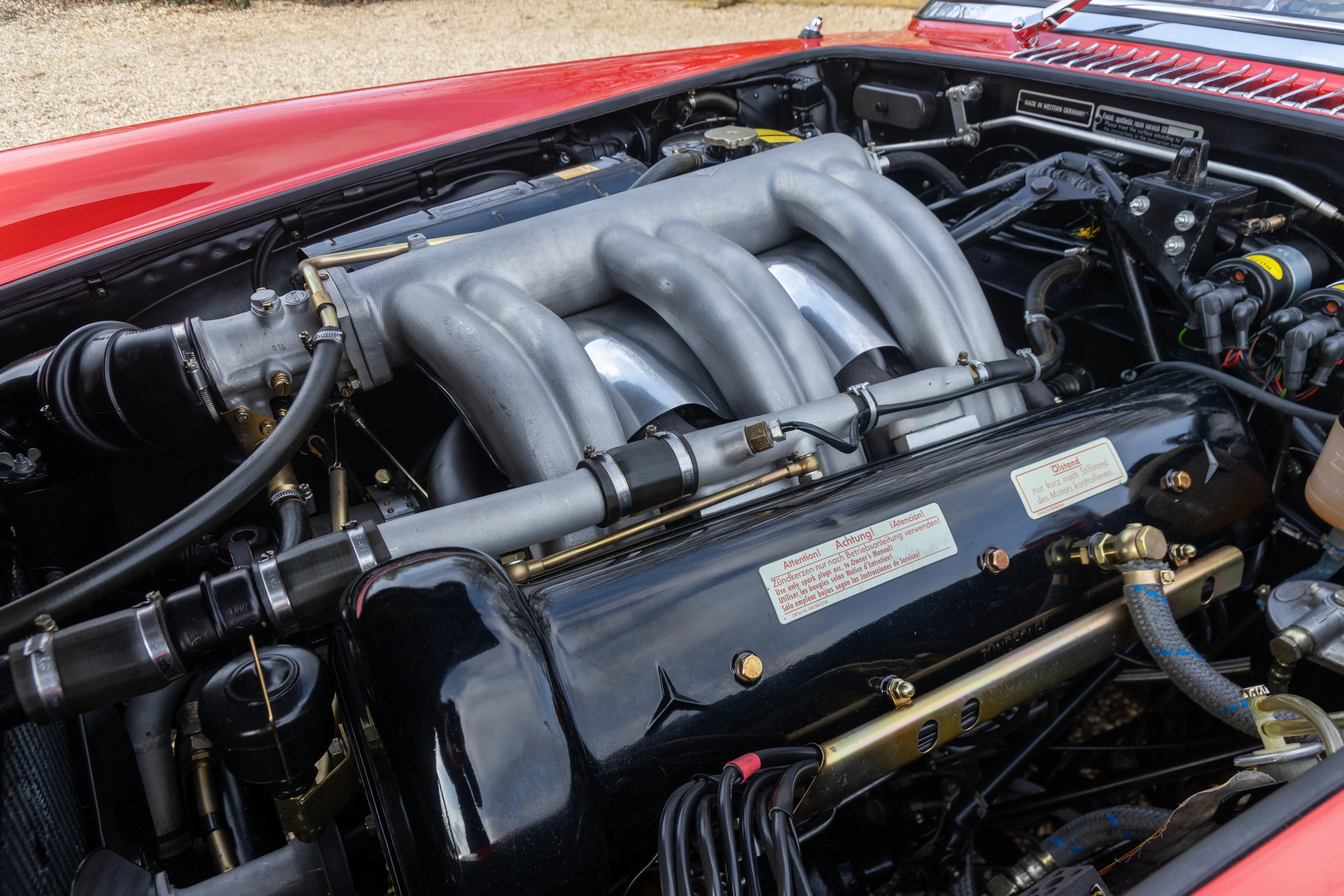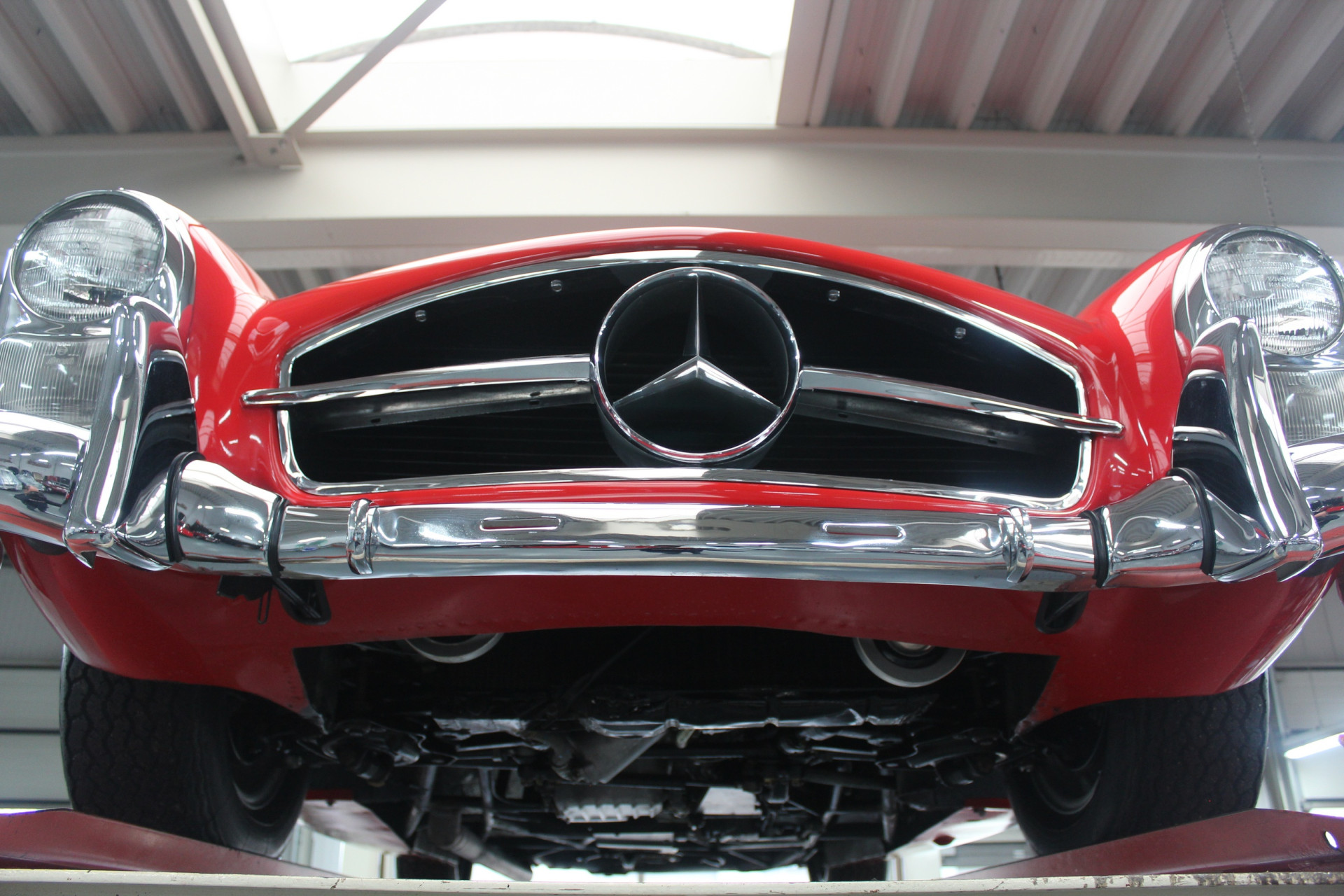 Das hier angebotene Exemplar entspricht genau dem Idealbild, das man sich erhofft. Ausgeführt in Fire Engine Red mit einem hochwertigen Interieur in tanfarbenem Leder, präsentiert sich der Wagen in hervorragendem Zustand — optisch wie technisch. Dieser 300 SL Roadster verfügt über zeitgenössisch korrekte Scheibenbremsen an der Vorderachse und ist matching numbers. Dies wurde durch eine umfassende Authentizitätsprüfung inklusive forensischer Materialanalyse bestätigt — keine Annahmen, sondern verifizierte und dokumentierte Fakten.