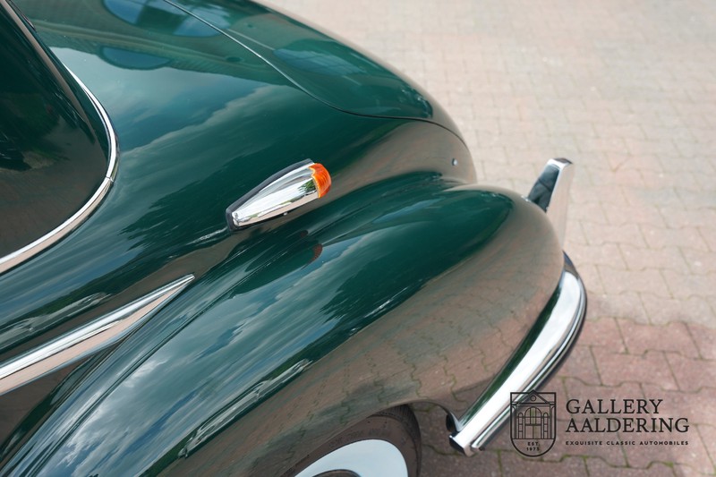 Die komplett originale Karosserie ist wunderschön, sie hat dünnes Blech und korrekte Passungen. Die Chromzierleisten und Chromradkappen befinden sich ebenfalls in einem perfekten Zustand. Das Auto wurde aus optischen Gründen schon mal neulackiert in der grünen Originalfarbe. Diese Arbeiten hatten ein sehr hohes Niveau und der Lack befindet sich noch immer in einem wunderschönen Zustand.