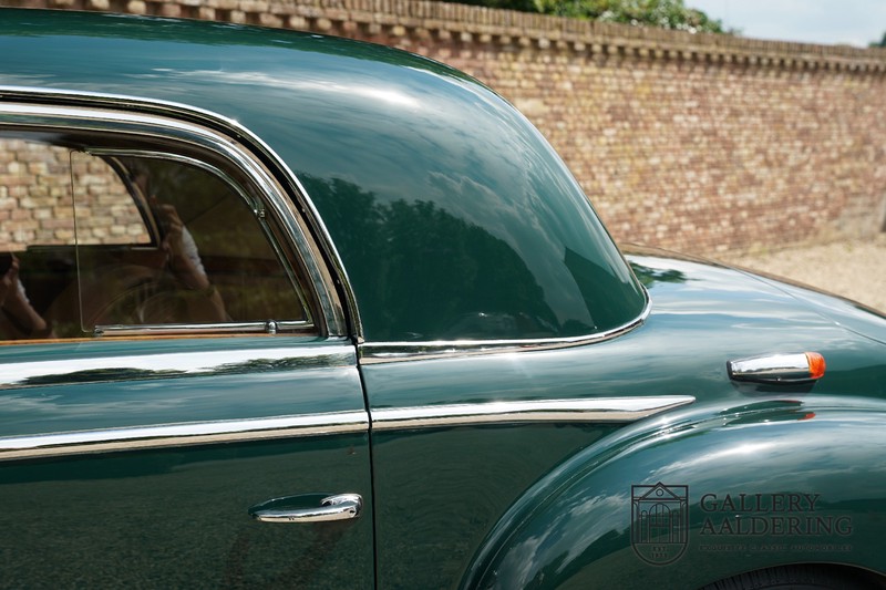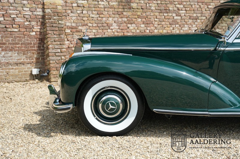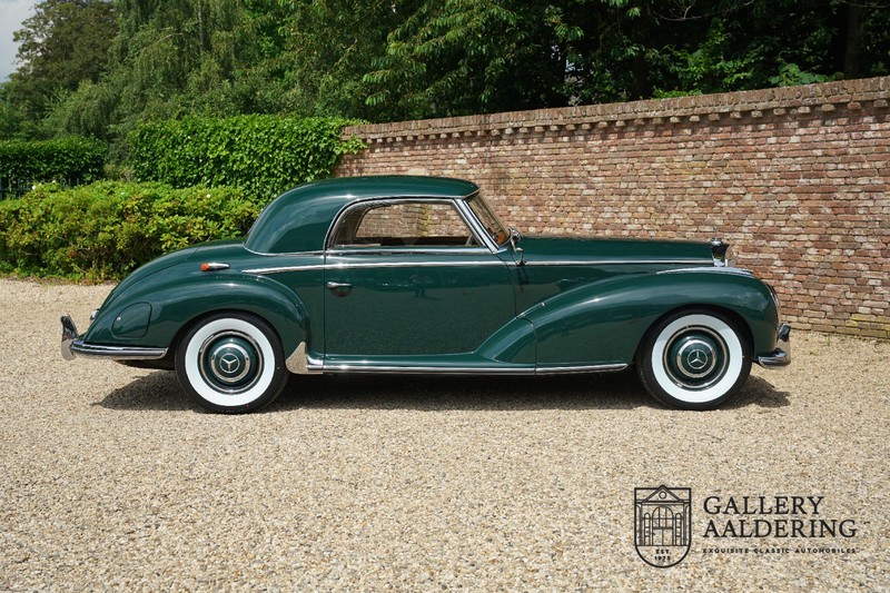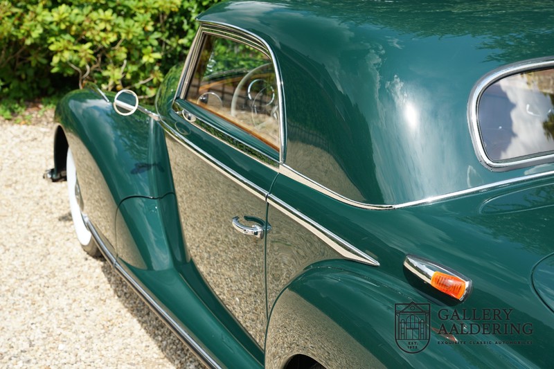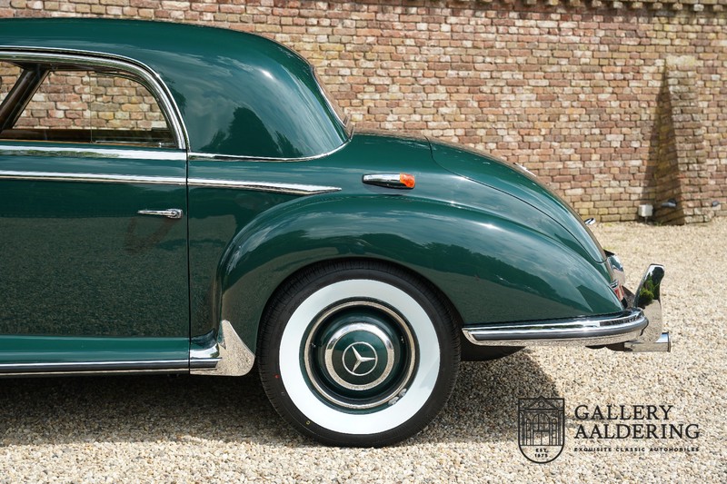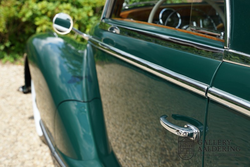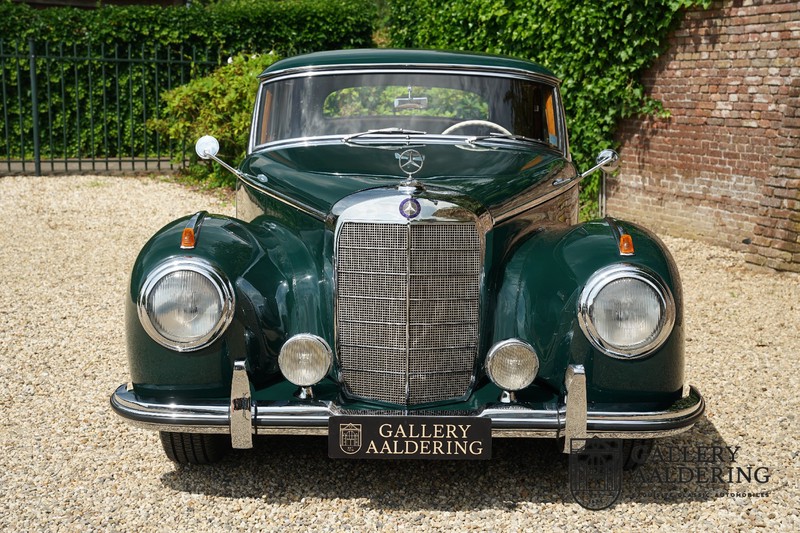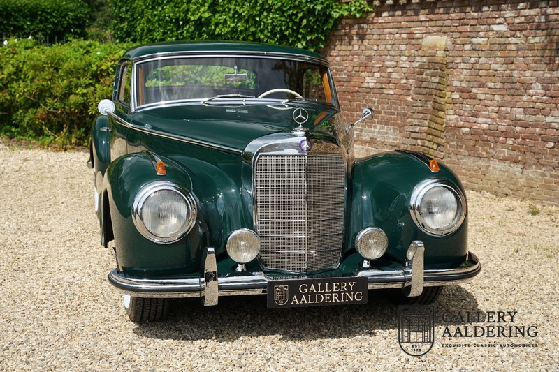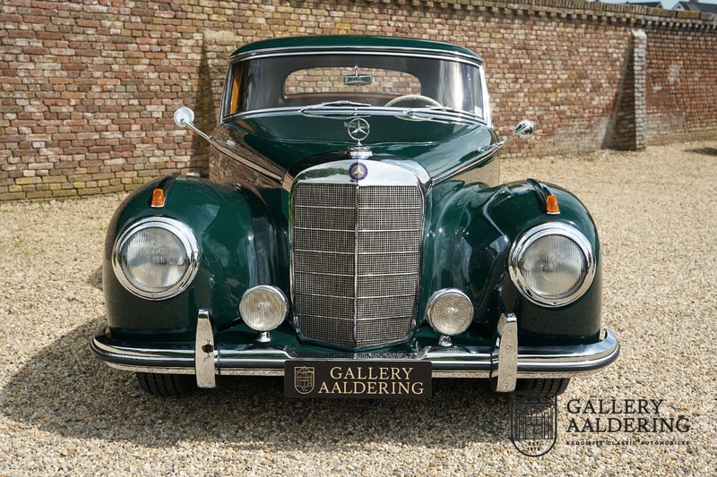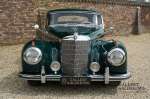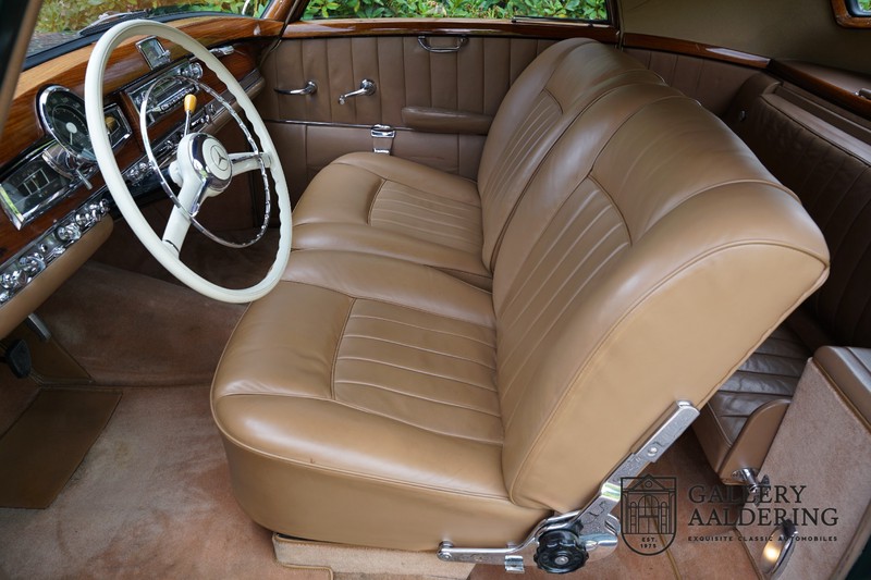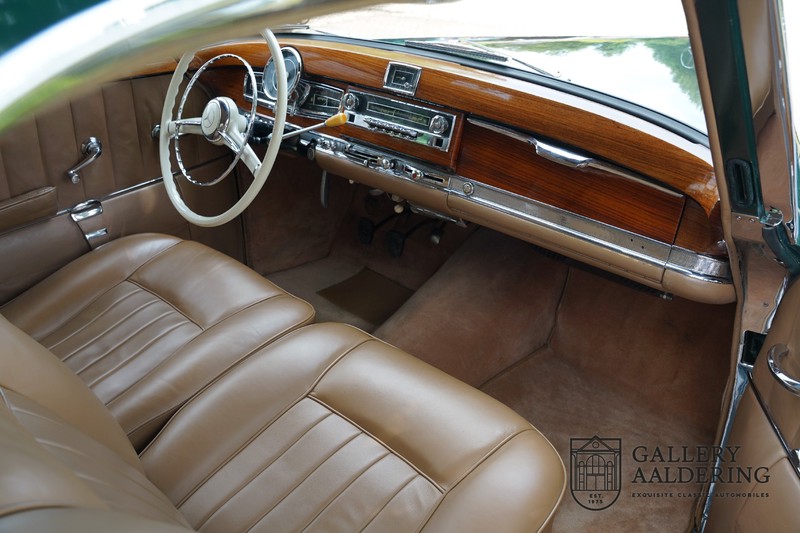 Das beste oder Nichts, nog altijd de slogan van Mercedes-Benz en in dit geval: volledig waar. De Mercedes-Benz W188 300S Coupé was in de jaren ’50 met afstand de meest opulente auto op de markt. De W188 300S was de Coupé, Cabriolet of Roadster variant van de wereldberoemde “Adenauer”. De W188-serie werd geïntroduceerd op de autosalon van Parijs in 1951. Hoewel de auto de benaming “300S” meekreeg zou het nog tot 1972 duren voordat Mercedes-Benz modellen zou gaan aanbieden als S-Klasse. Mercedes-Benz bouwde in totaal 560 stuks van de verschillende carrosserievarianten. 216 stuks zijn de hier getoonde Coupé’s. De auto weegt 1.740 kilo en haalt dankzij de 150 pk sterke motor een topsnelheid van 175 kilometer per uur. De W188 werd volledig met de hand gebouwd en was de eerste auto met bekrachtigde remmen. De W188 was écht een auto voor de “Rich and famous” uit die tijd. Beroemde eigenaren waren Haribo oprichter Hans Riegel, Aga Khan en acteur Gary Cooper, u bevond zich dus in zeer goed gezelschap als eigenaar van een W188. Deze specifieke W188 is afkomstig uit Zwitserland en verkeert in prachtige conditie.
